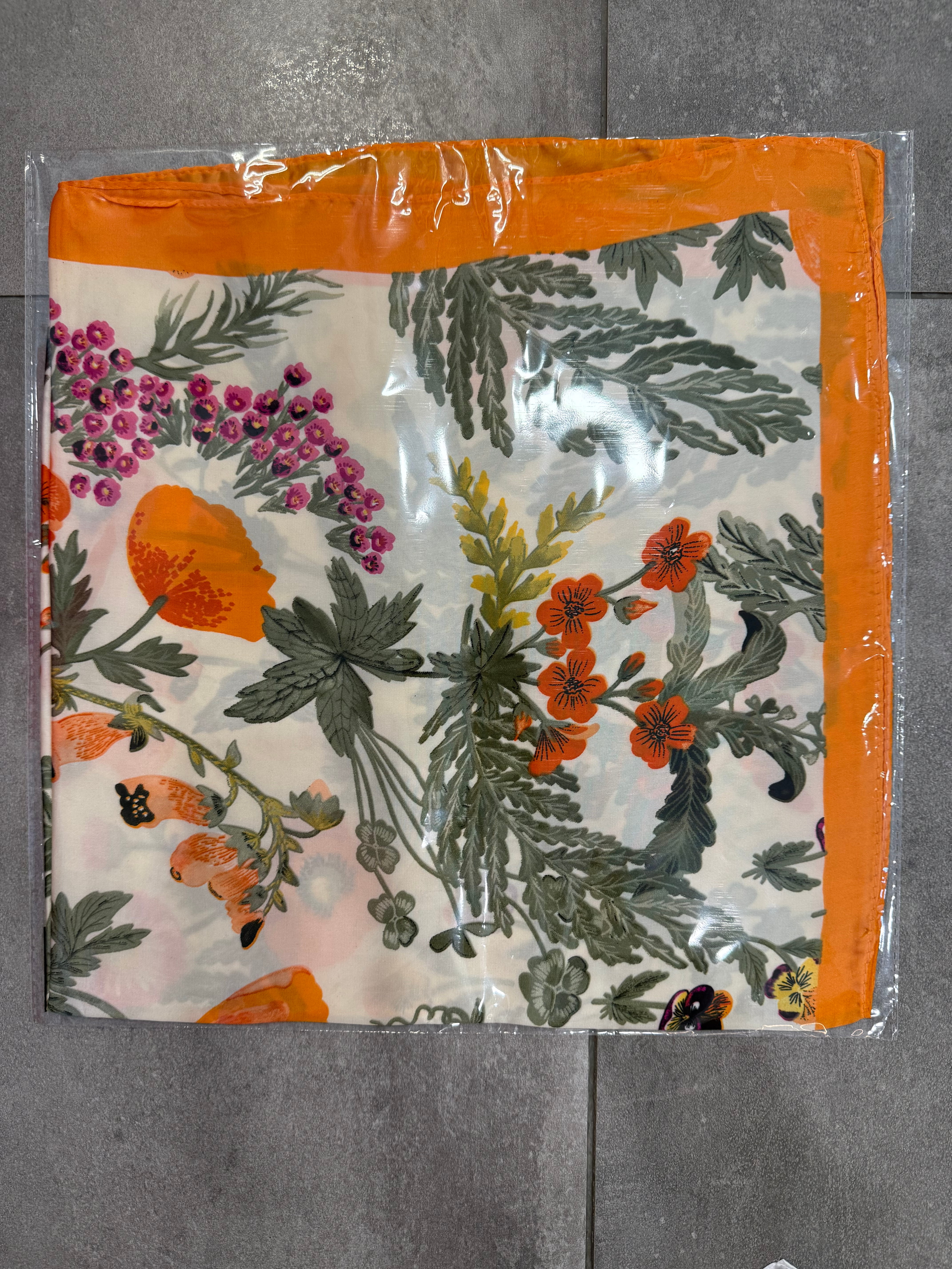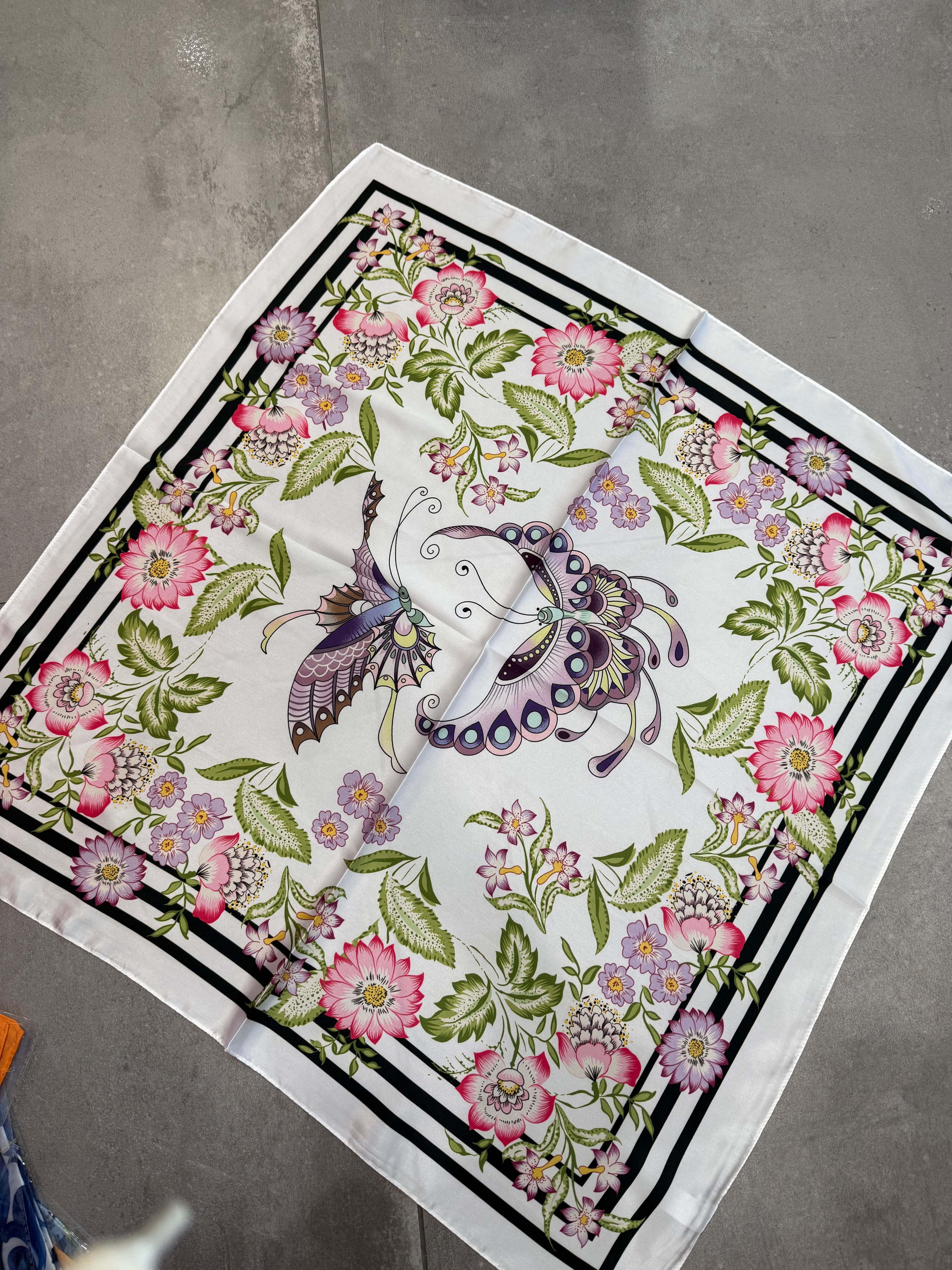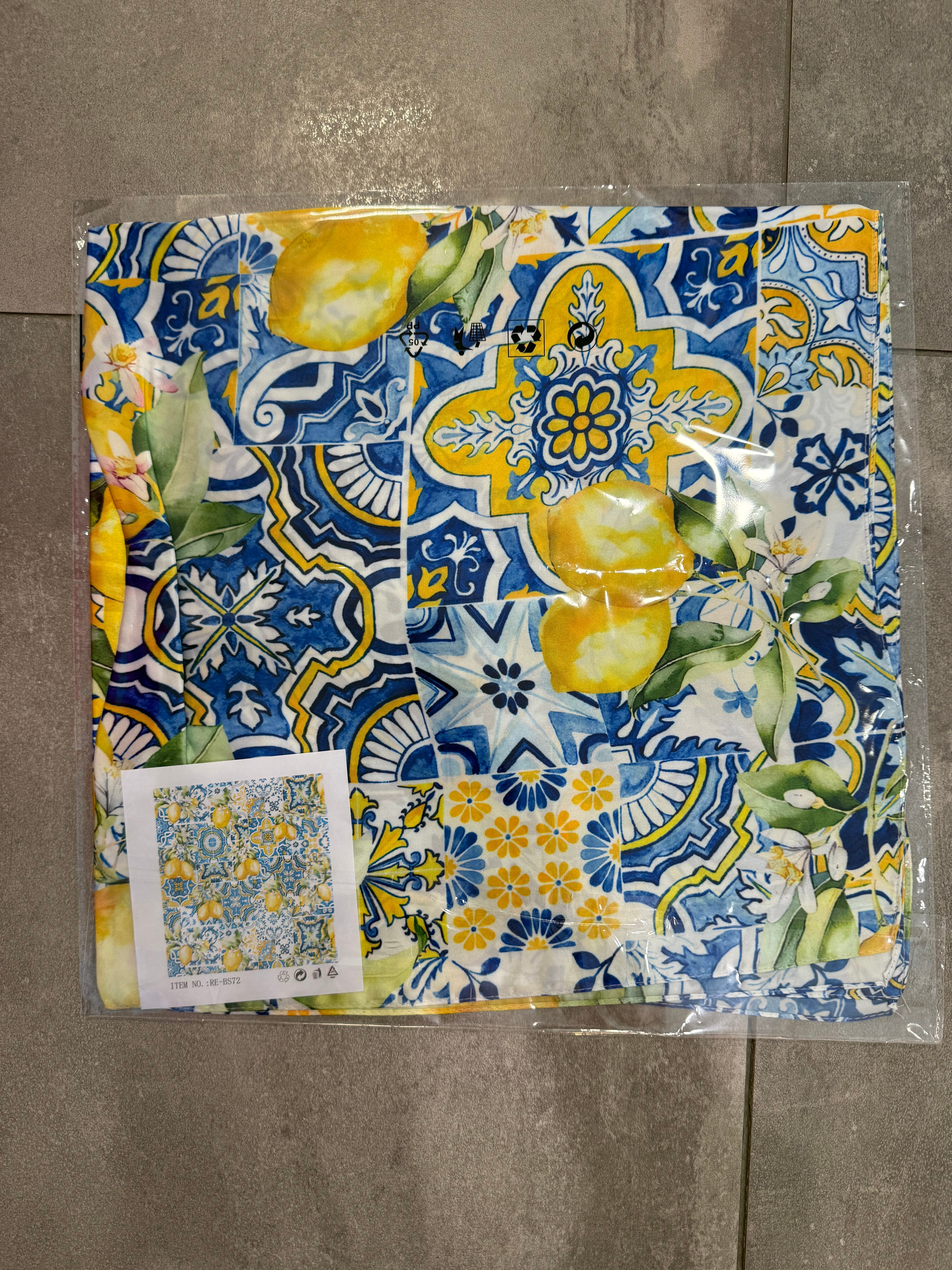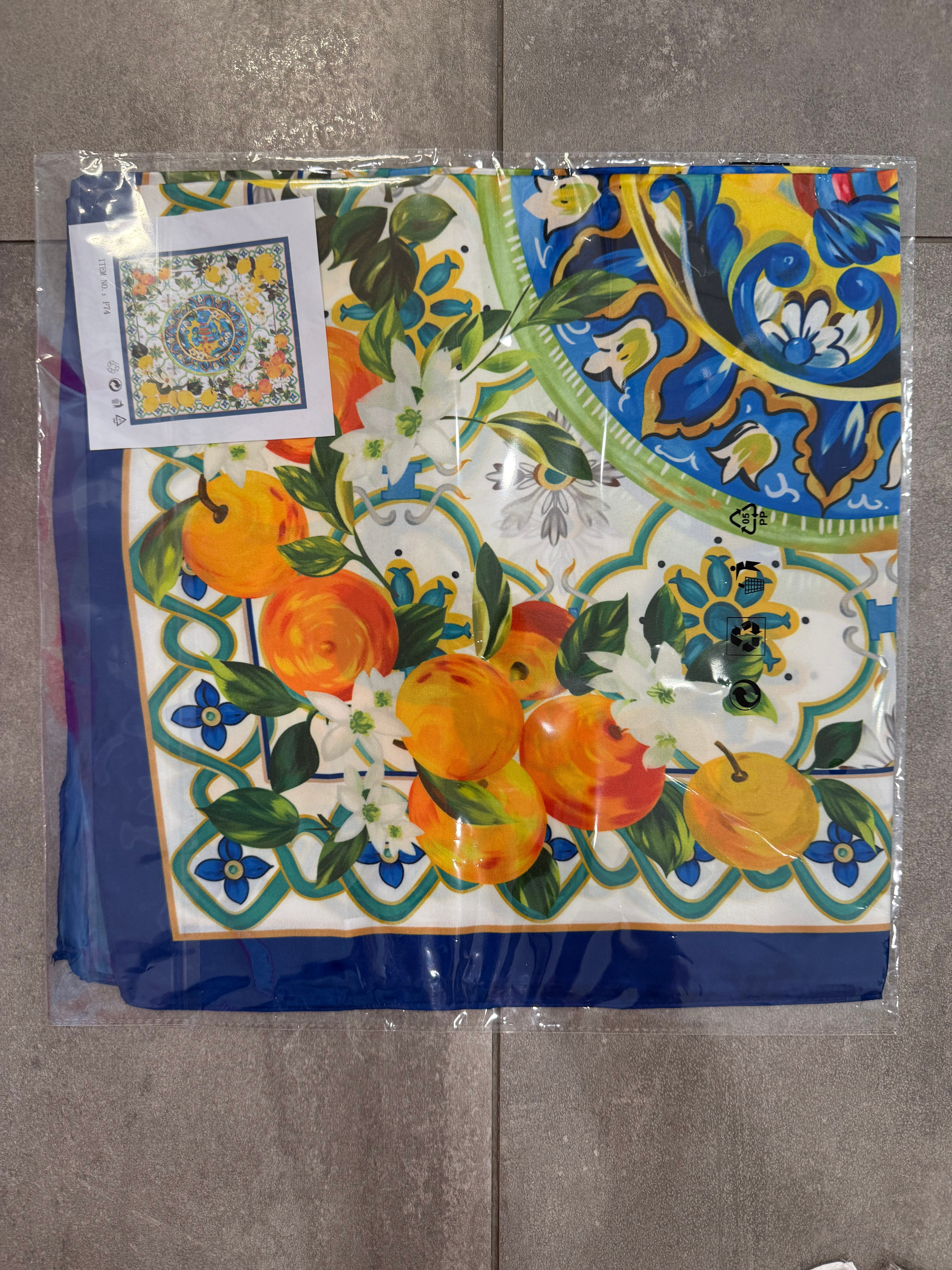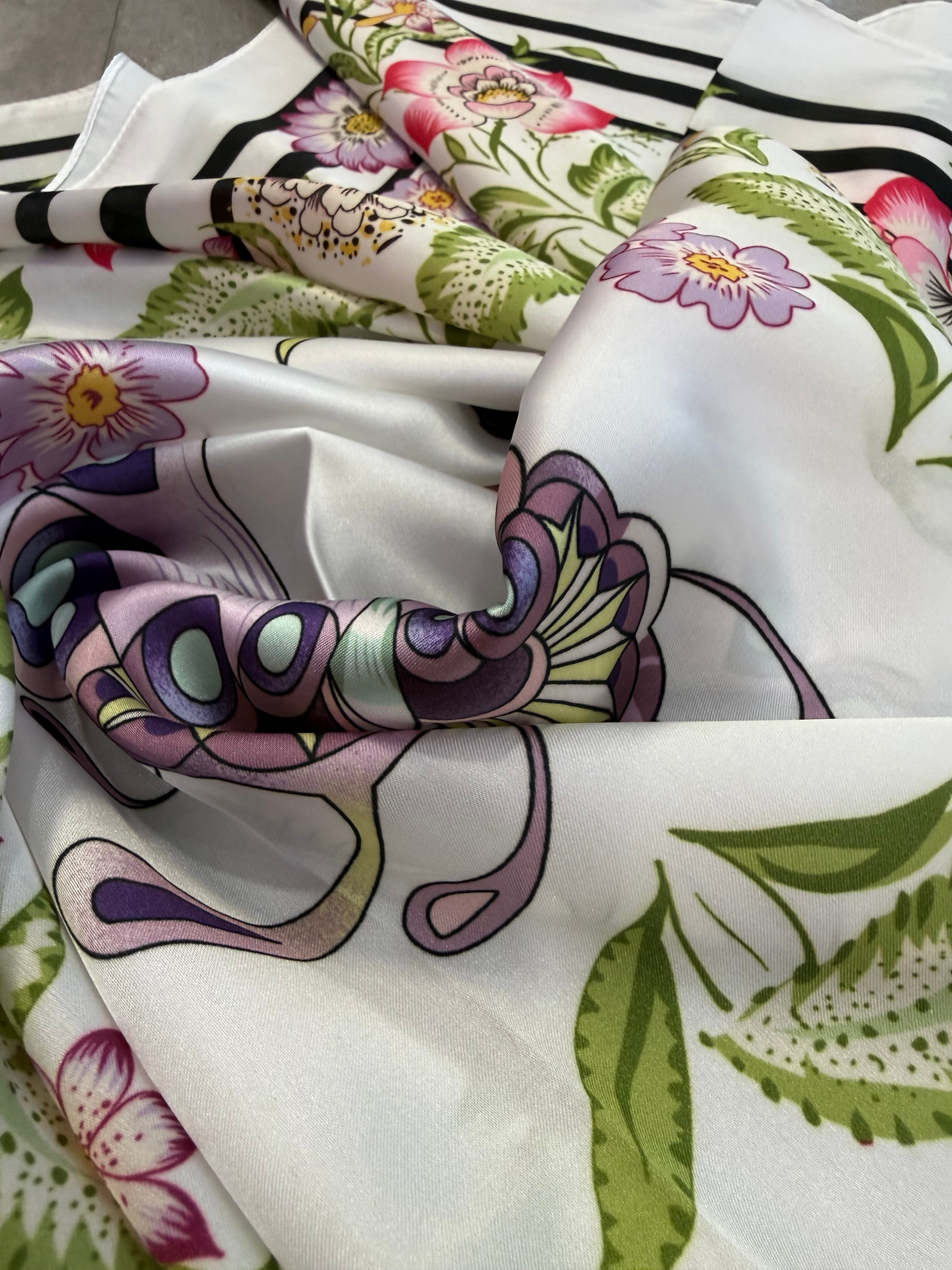 Apaszka wiskozowo-jedwabna we wzory, mozaika, cytryny, kwiaty, panterka, pomarańcze, kwadratowe