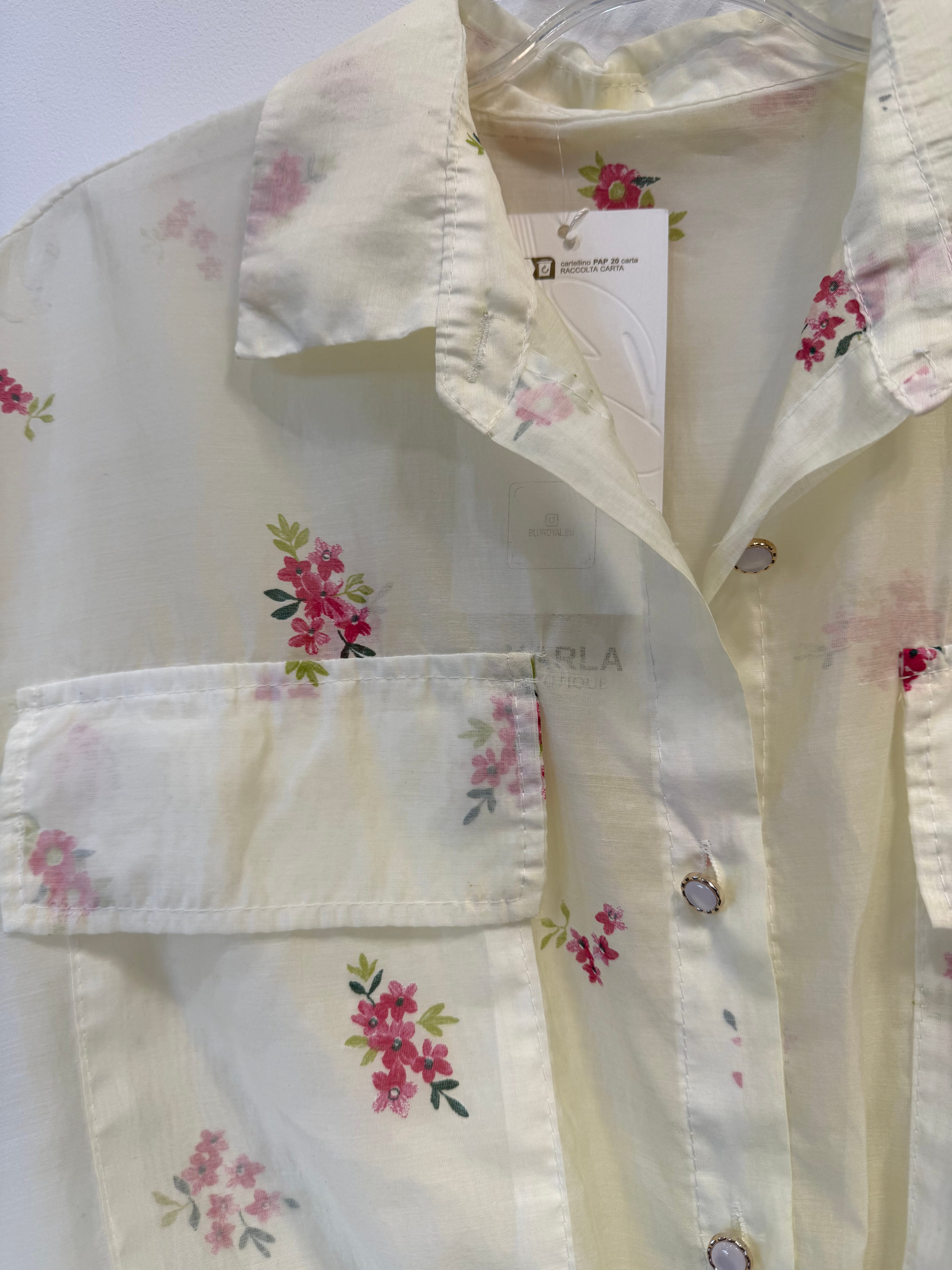 Bluzka koszulowa Cherry Blossom cytrynowa w różowe kwiatki, tencel