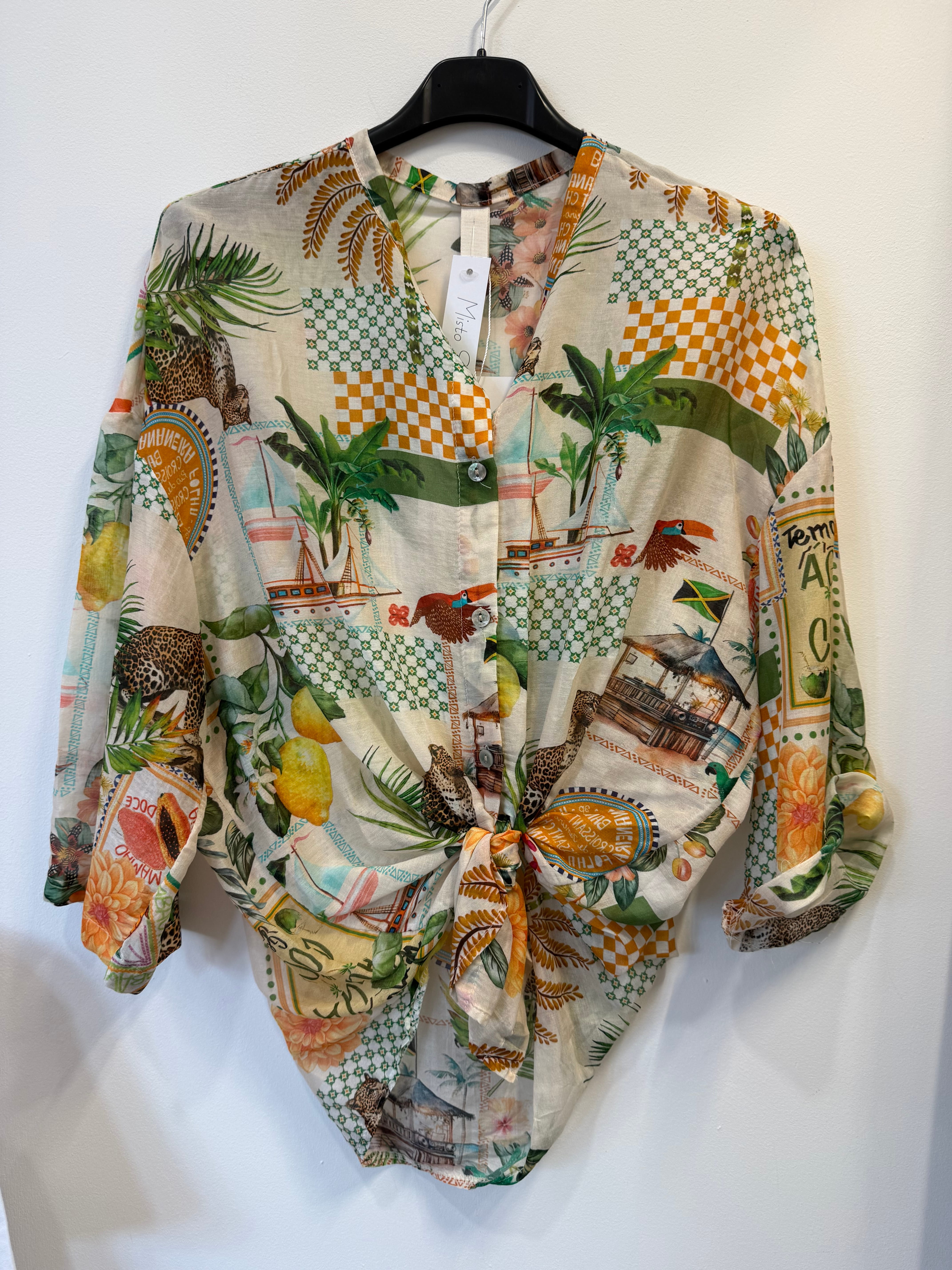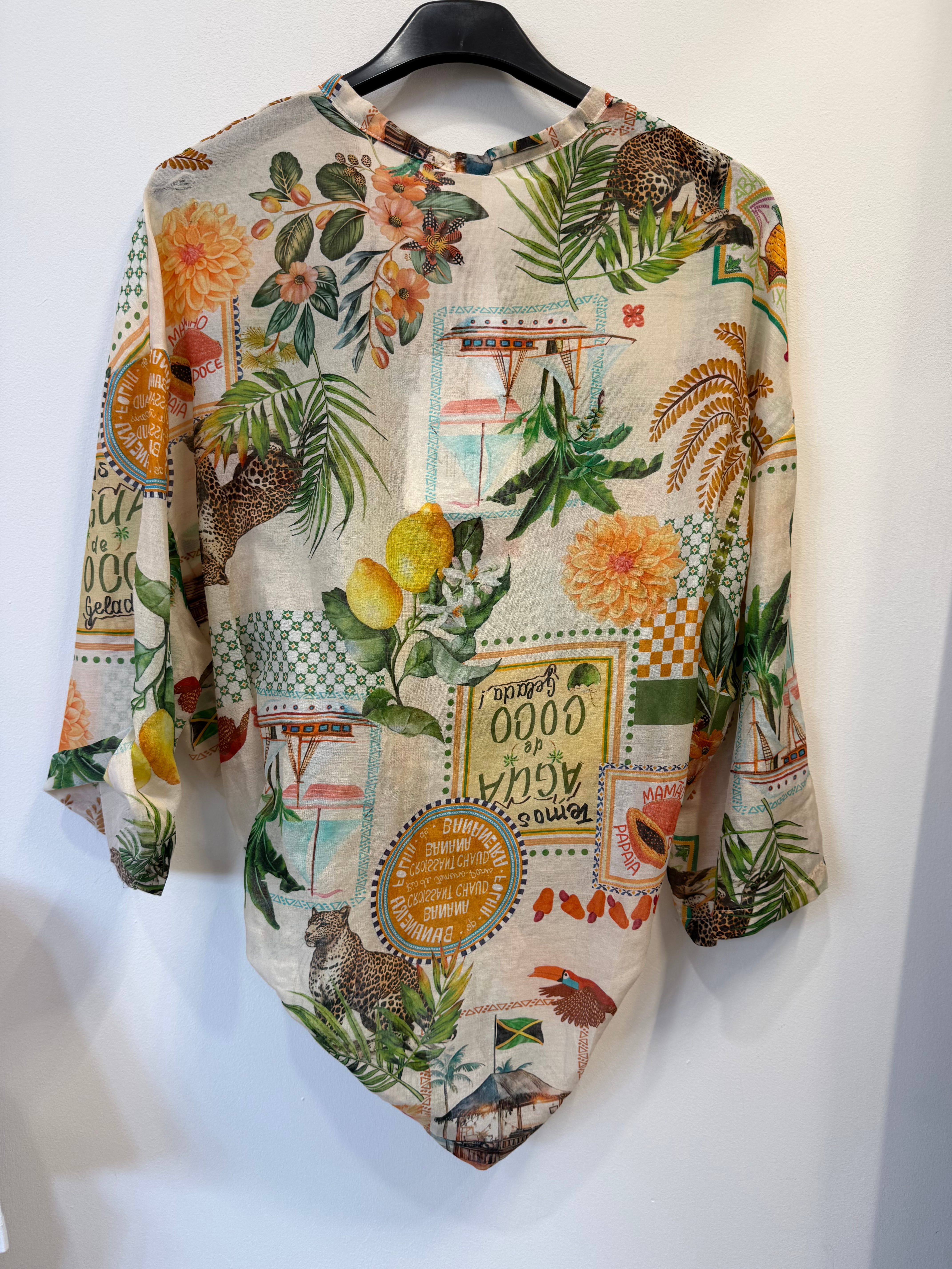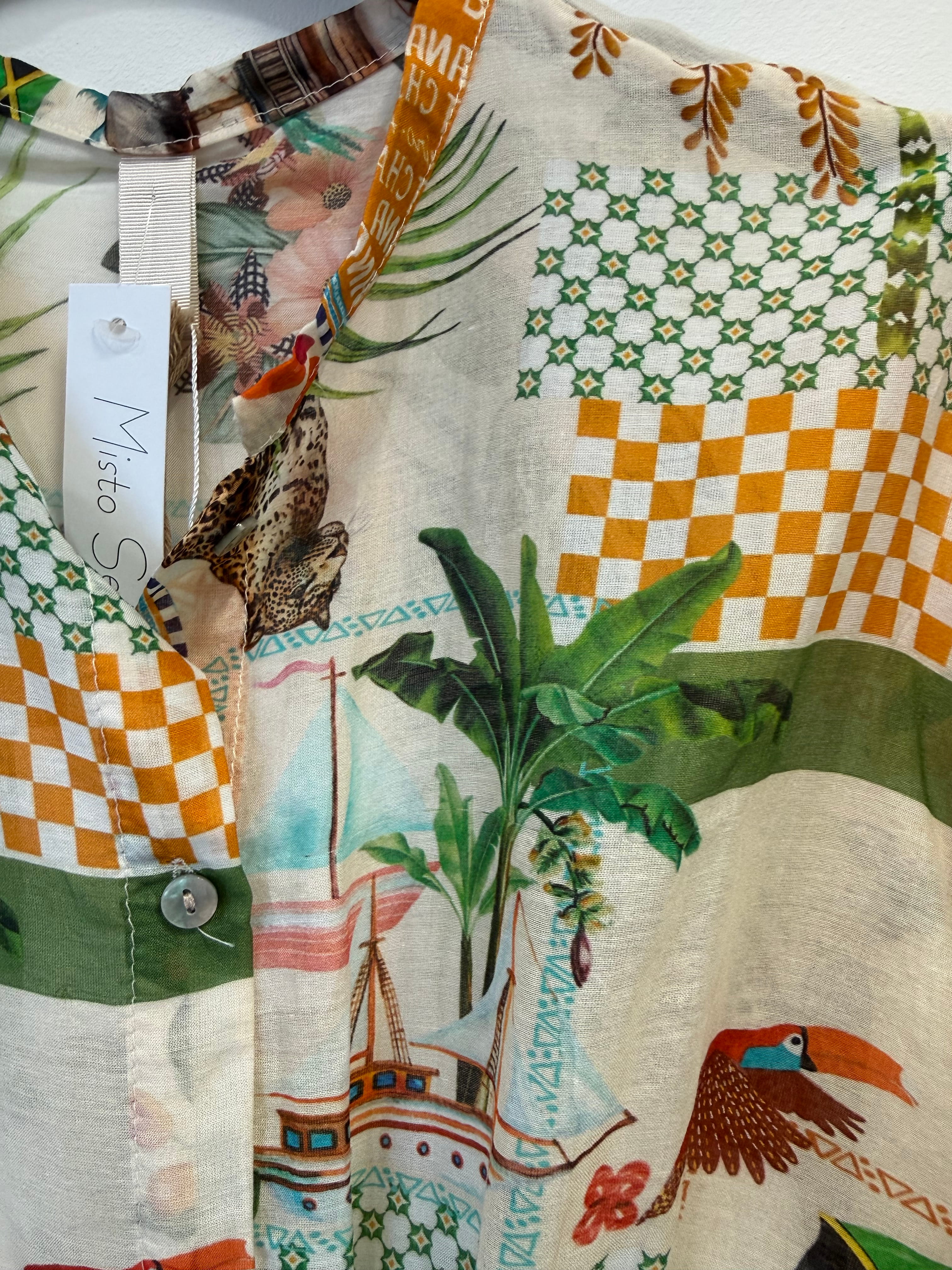 Bluzka koszulowa jedwab + bawełna Jungle Minth, kolorowa w dżunglowe wzory