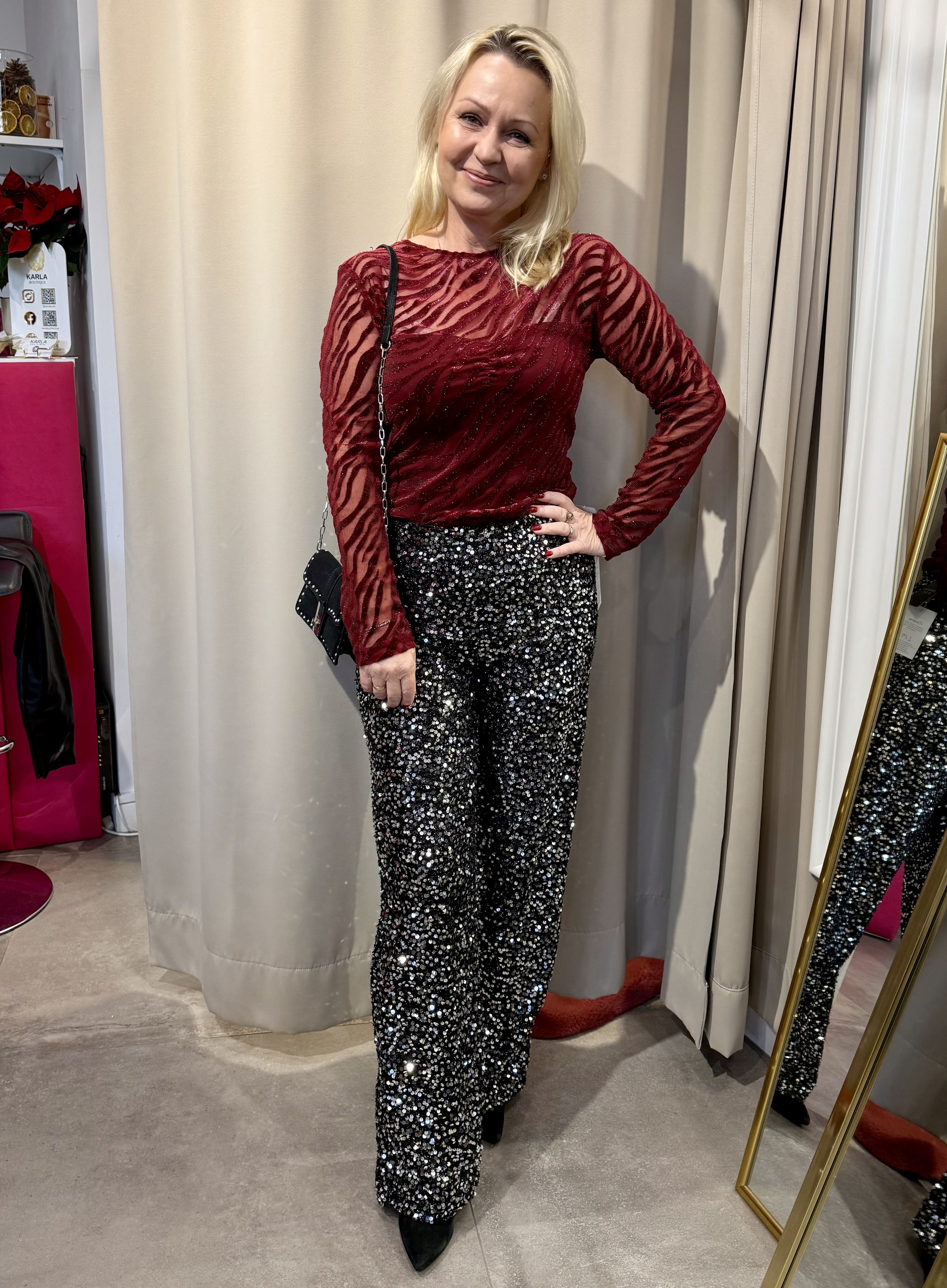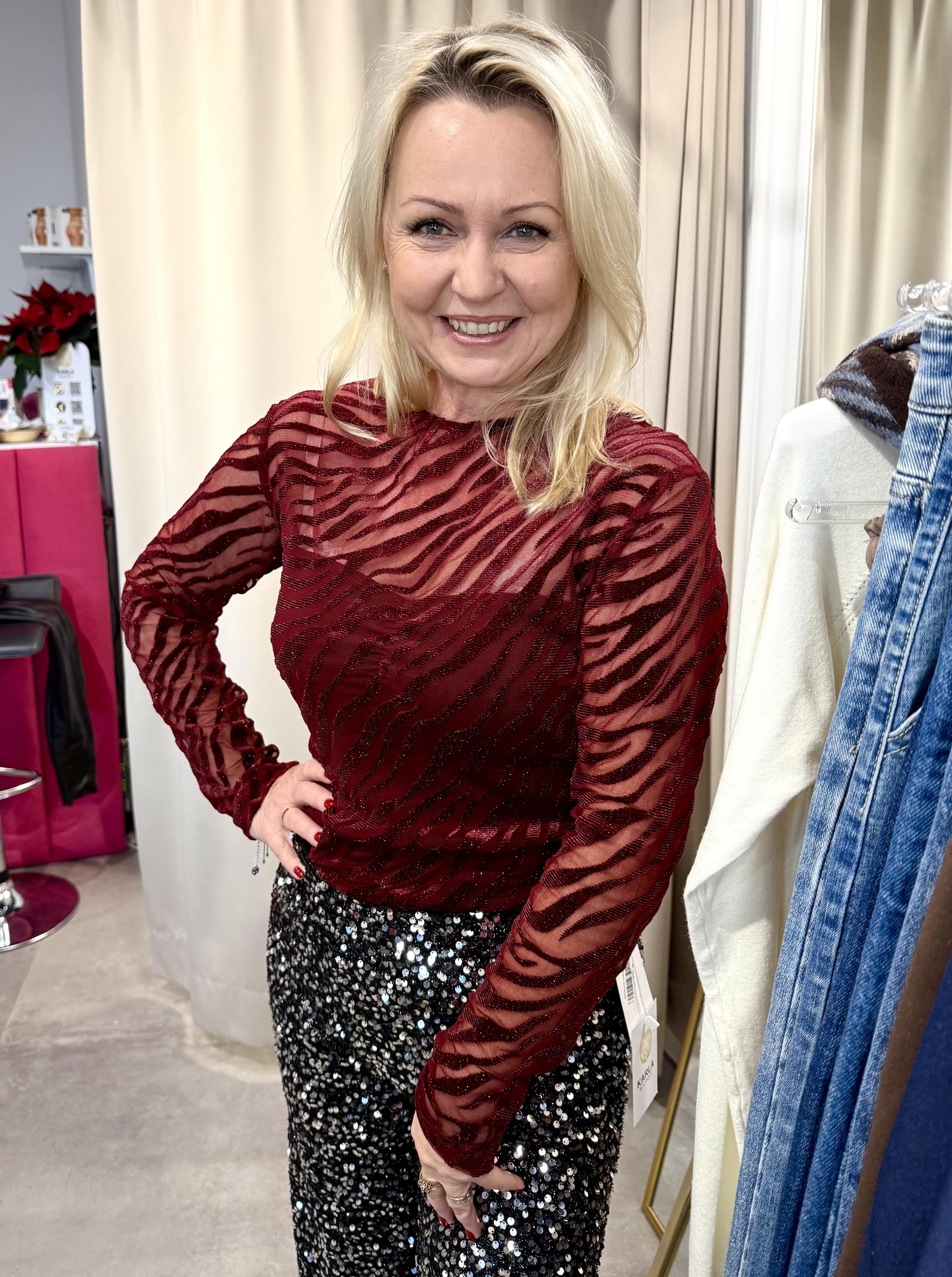 Body Santi bordowe aksamitne/welurowe z połyskiem, w a la zebrę/wzory, tył rozcięty