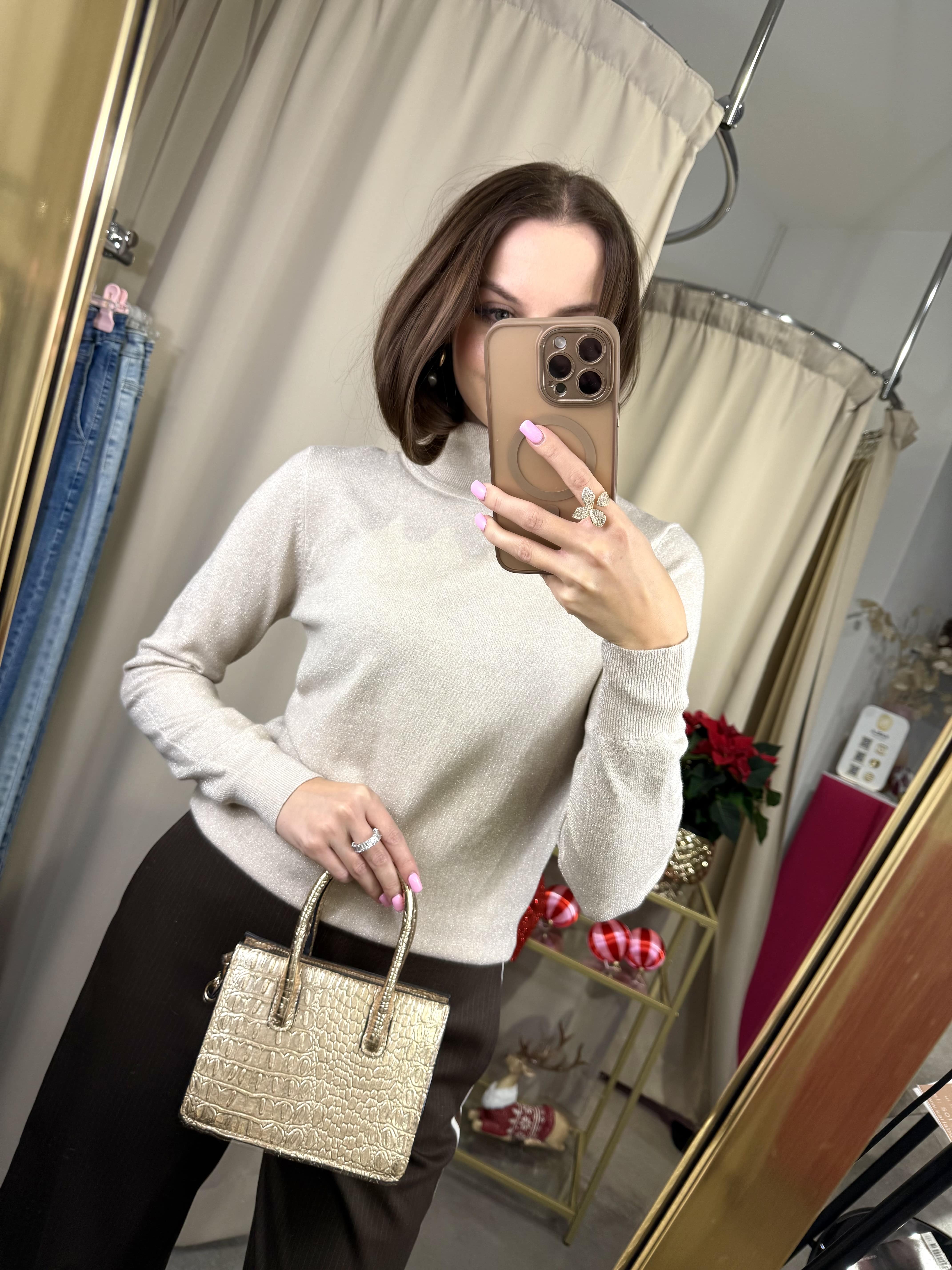 - klasyczny, smukły krój sweterka z golfem (bliżej szyi, choć nie jest z bardzo mocnego ściągacza więc zachowa komfort noszenia),