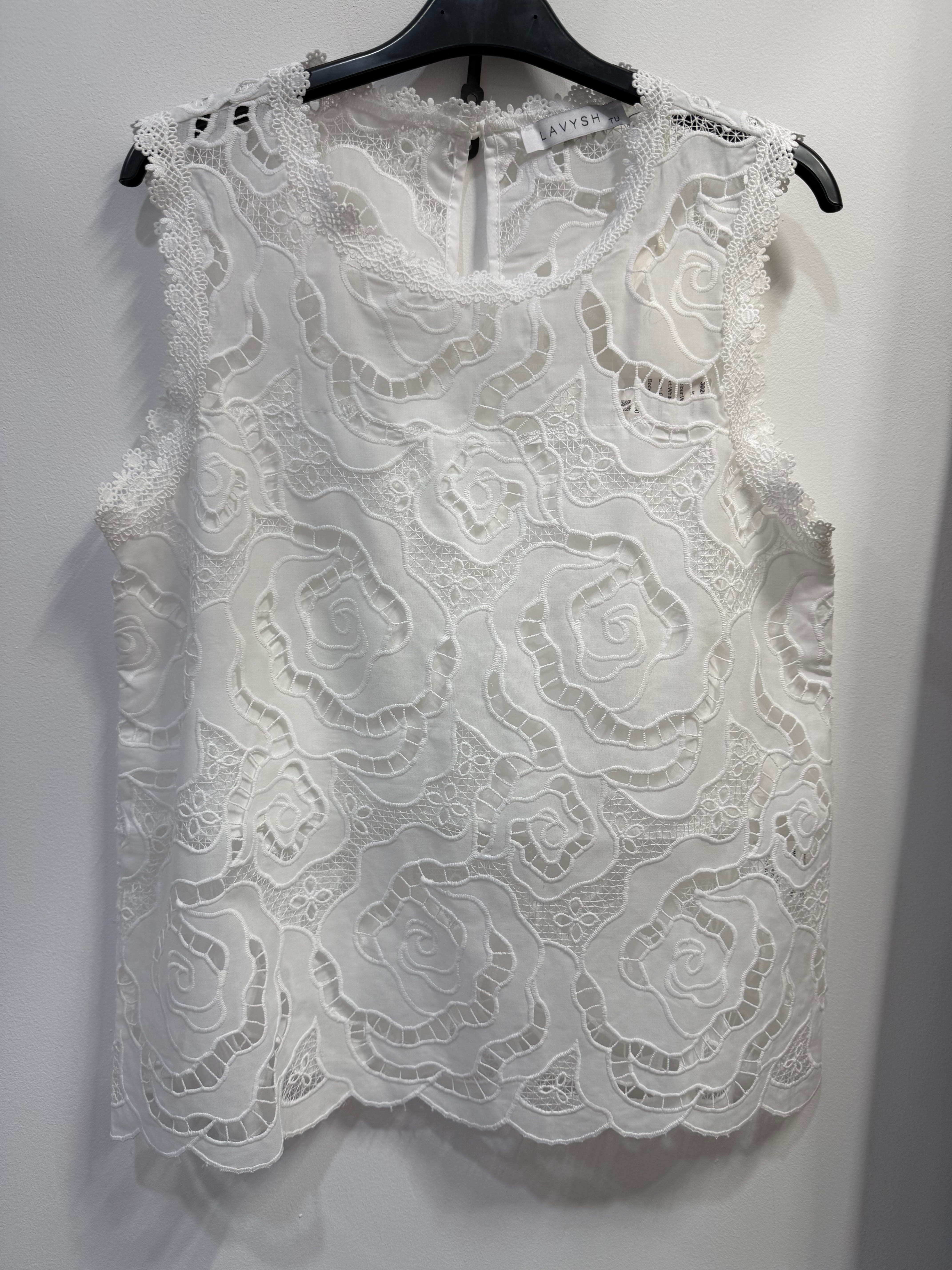 - zestaw z koronkowej gipiury: top oraz krótkie spodenki,