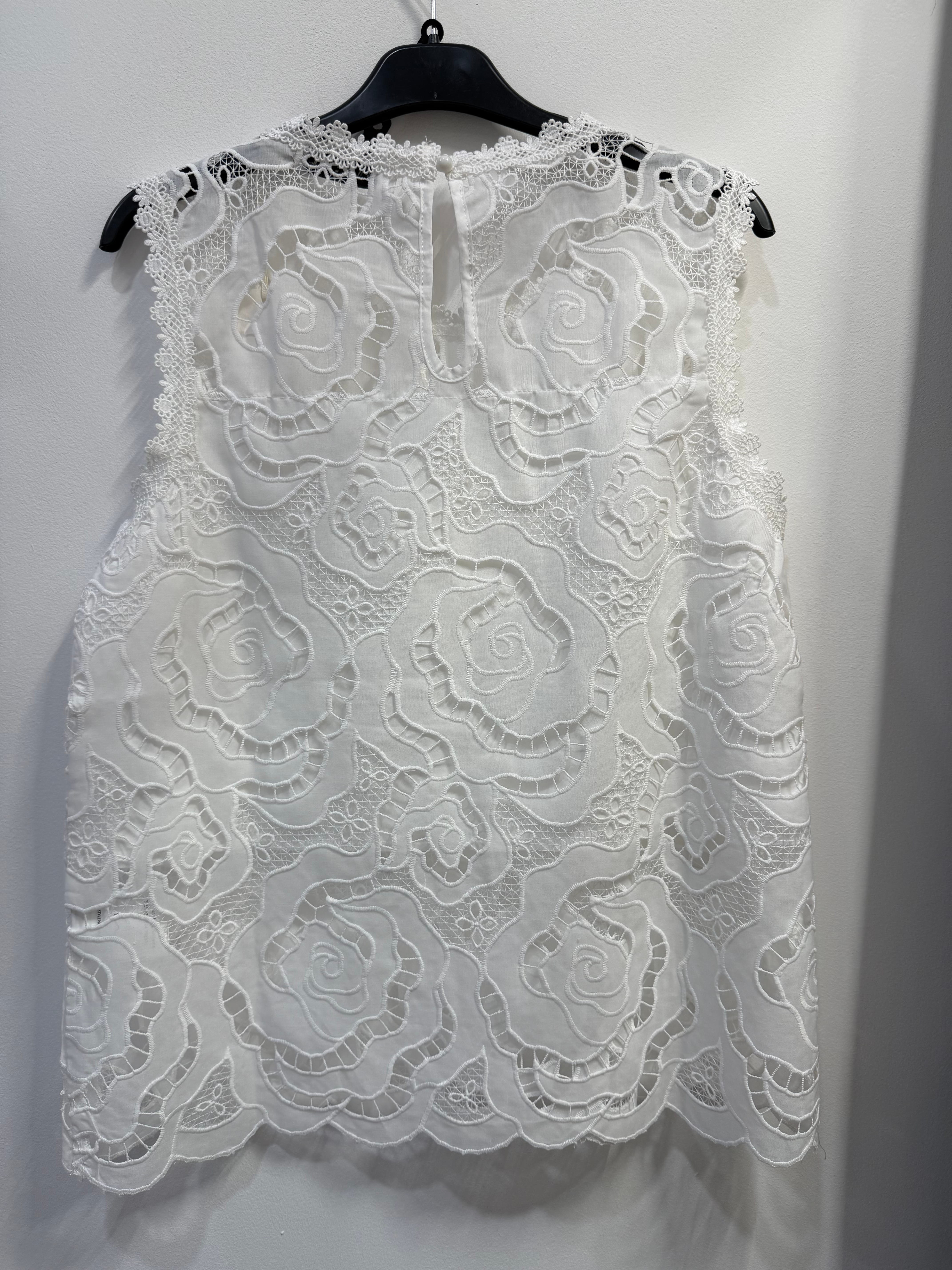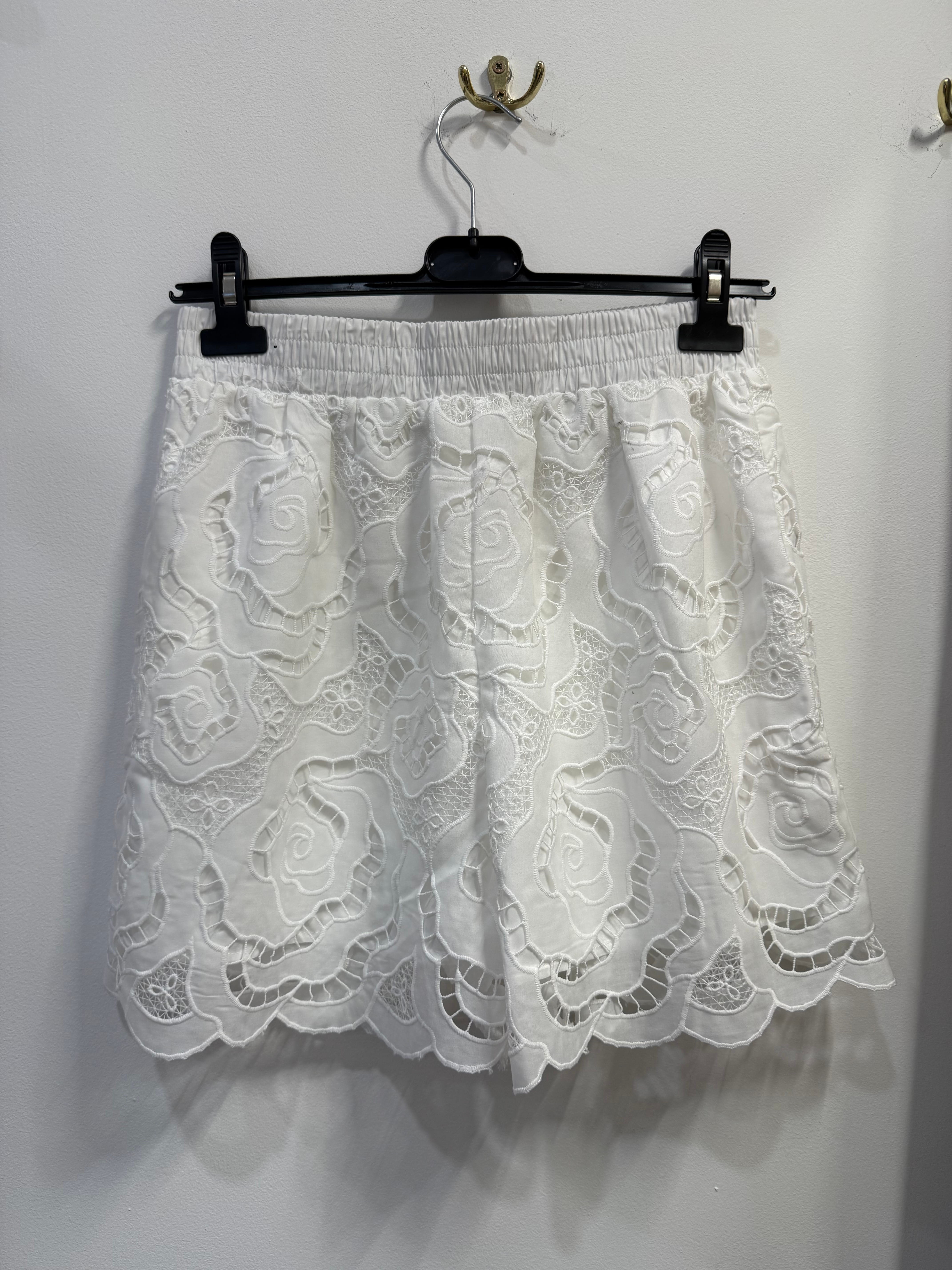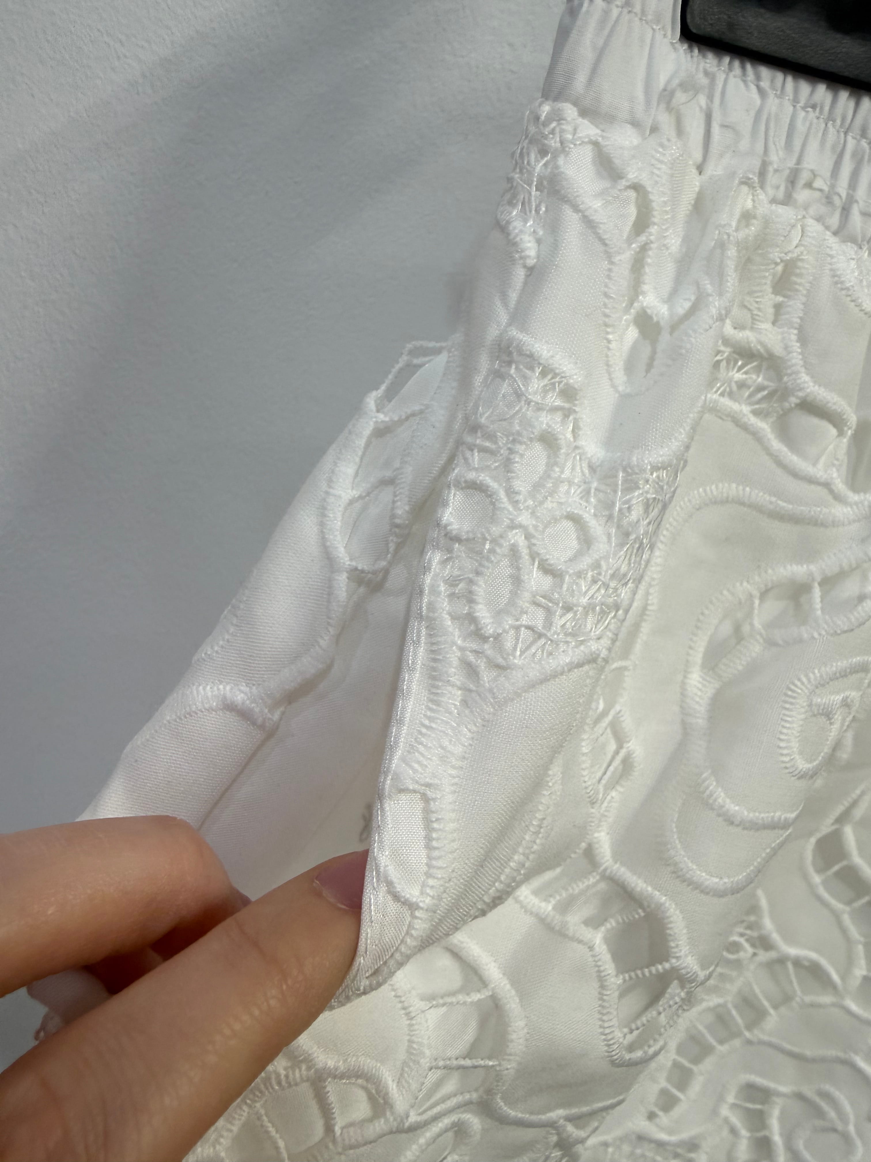 Komplet Royal Summer biały, koronkowy/gipiura top + krótkie spodenki