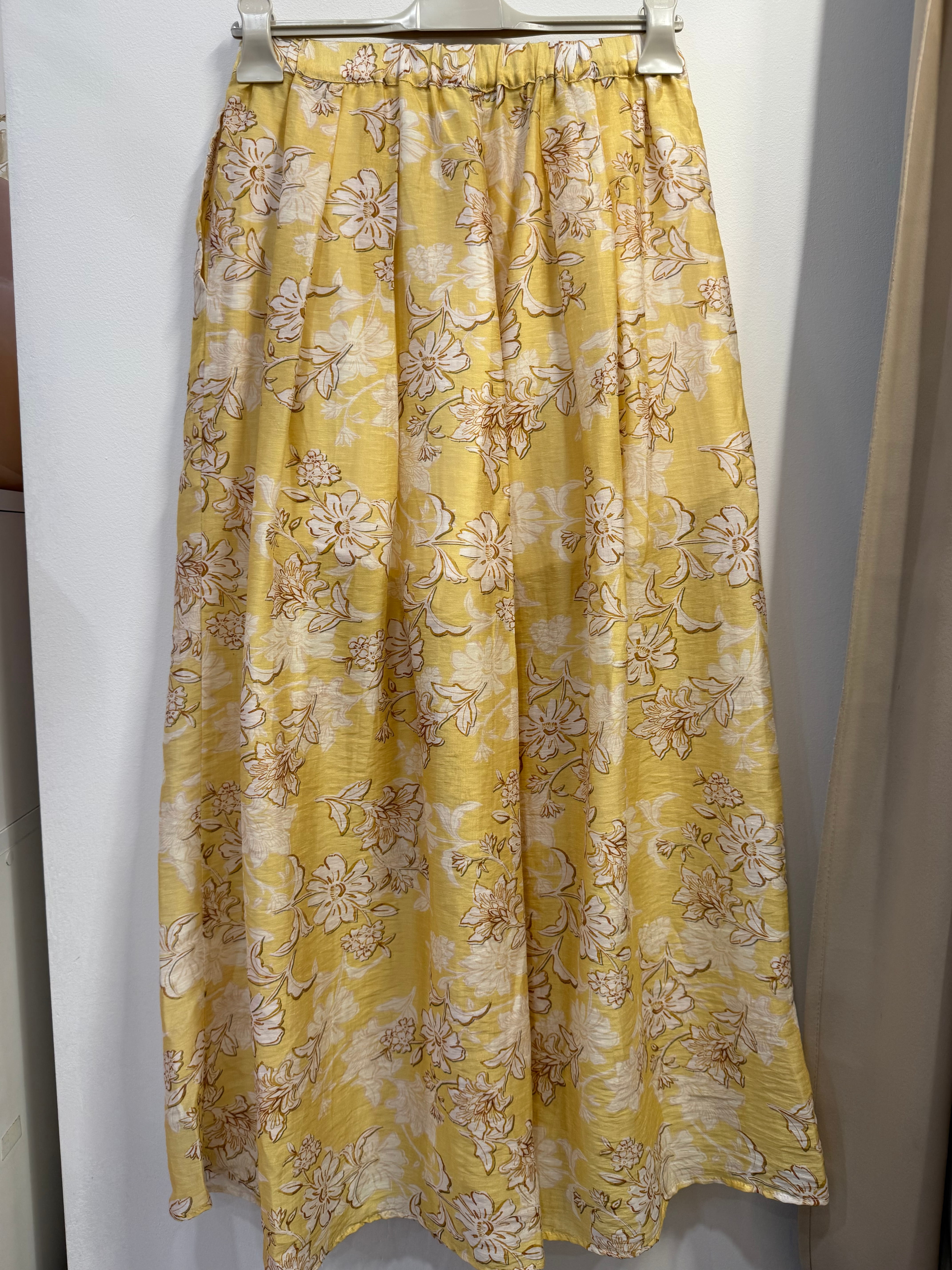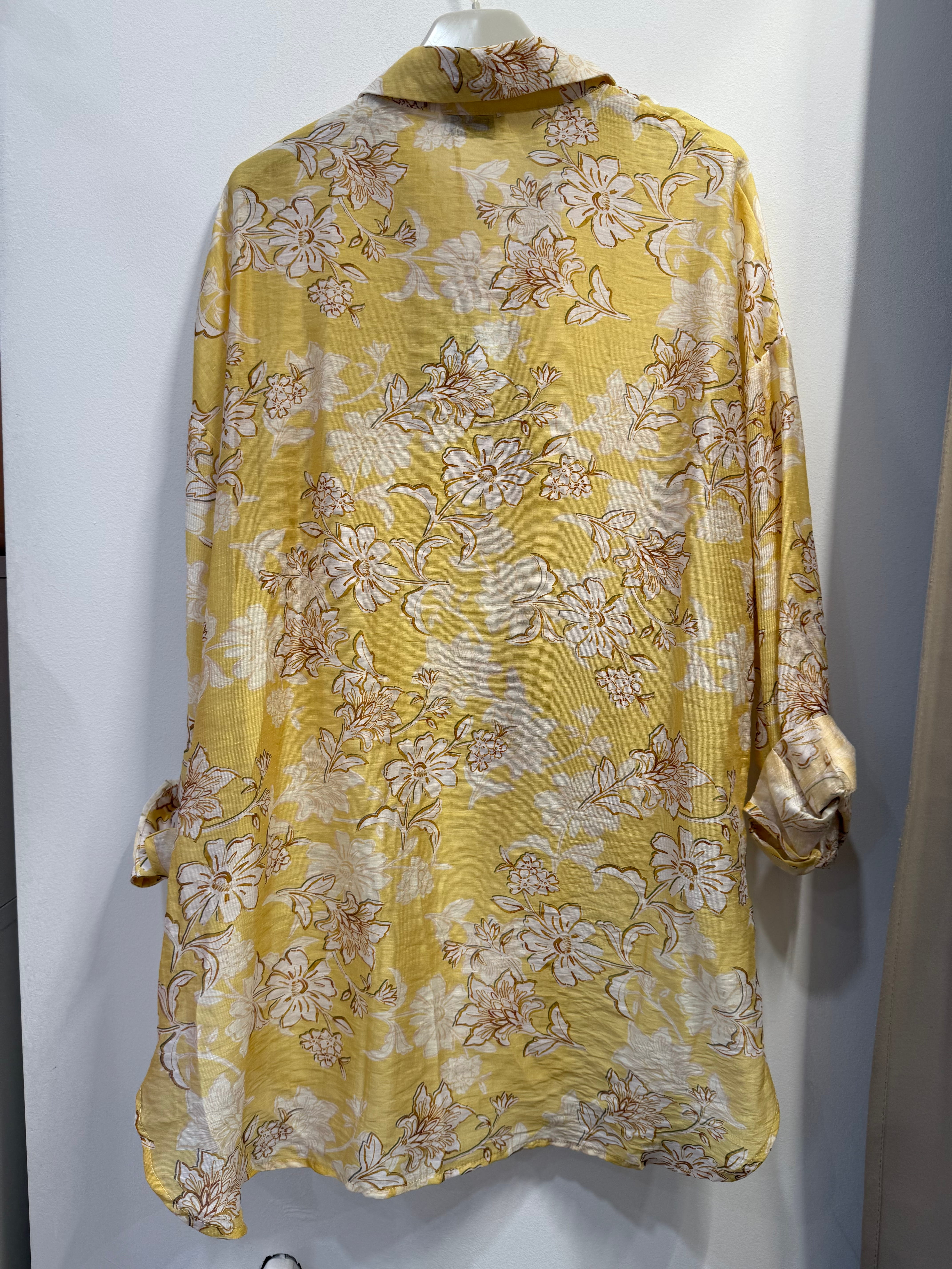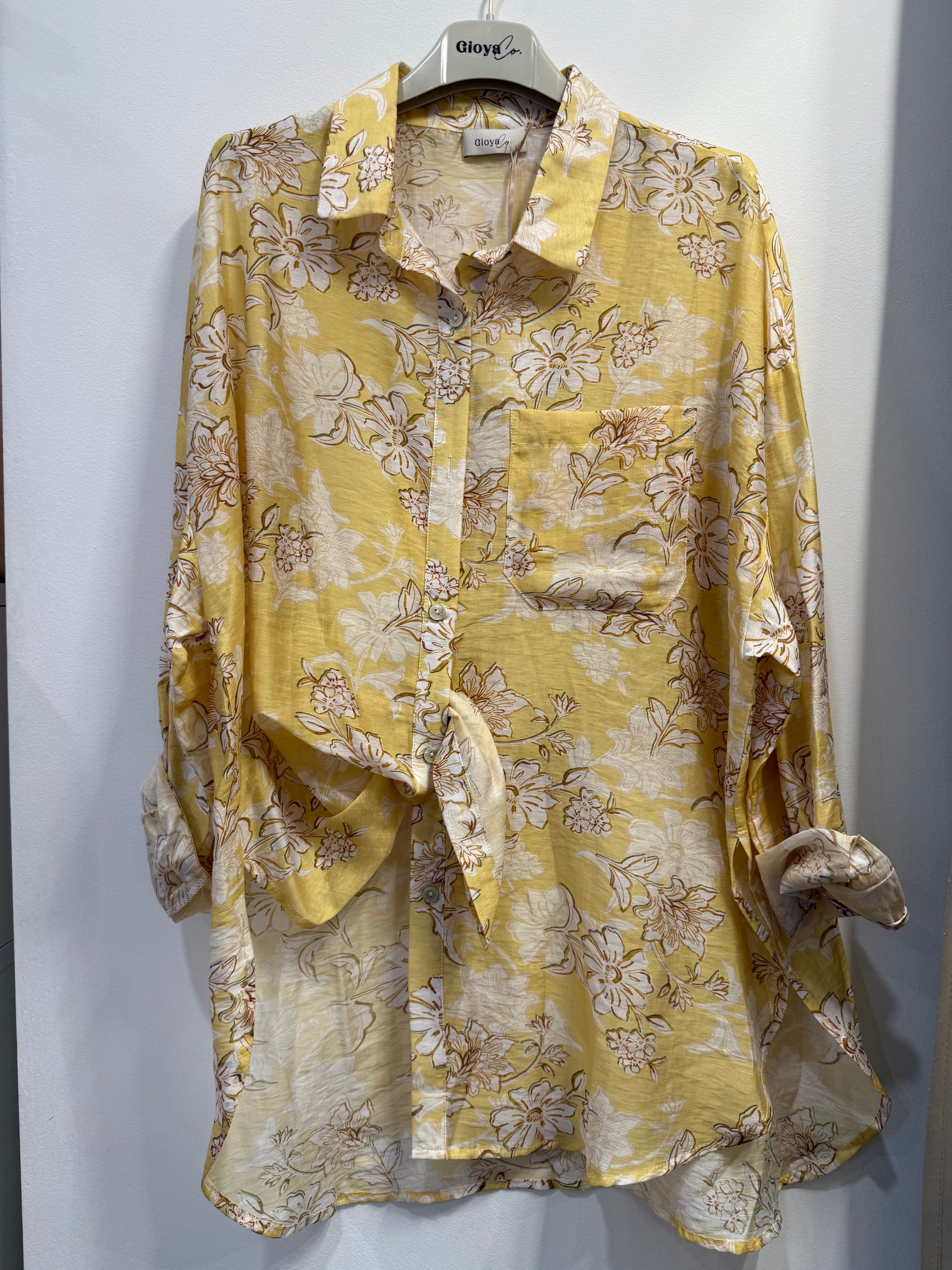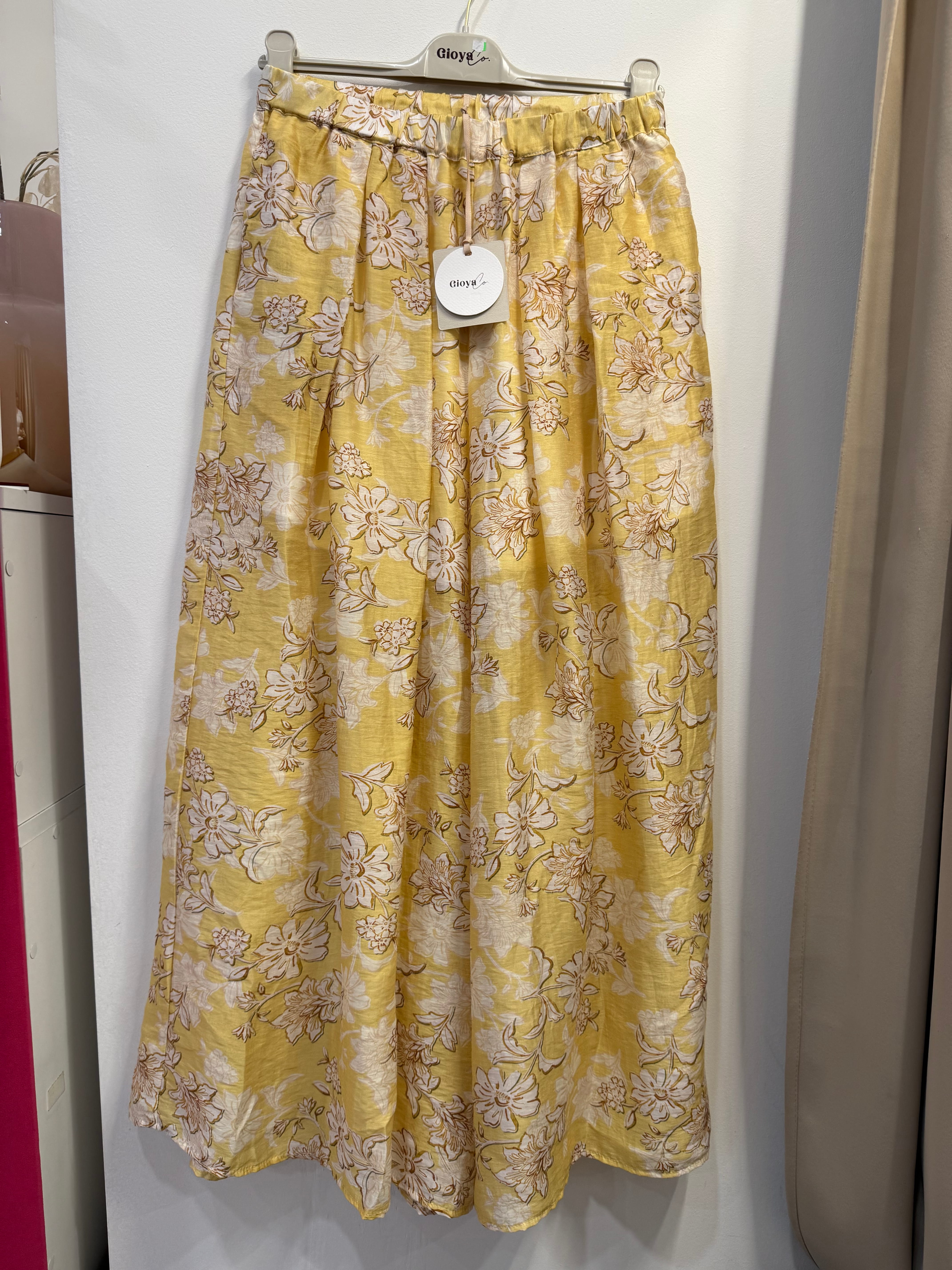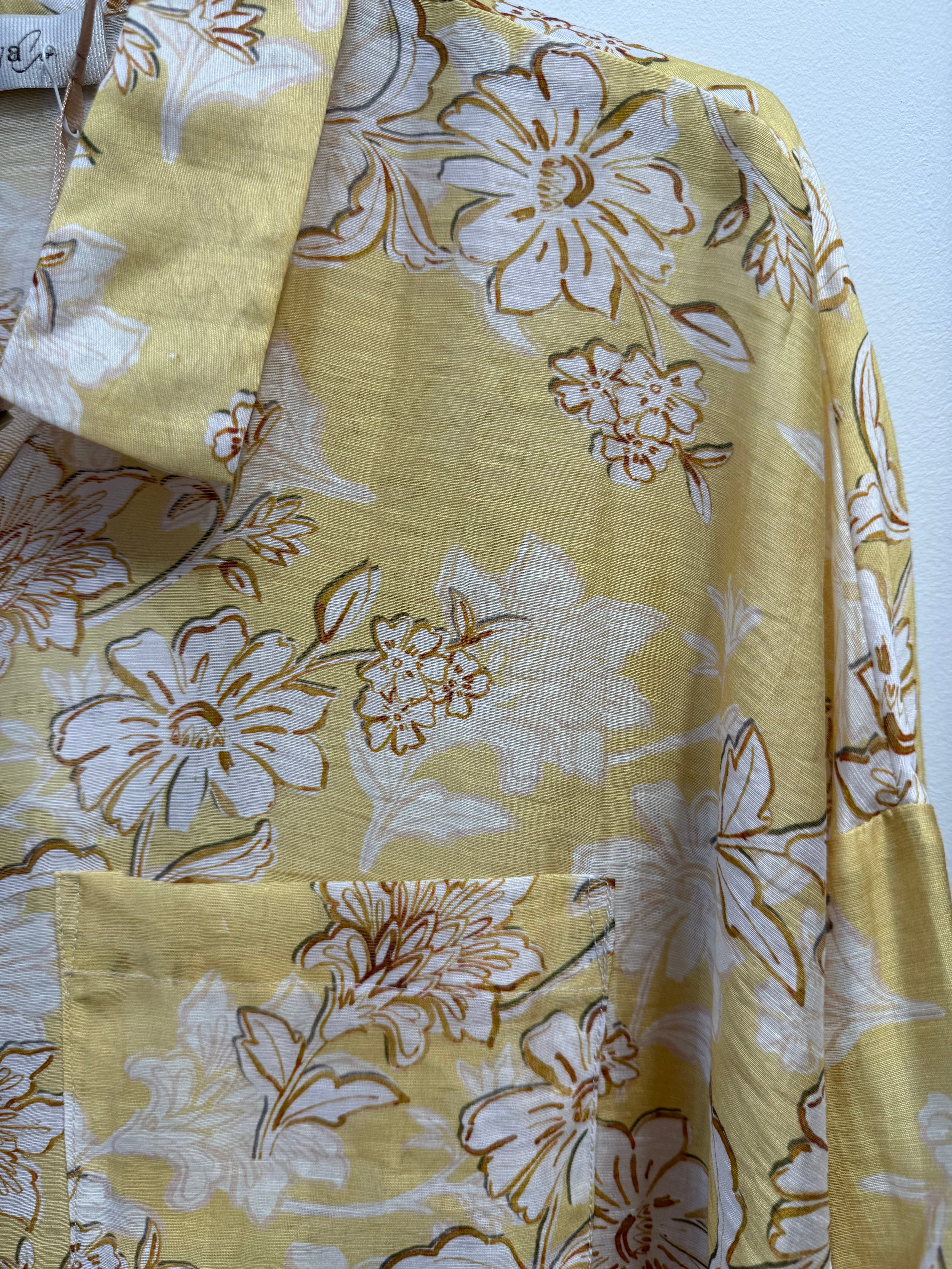 Komplet Sunshine z lyocellem i lnem, koszula + spodnie szerokie cytrynowy w kremowe kwiaty