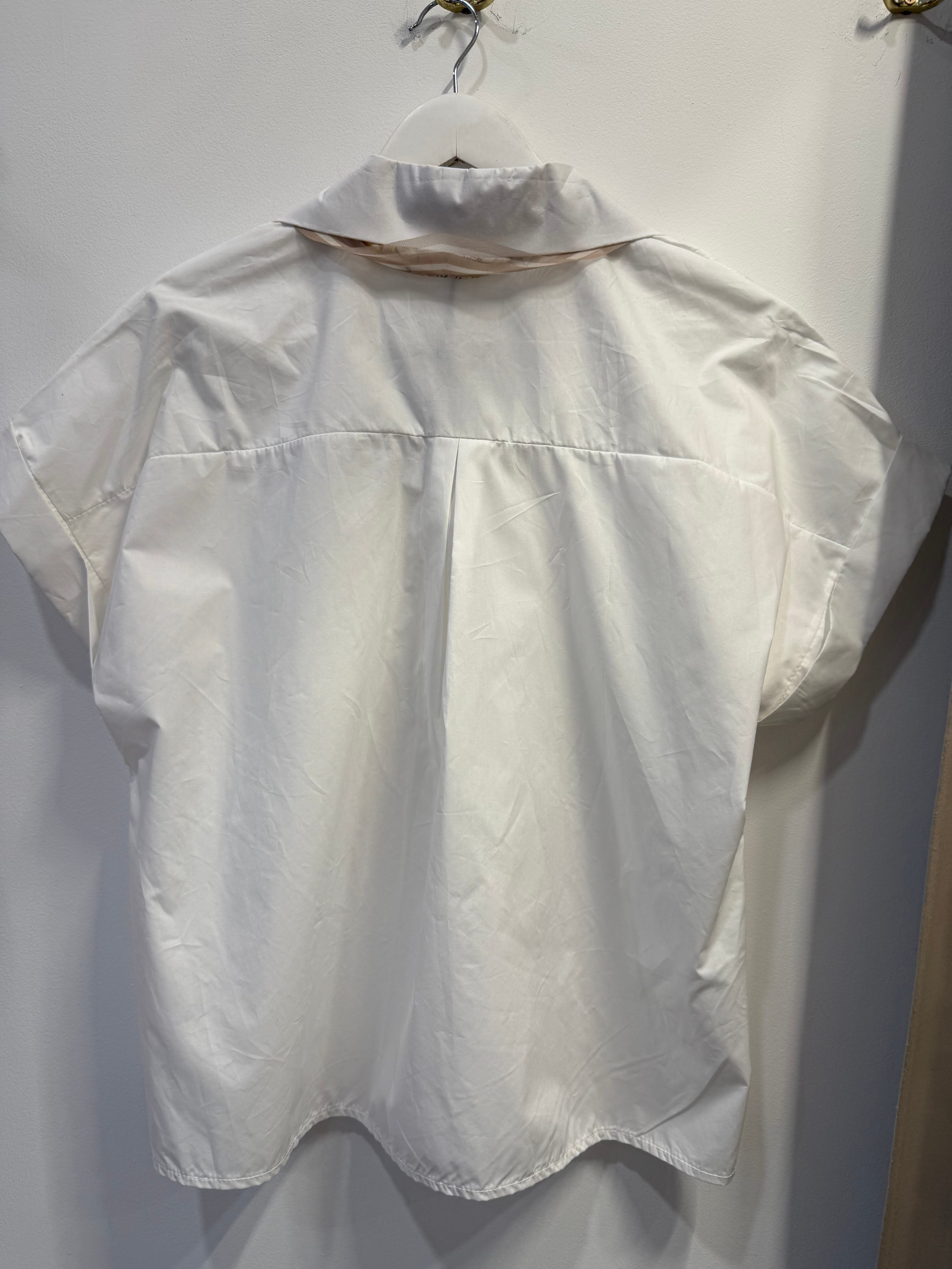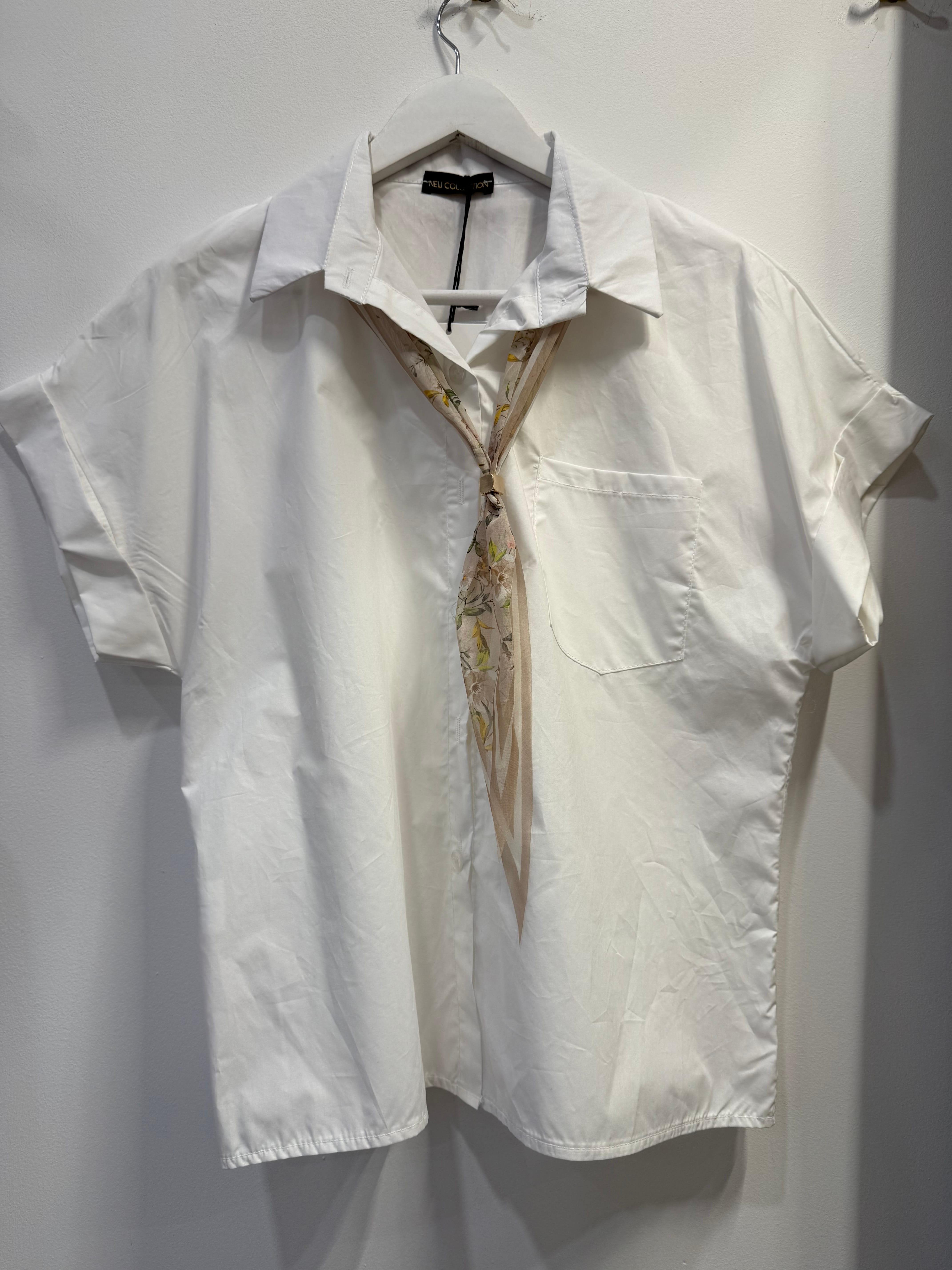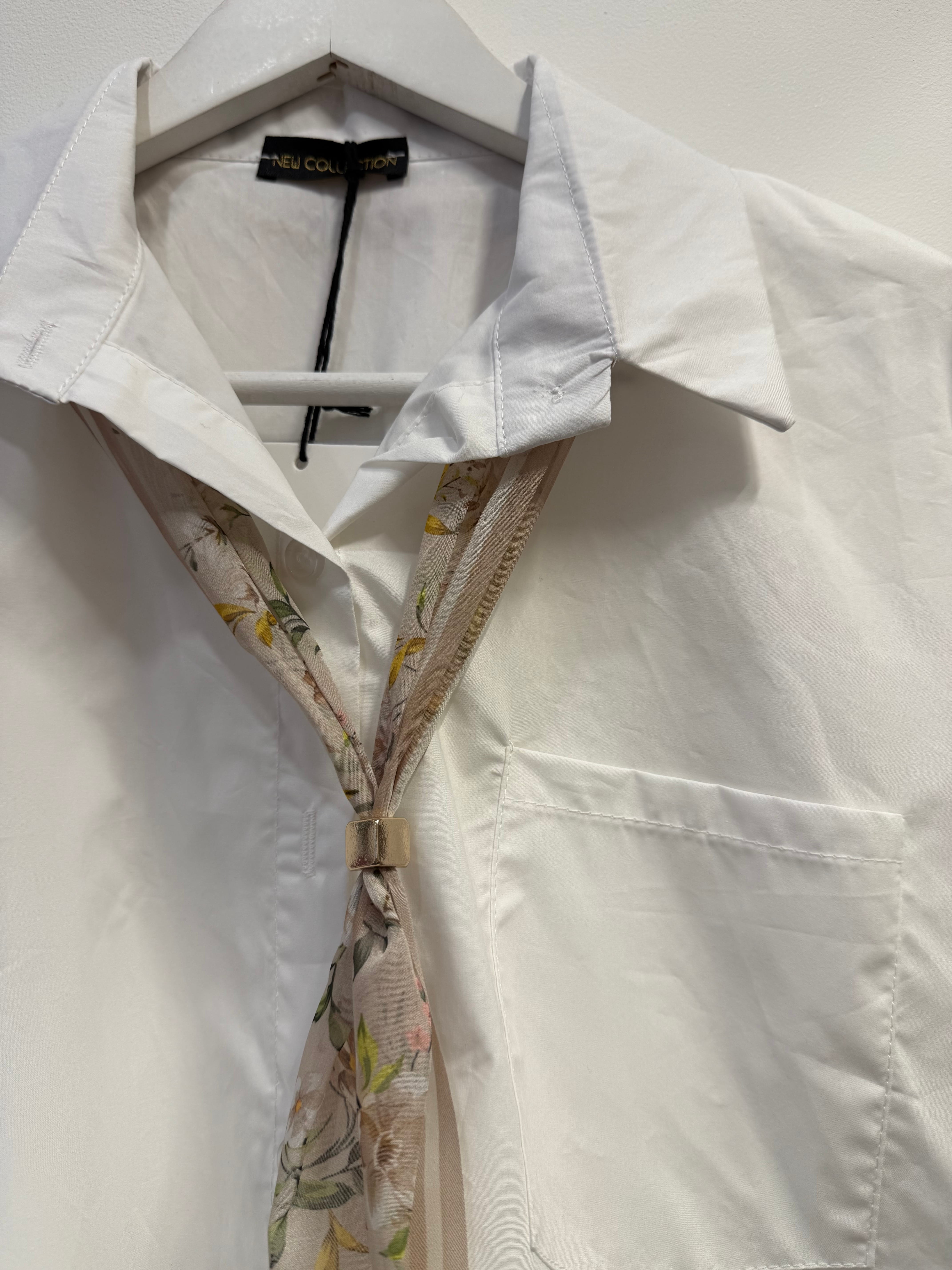 Koszula Assunta z rękawami 3/4 bawełniana biała z apaszką w zestawie