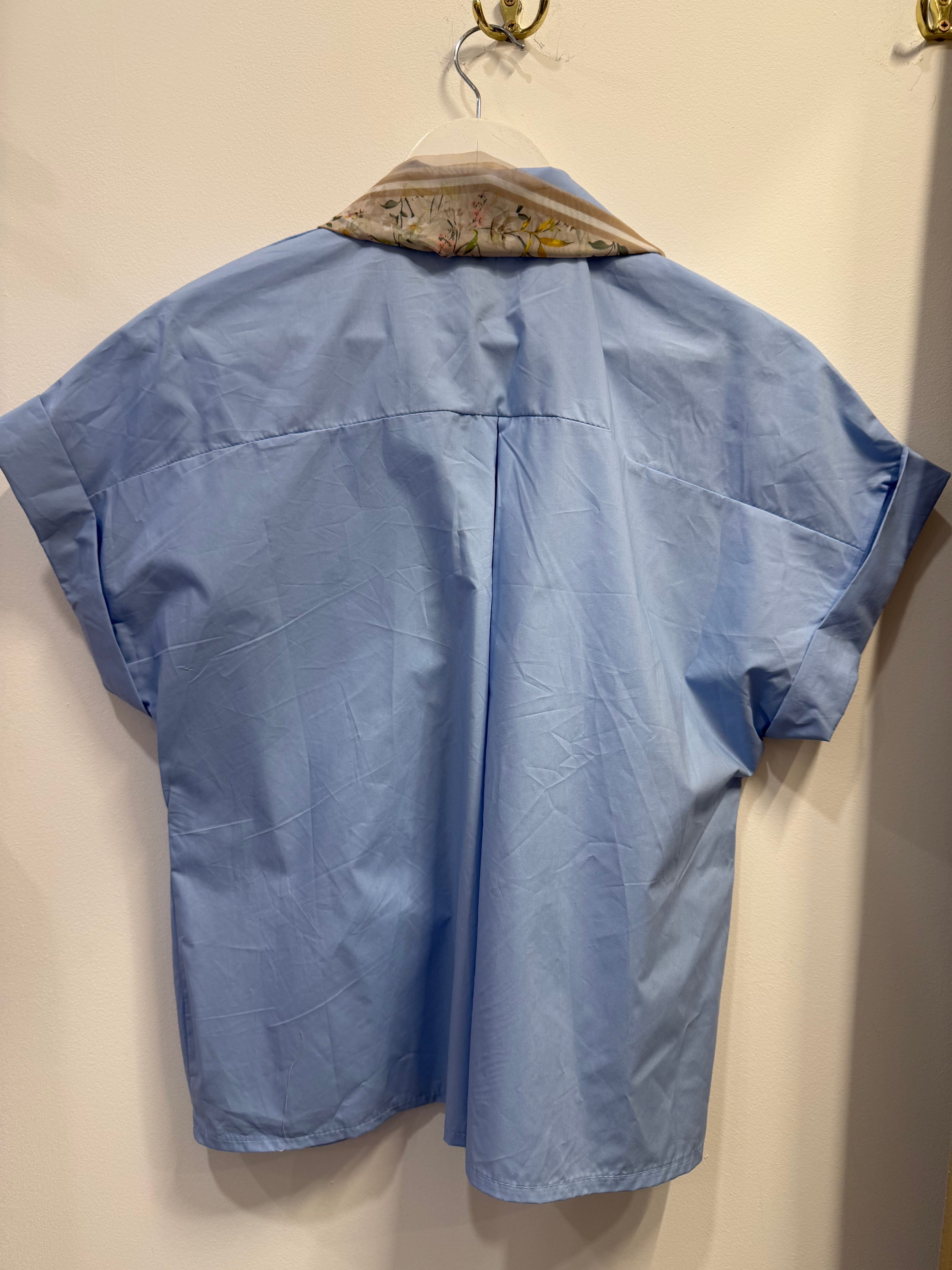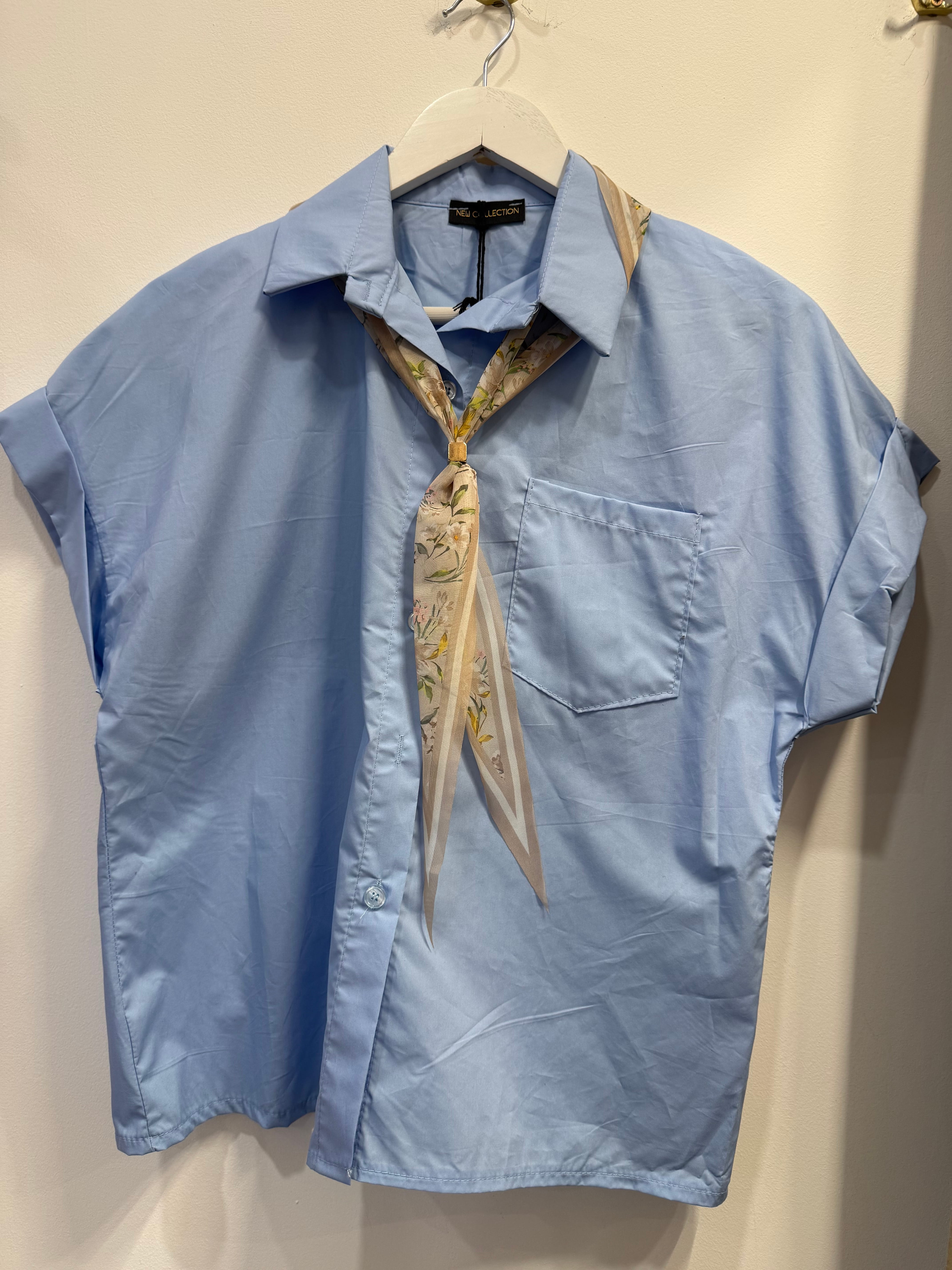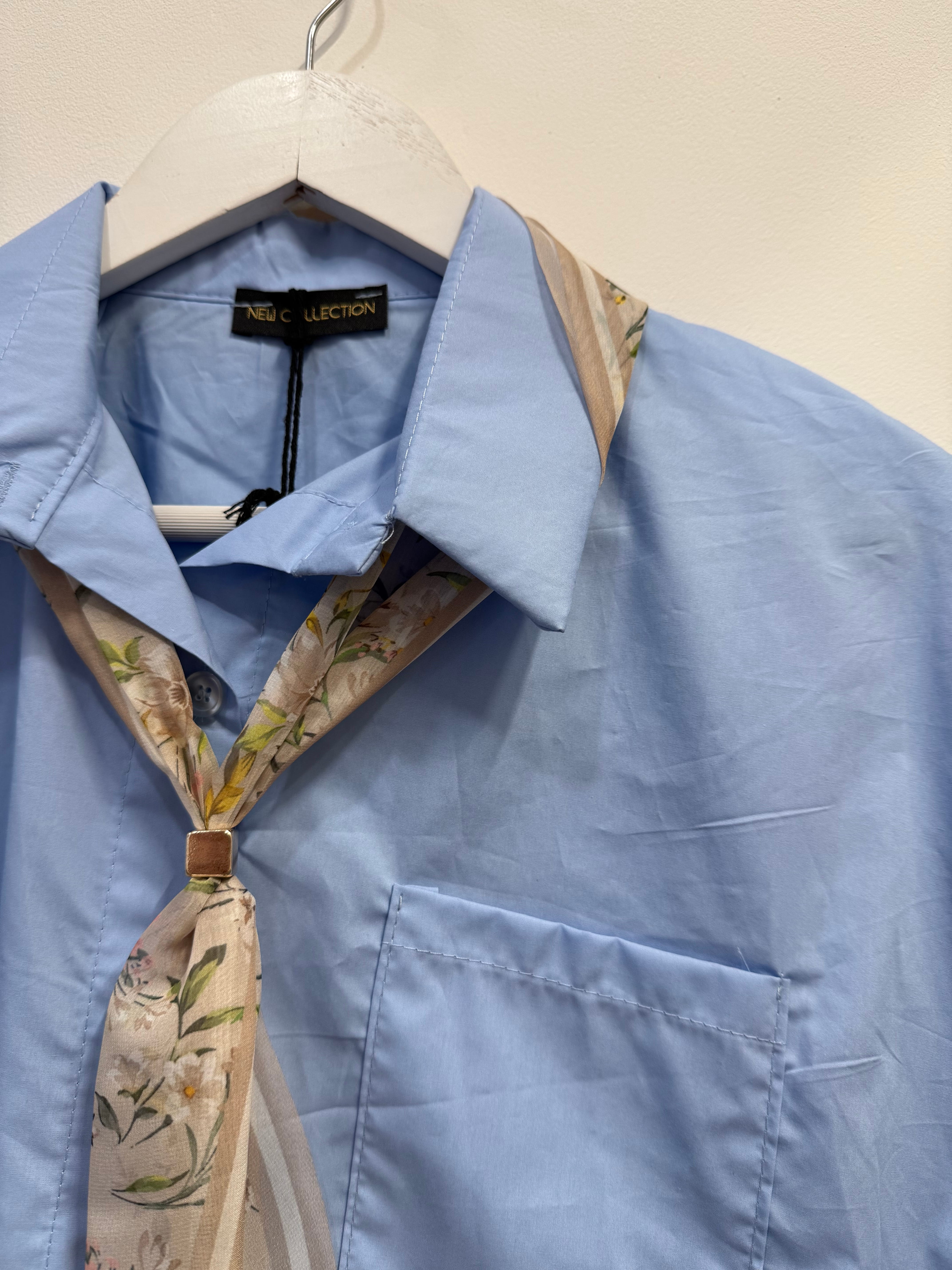 Koszula Assunta z rękawami 3/4 bawełniana błękitna z apaszką w zestawie