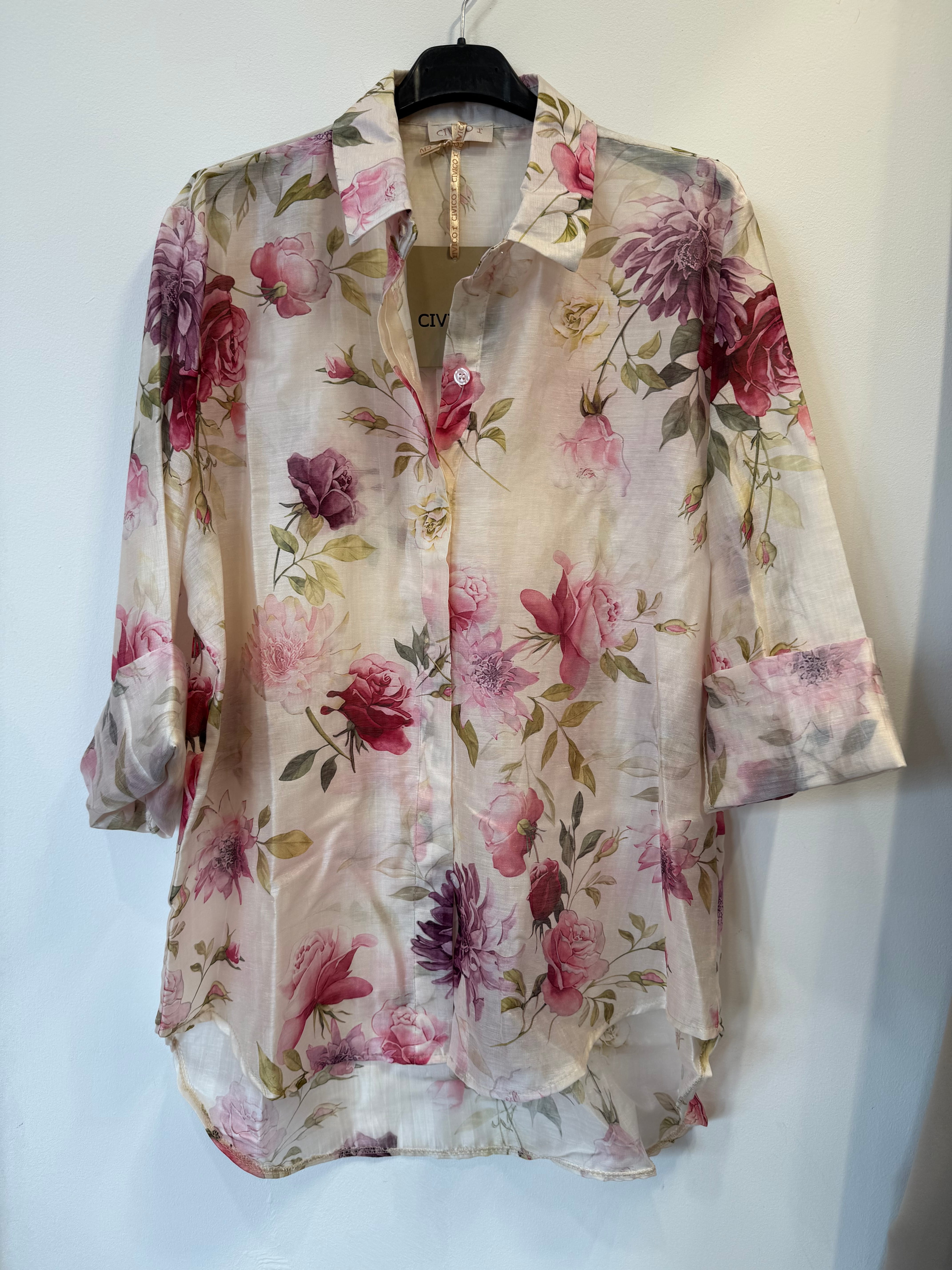 Koszula Fiorella w kwiaty z lyocellem i lnem
