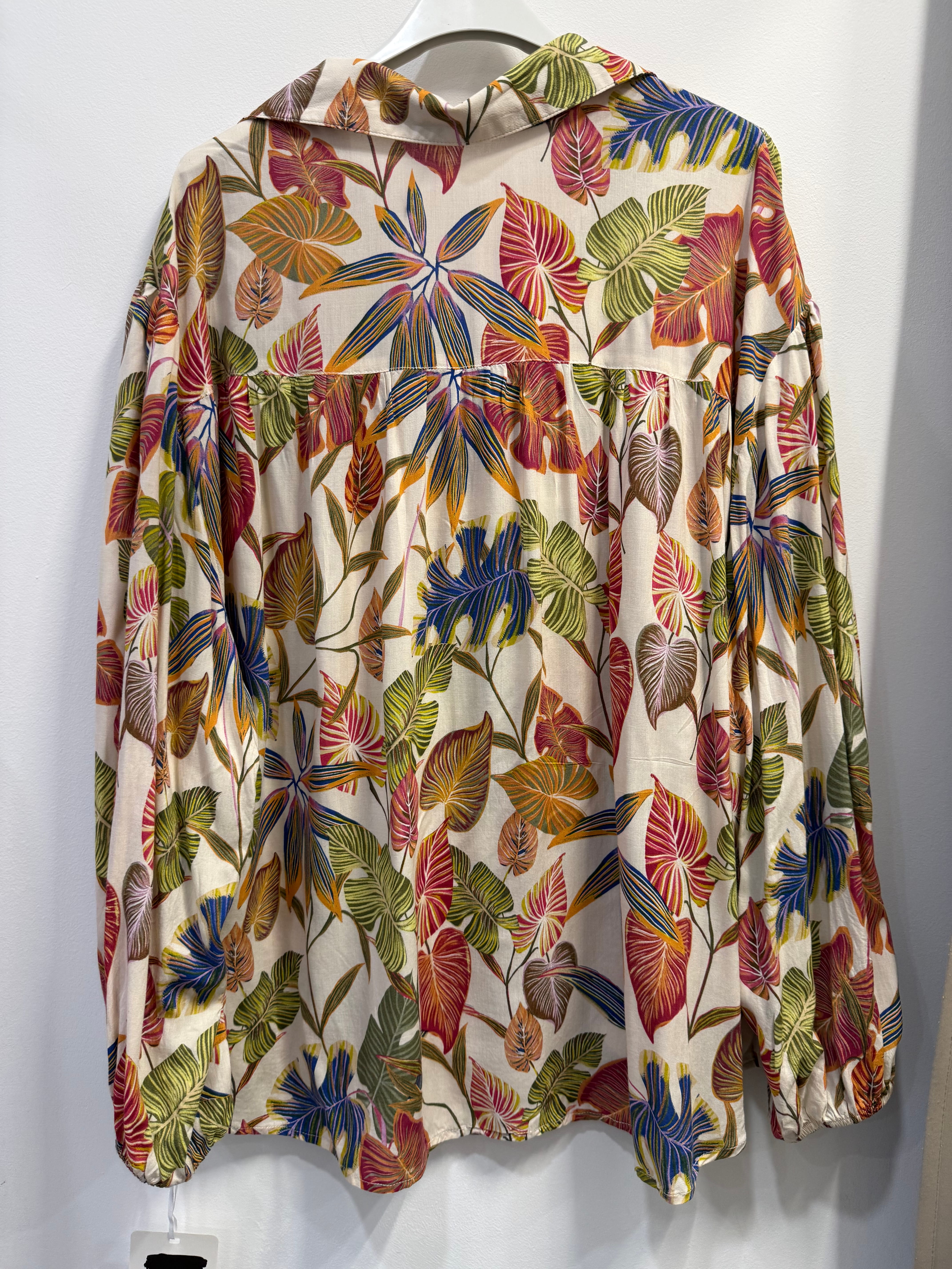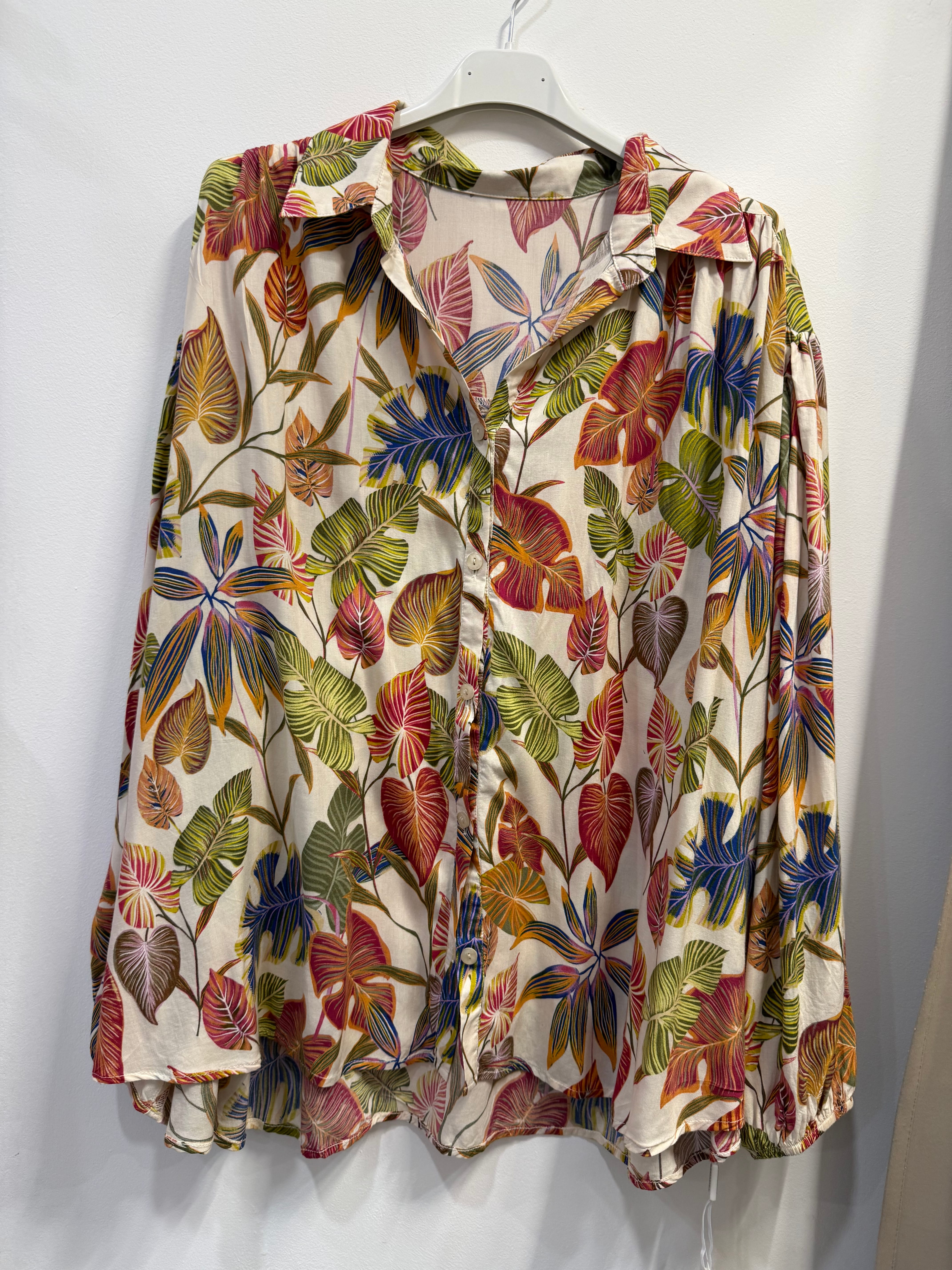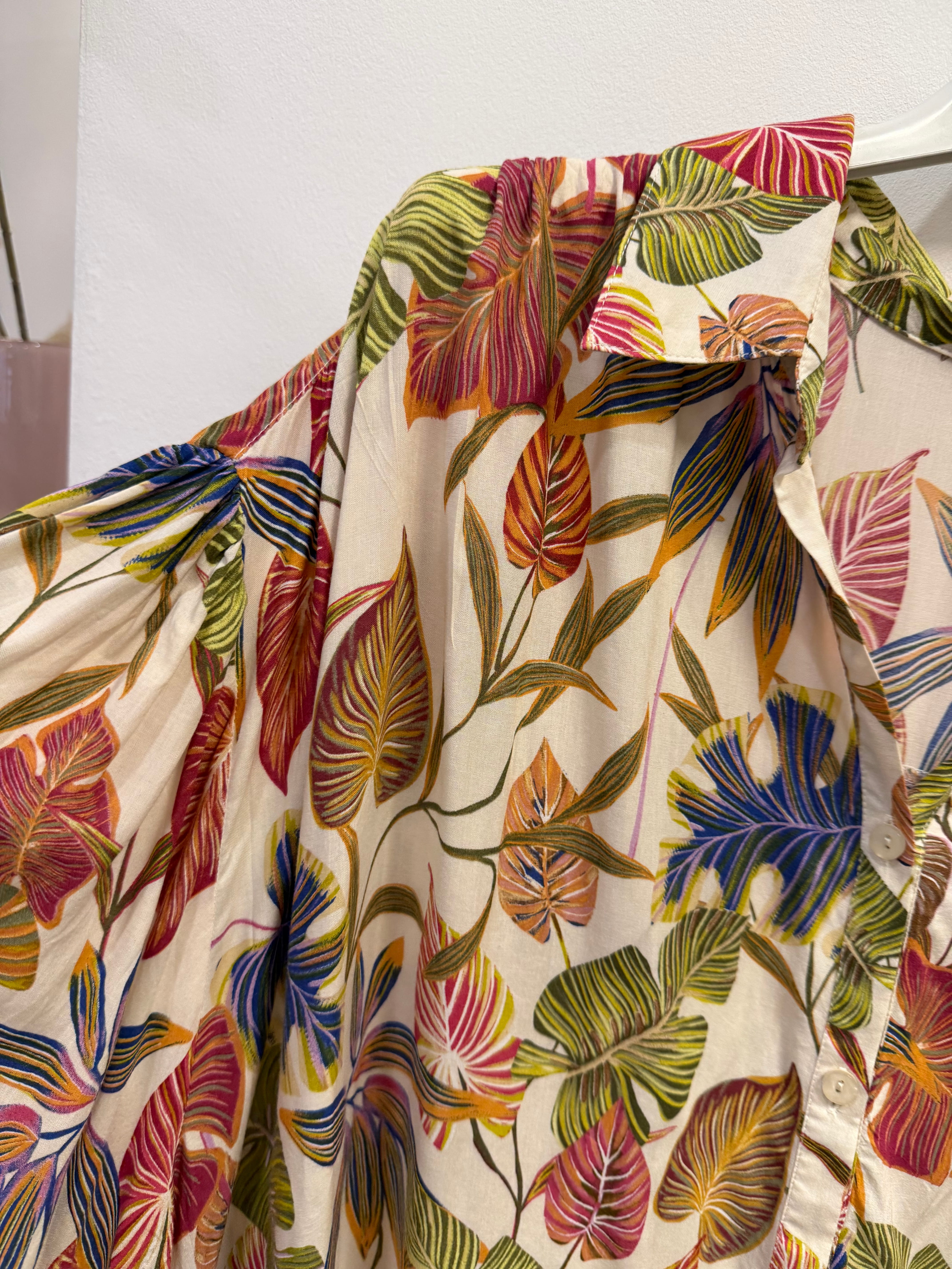 Koszula Maddalenaz bawełną i wiskozą kolorowa w kwiaty/liście, marszczone rękawy