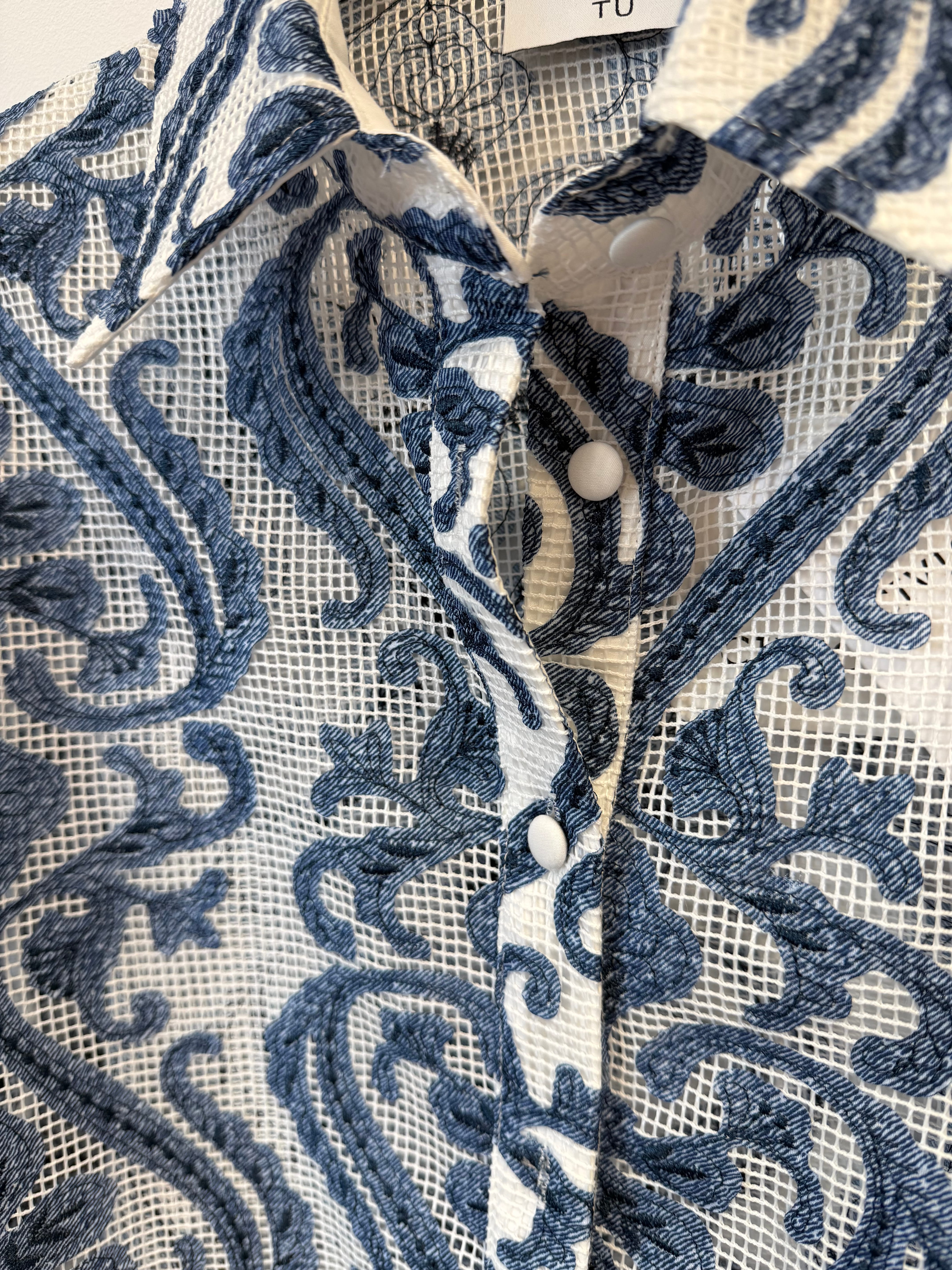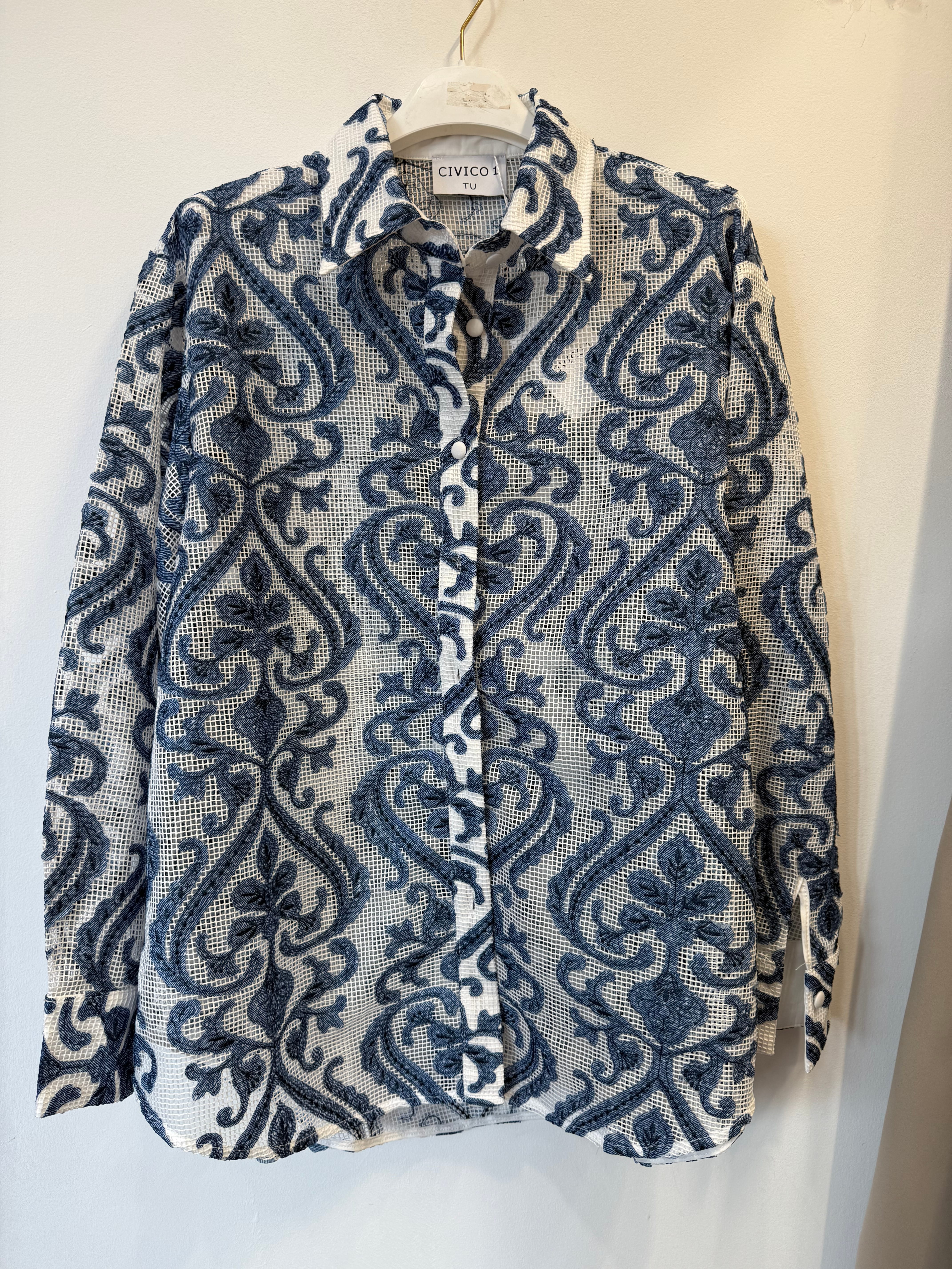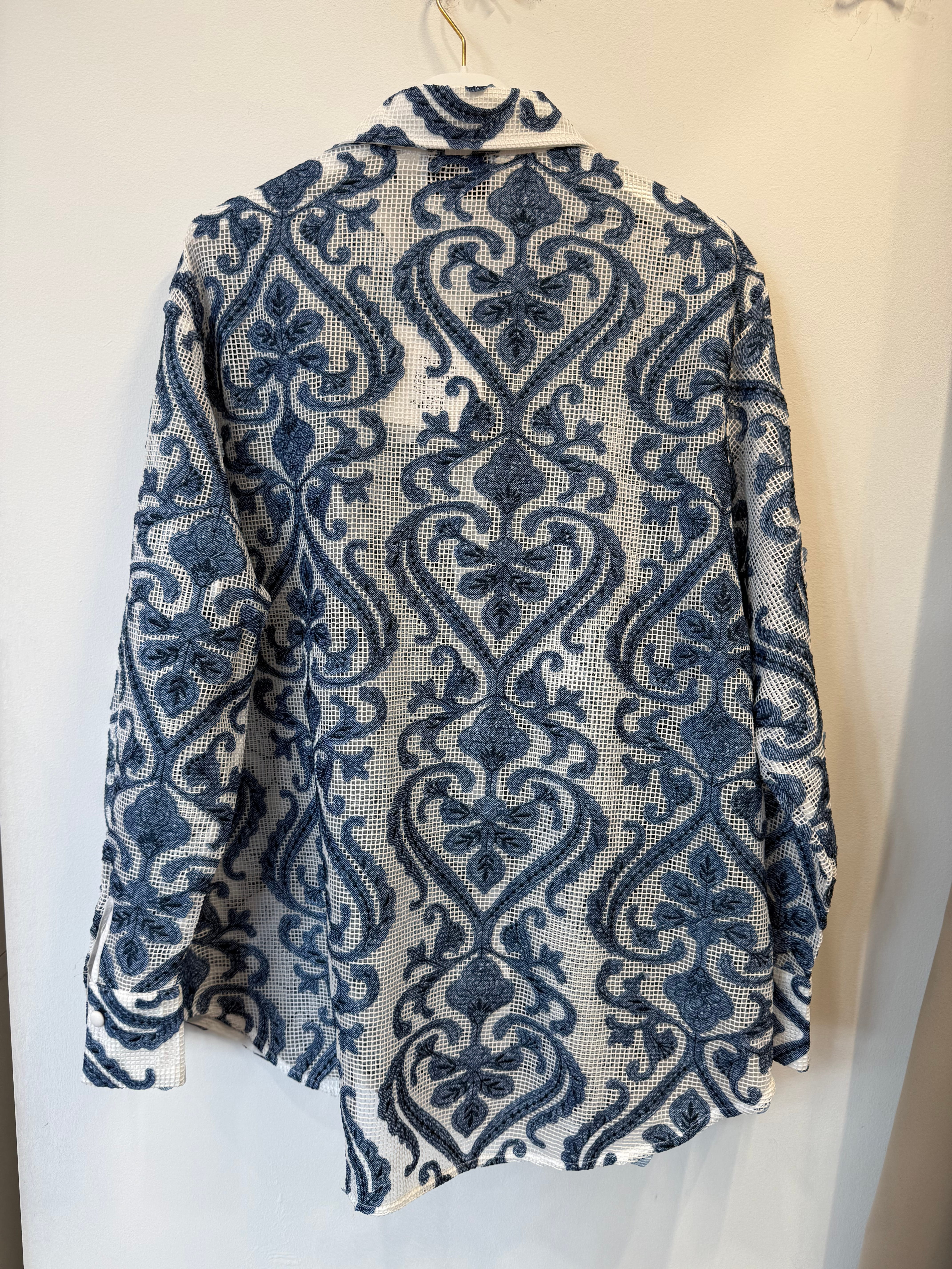 Koszula Polignano a Mare narzutka w mozaikę biało-niebieska rozpinana