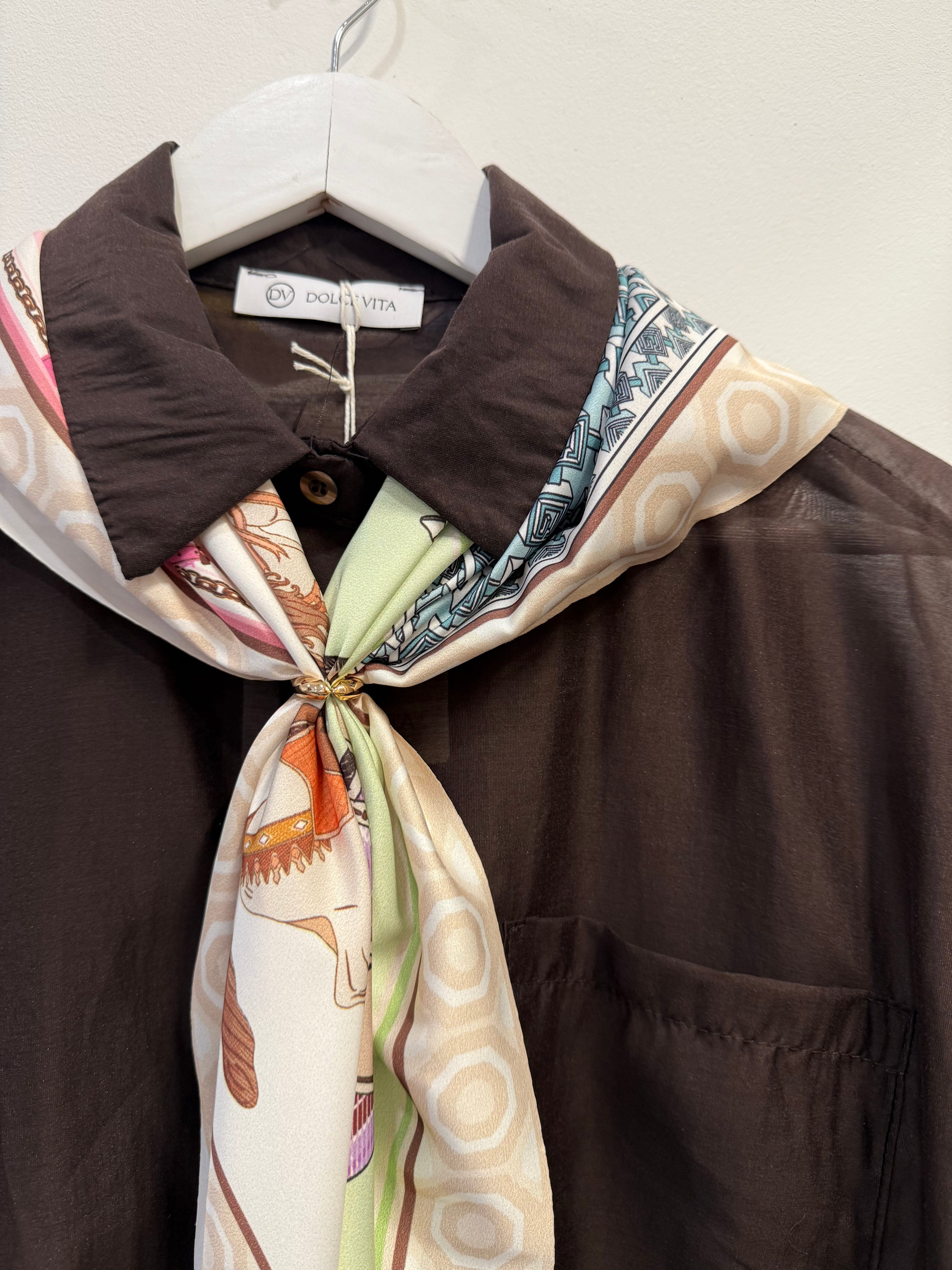 Koszula Sonia tencel brązowa koszulowa z apaszką