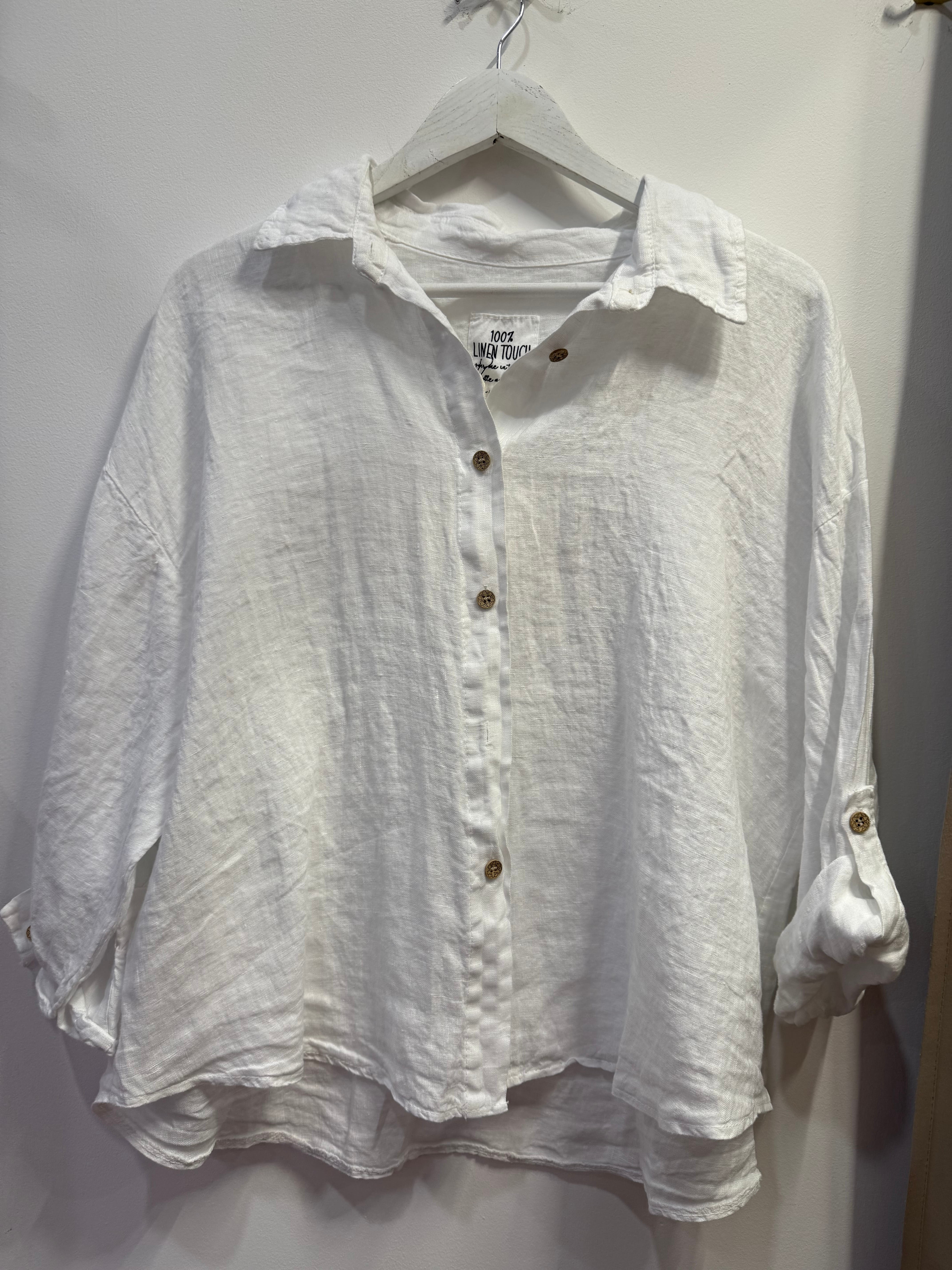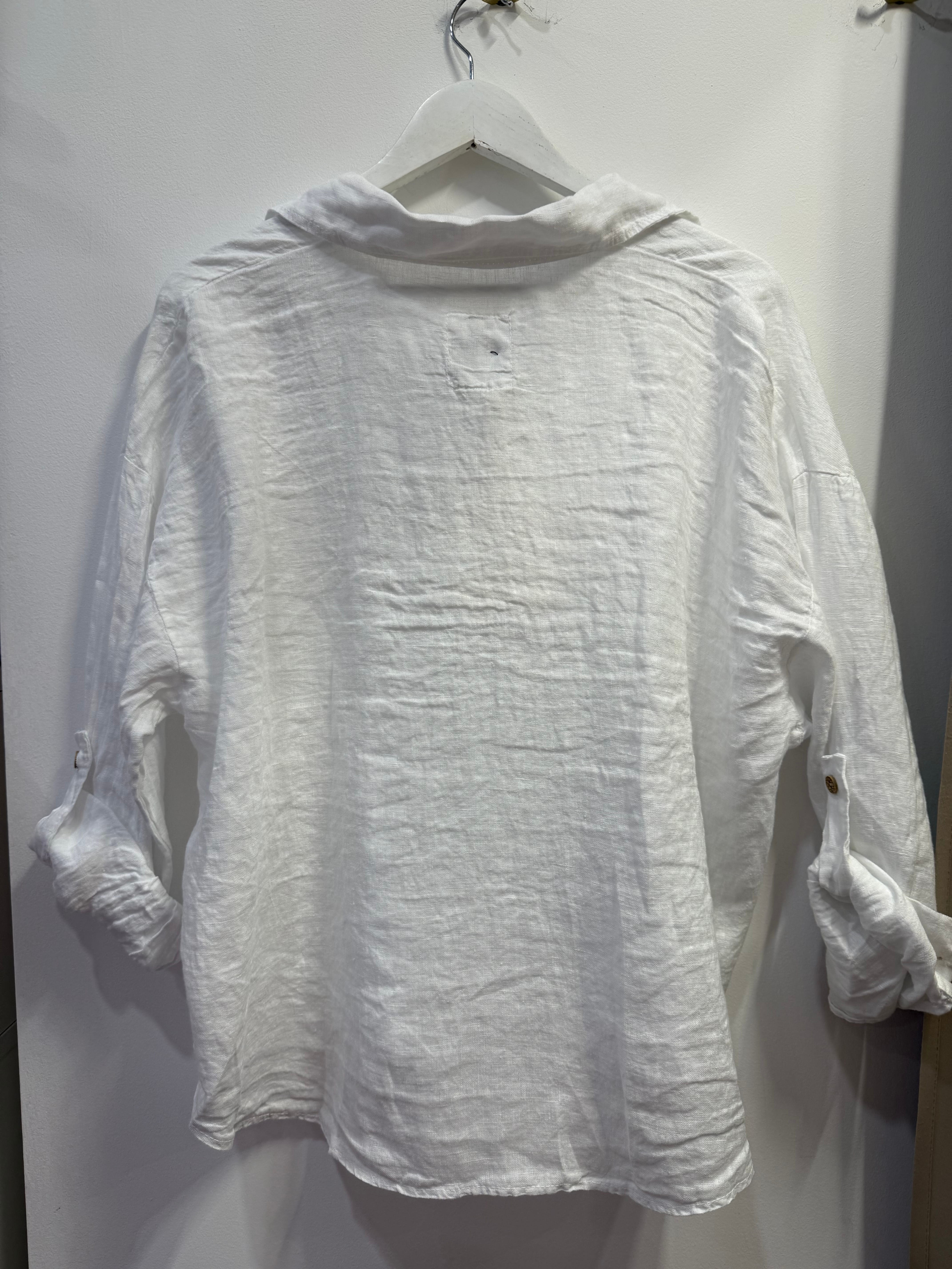 Koszula lniana Erina biała pudełkowa