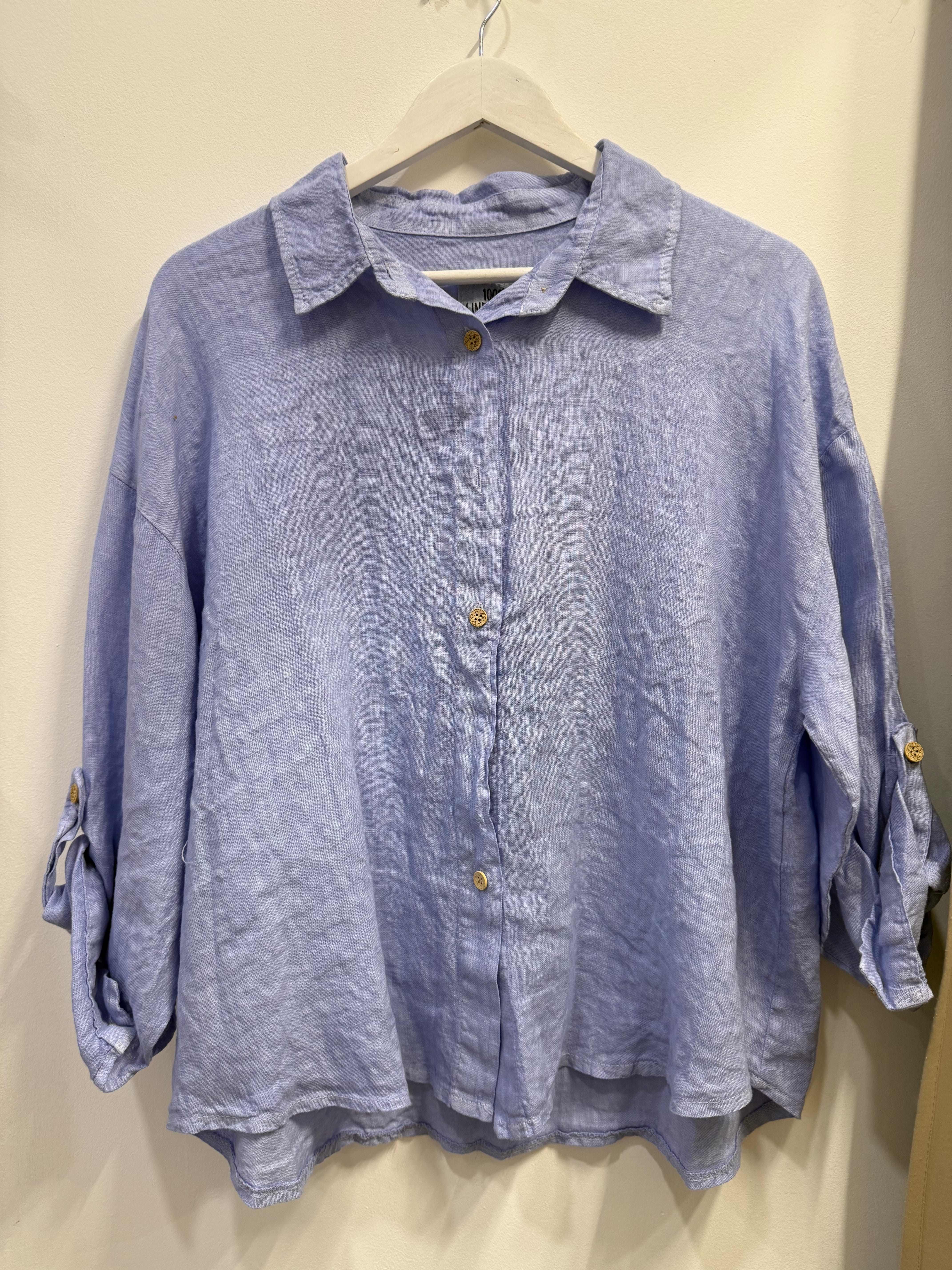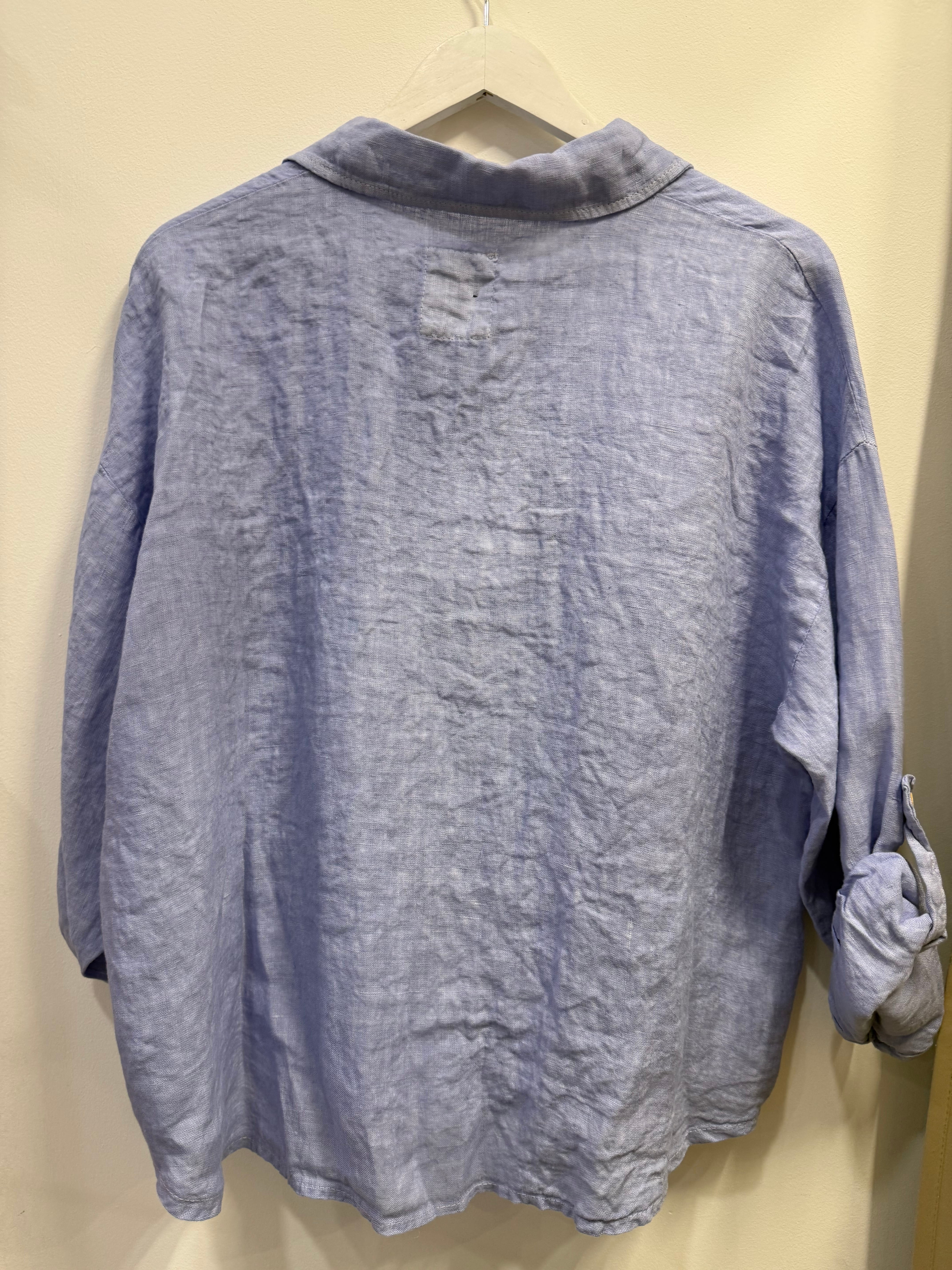 Koszula lniana Erina błękitna / indygo / fiołkowa pudełkowa