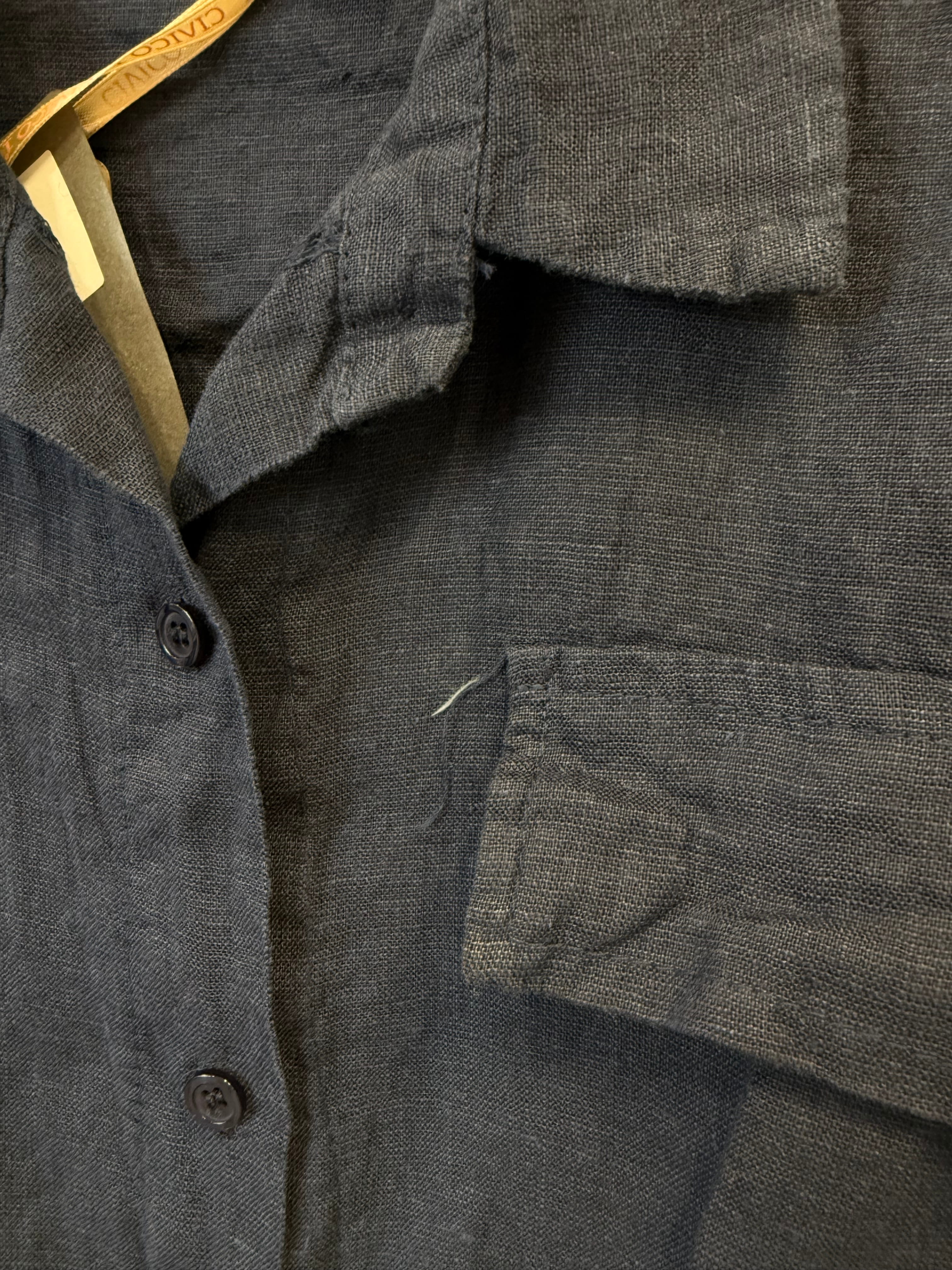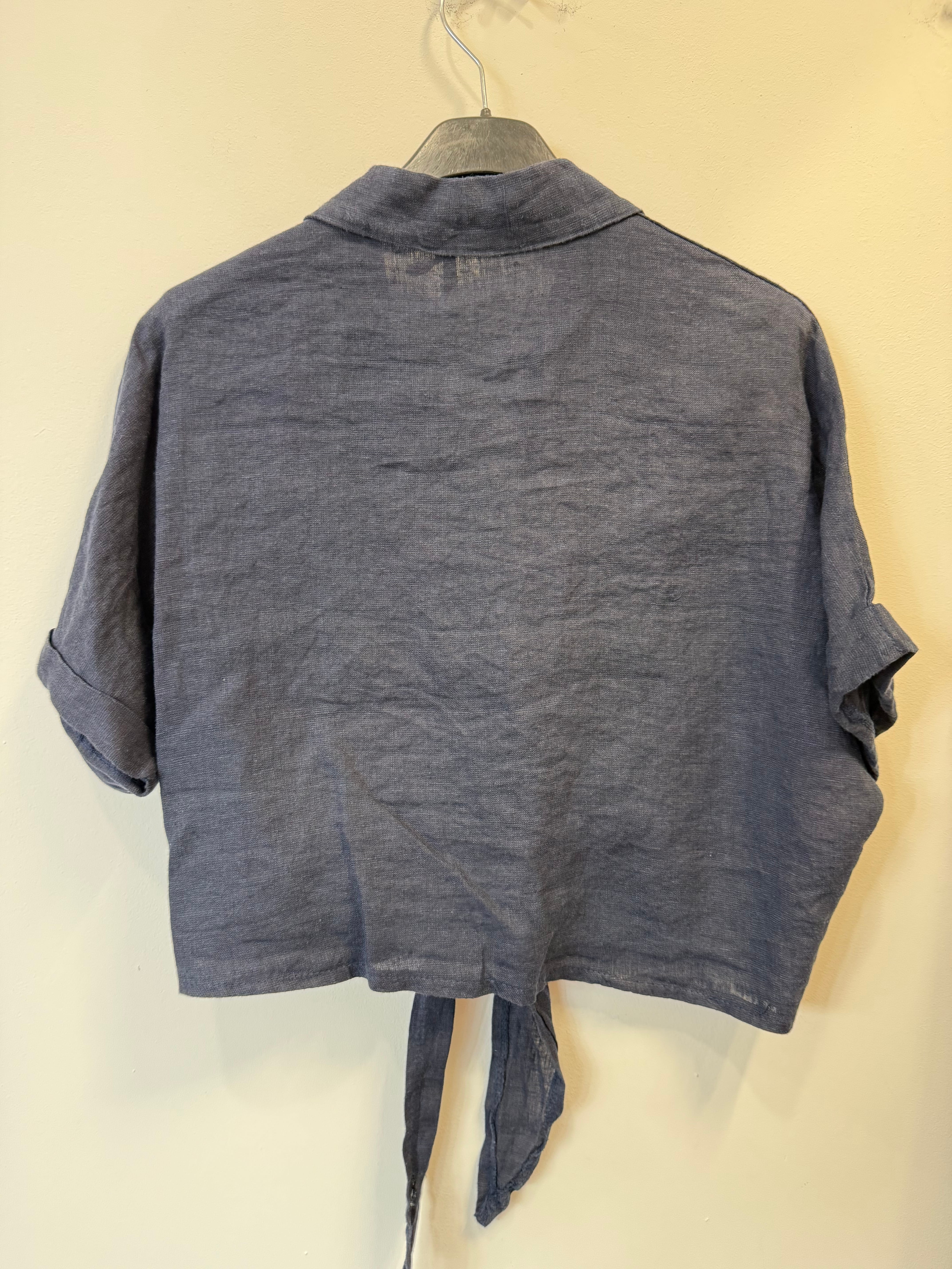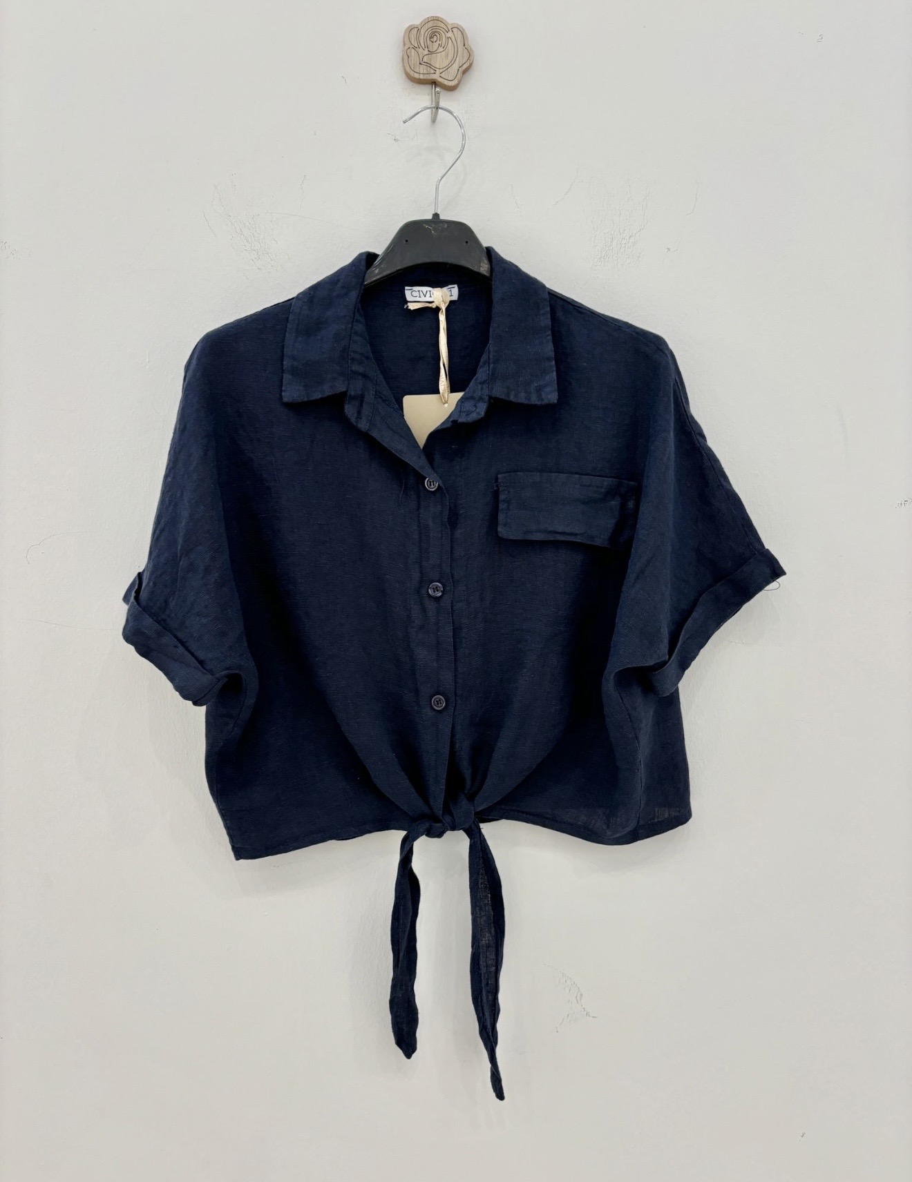 Koszula lniana Marisa granatowa z wiązaniem, krótka