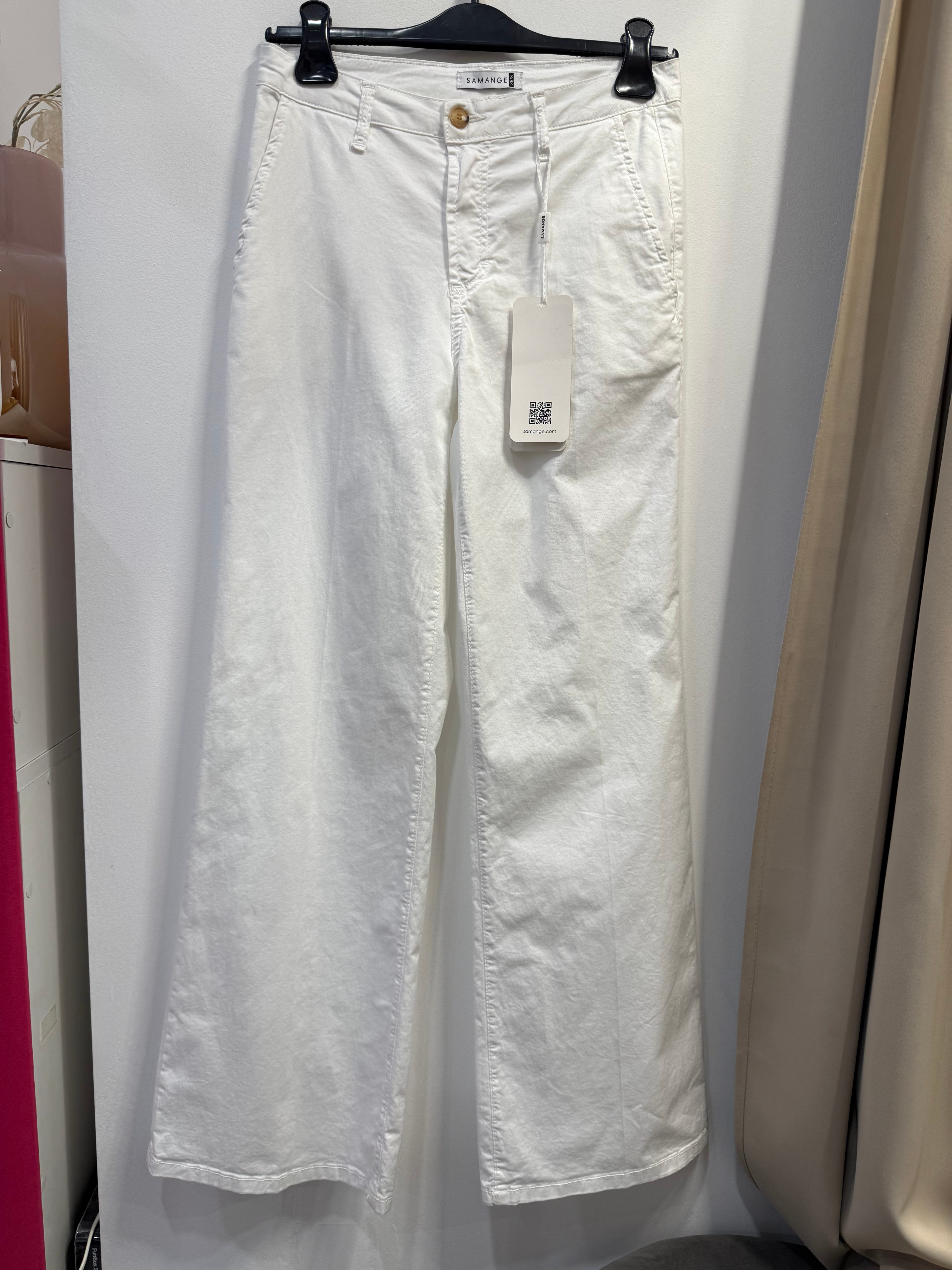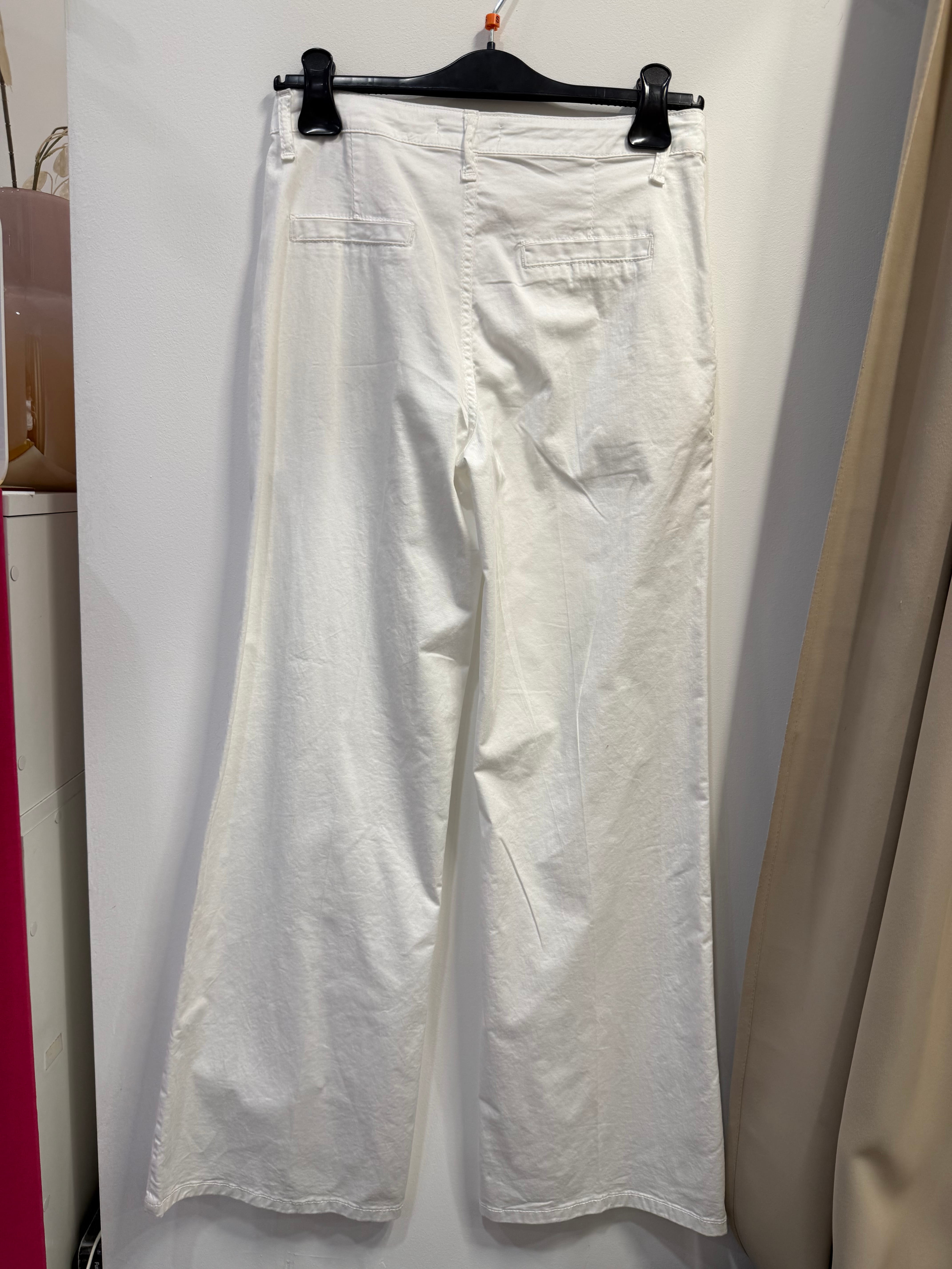 Spodnie Concetta białe, bawełniane, materiałowe a la cieńszy jeans, wide leg, proste nogawki w kant