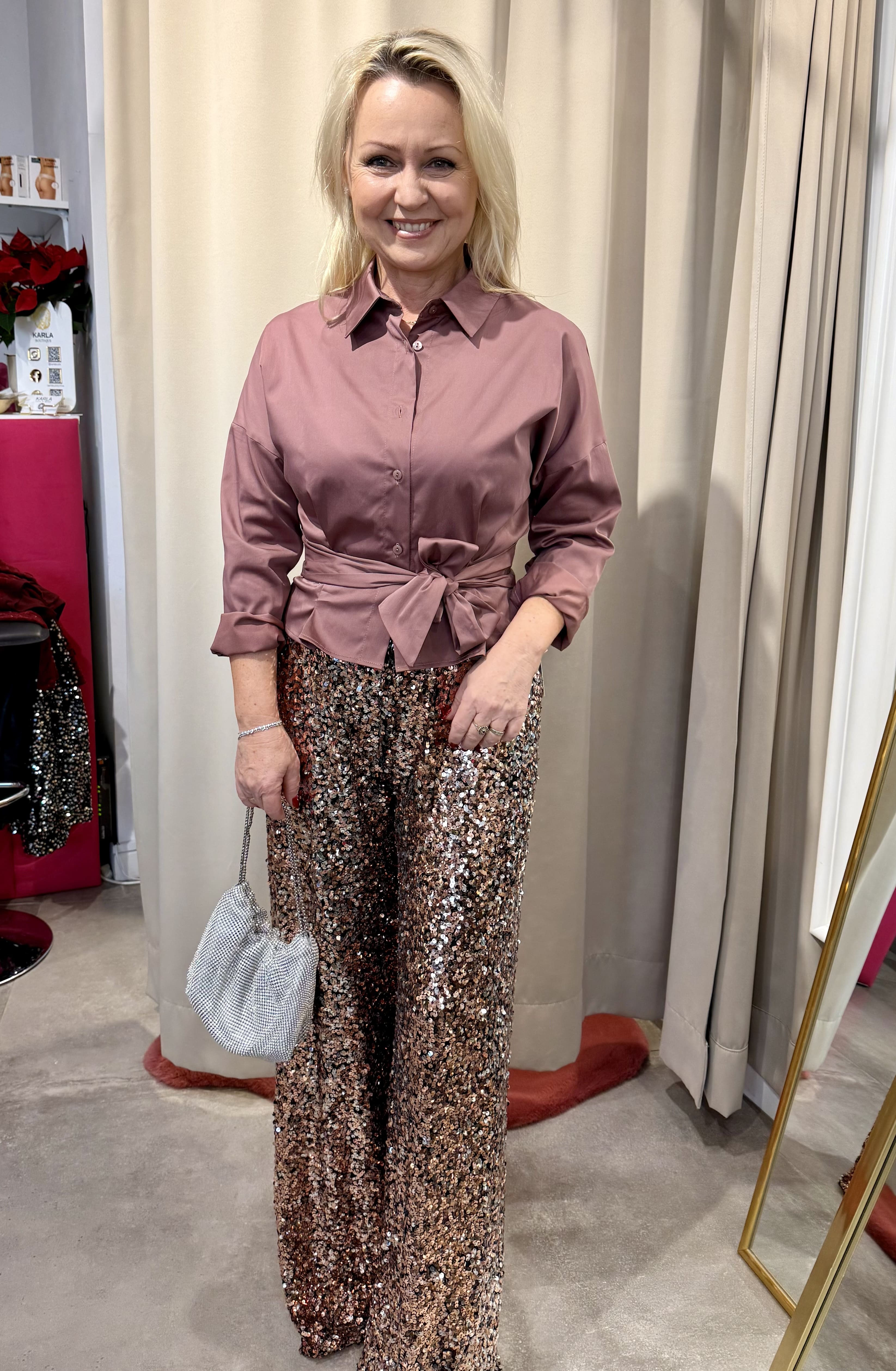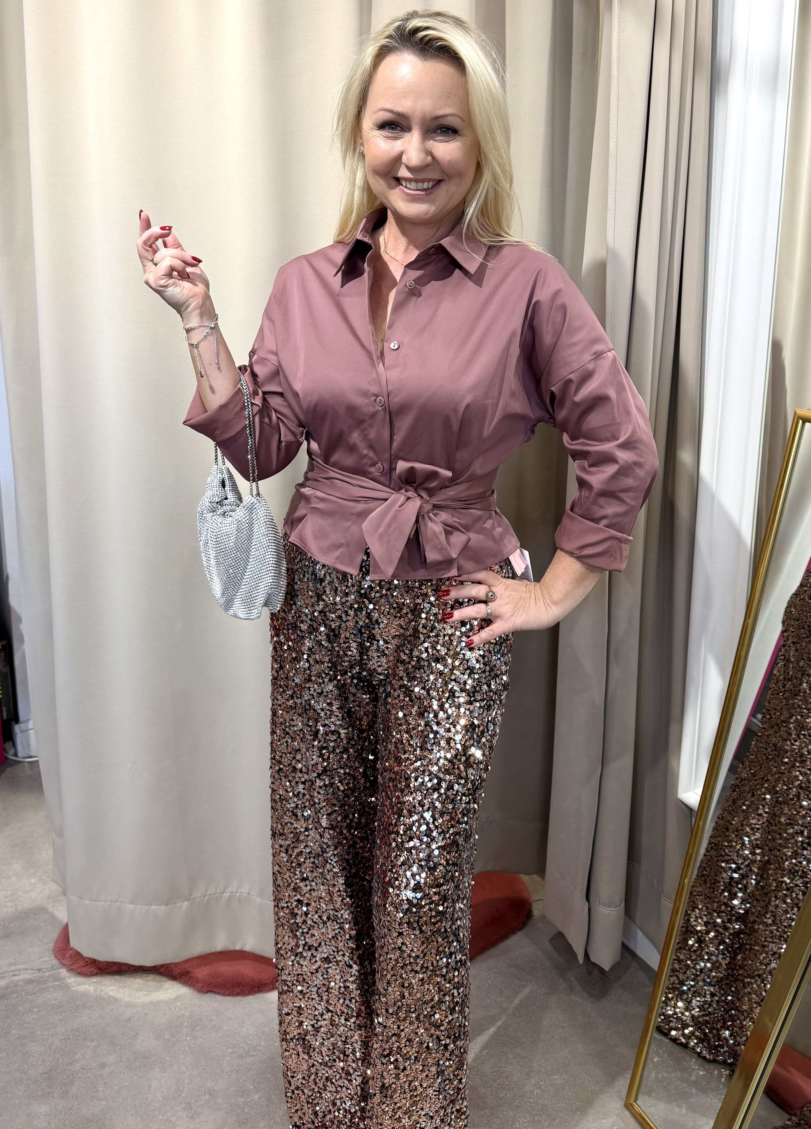 - dziś cekiny nosimy nawet do puchatych, moherowych swetrów, a także białej/różowej koszuli w wersji eleganckiej, wówczas nawet Świątecznej.