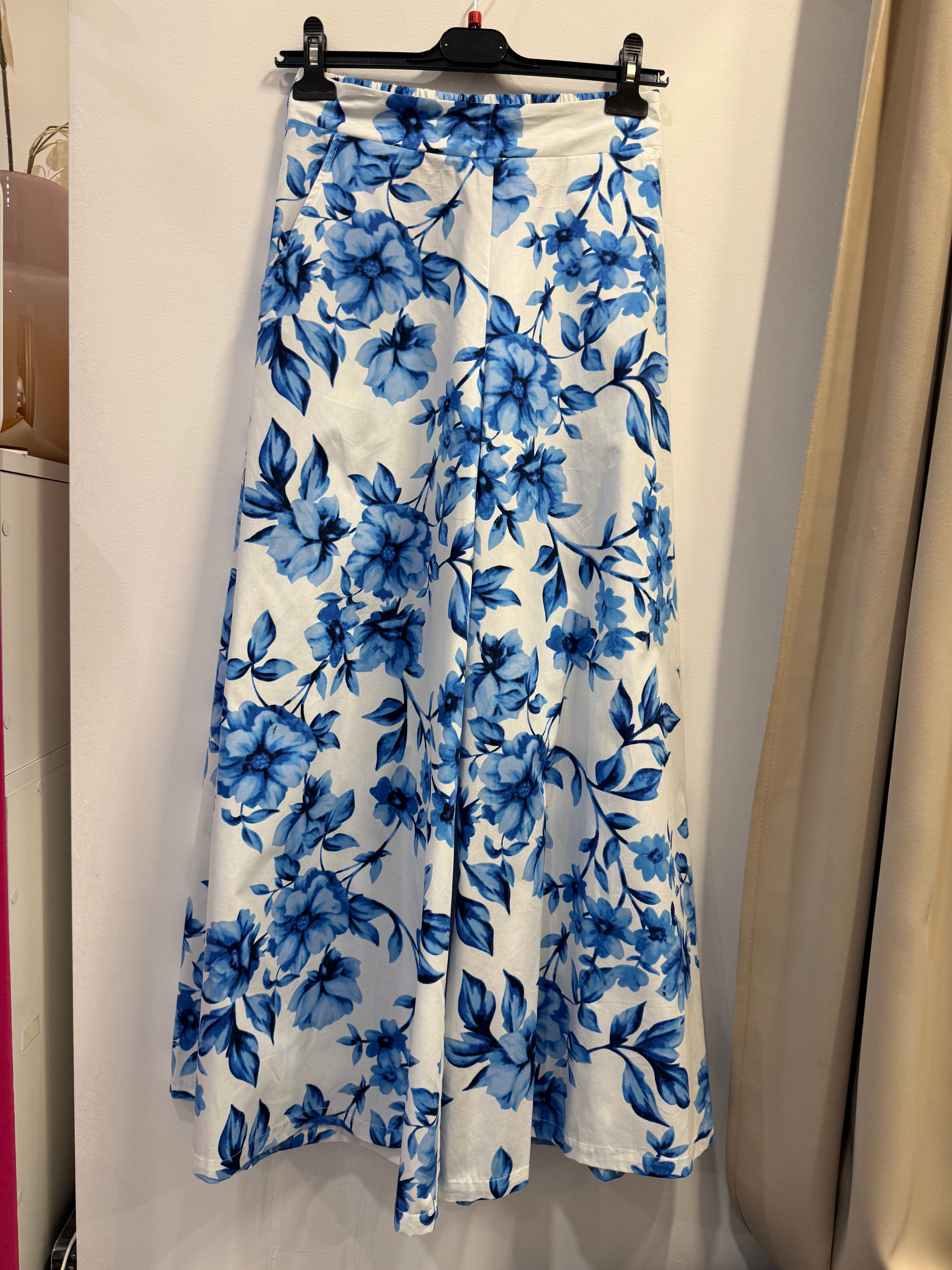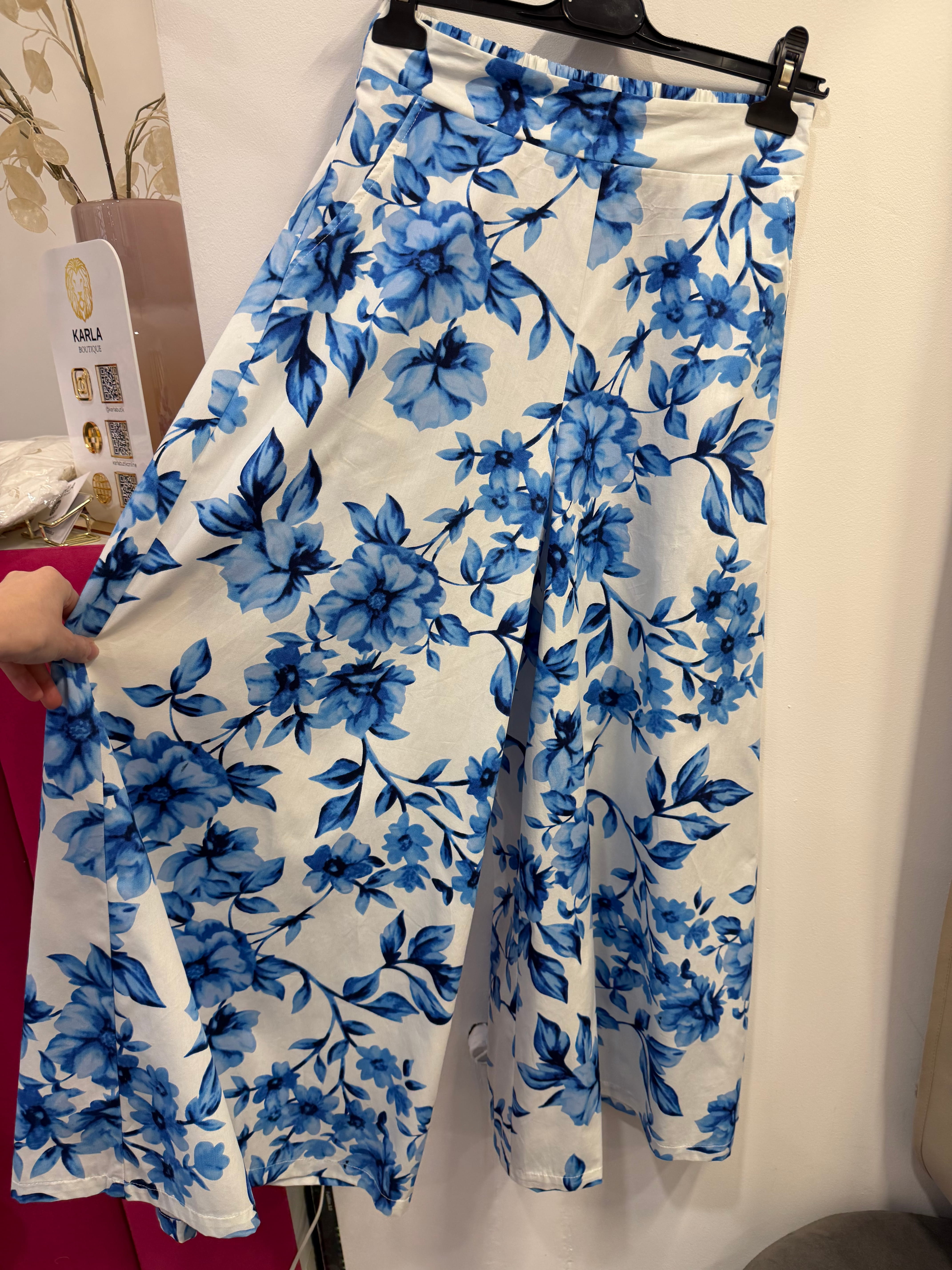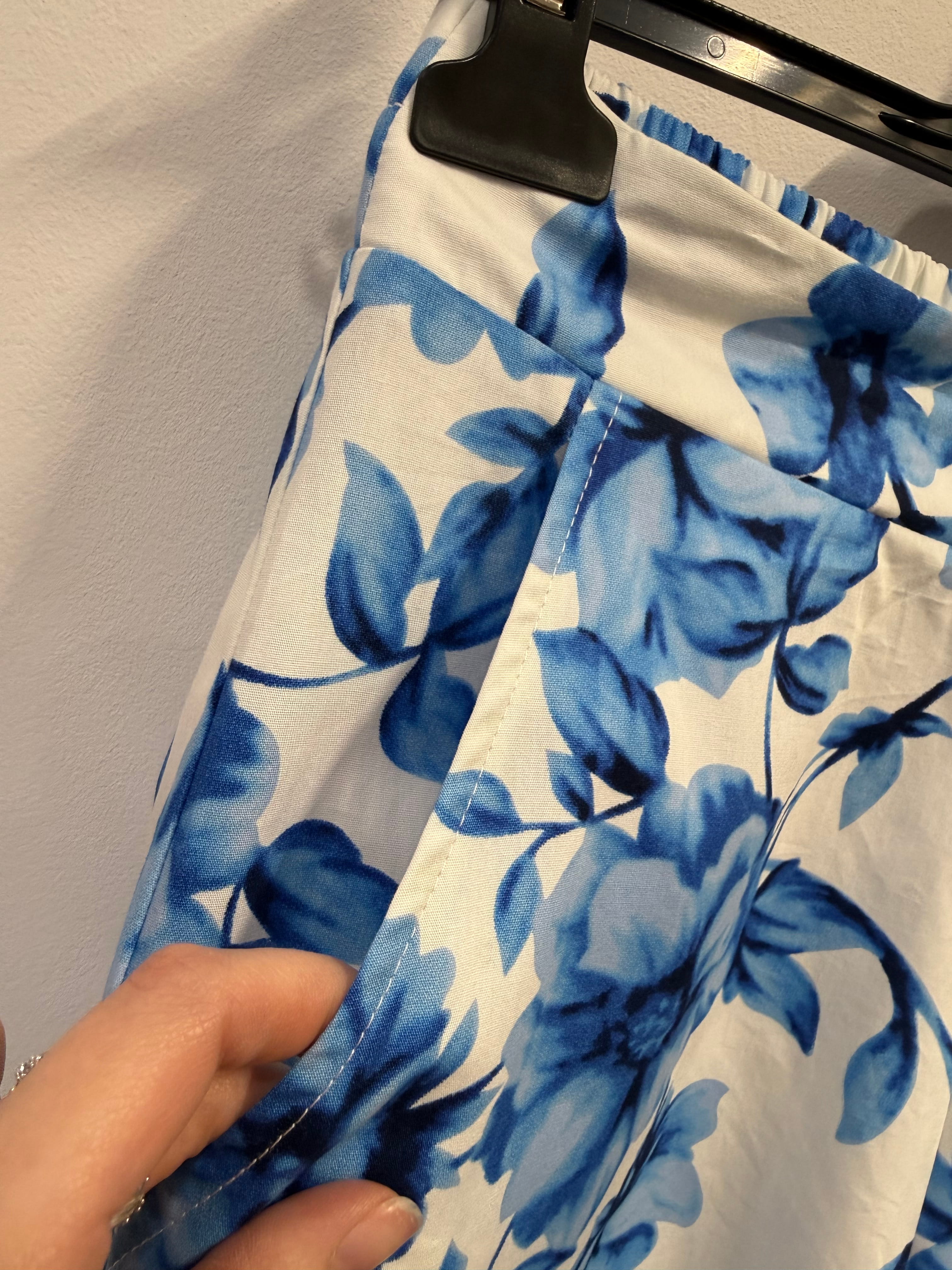 Spodnie biało-niebieskie w duże kwiaty, bawełniane