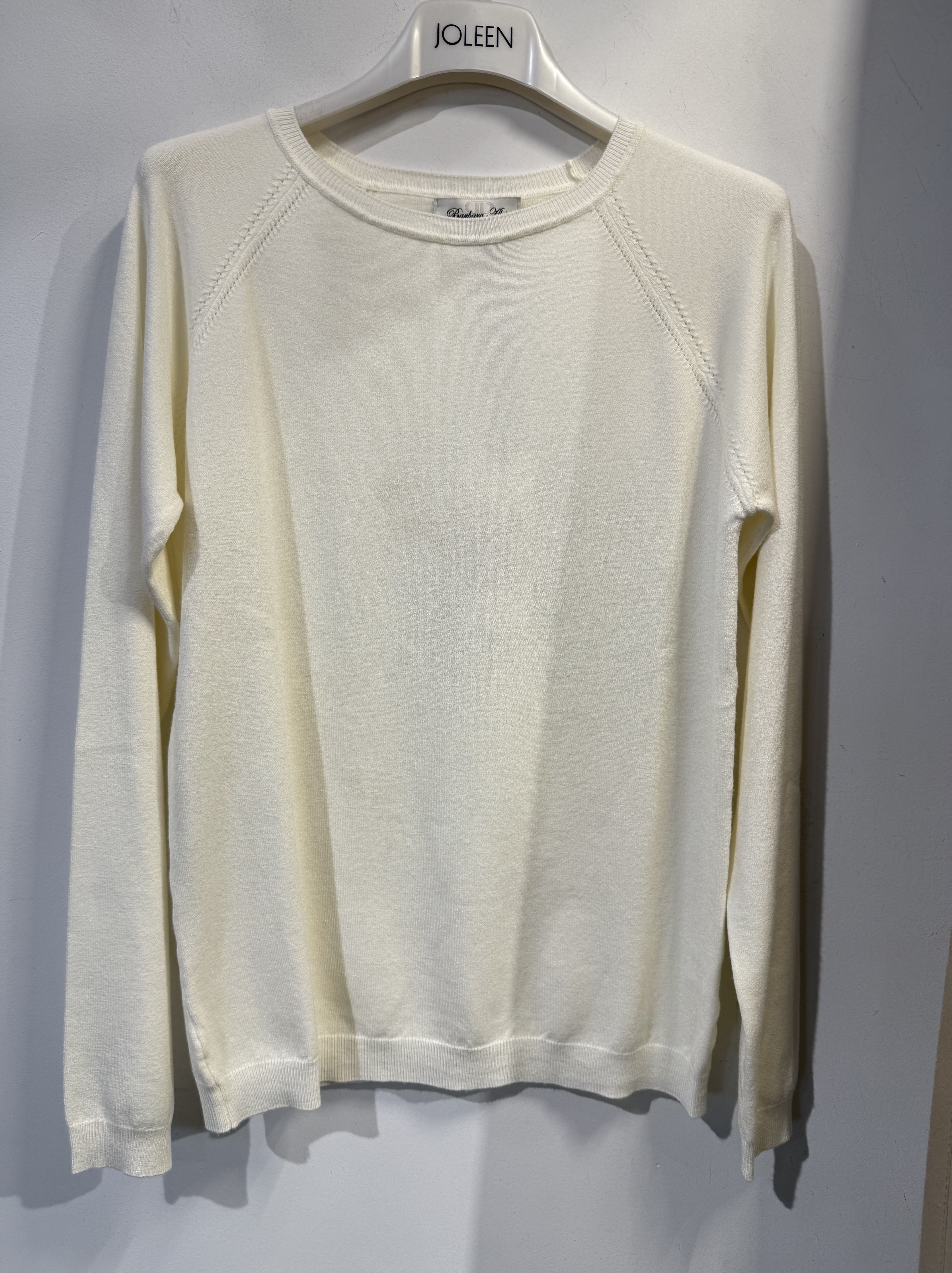 Sweter Classsy Cream Barbara Alvisi kremowy z wiskozą, dekolt w łodkę