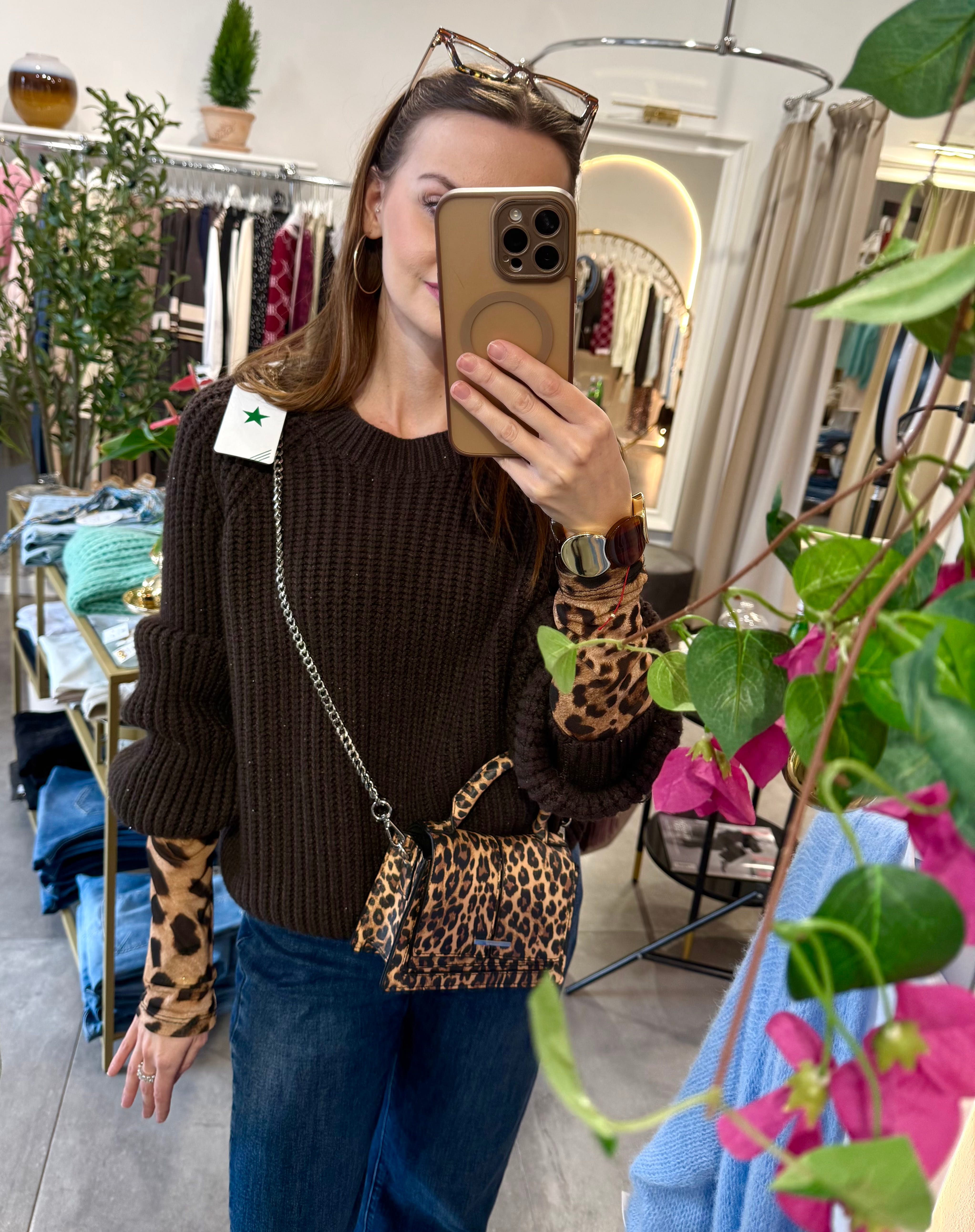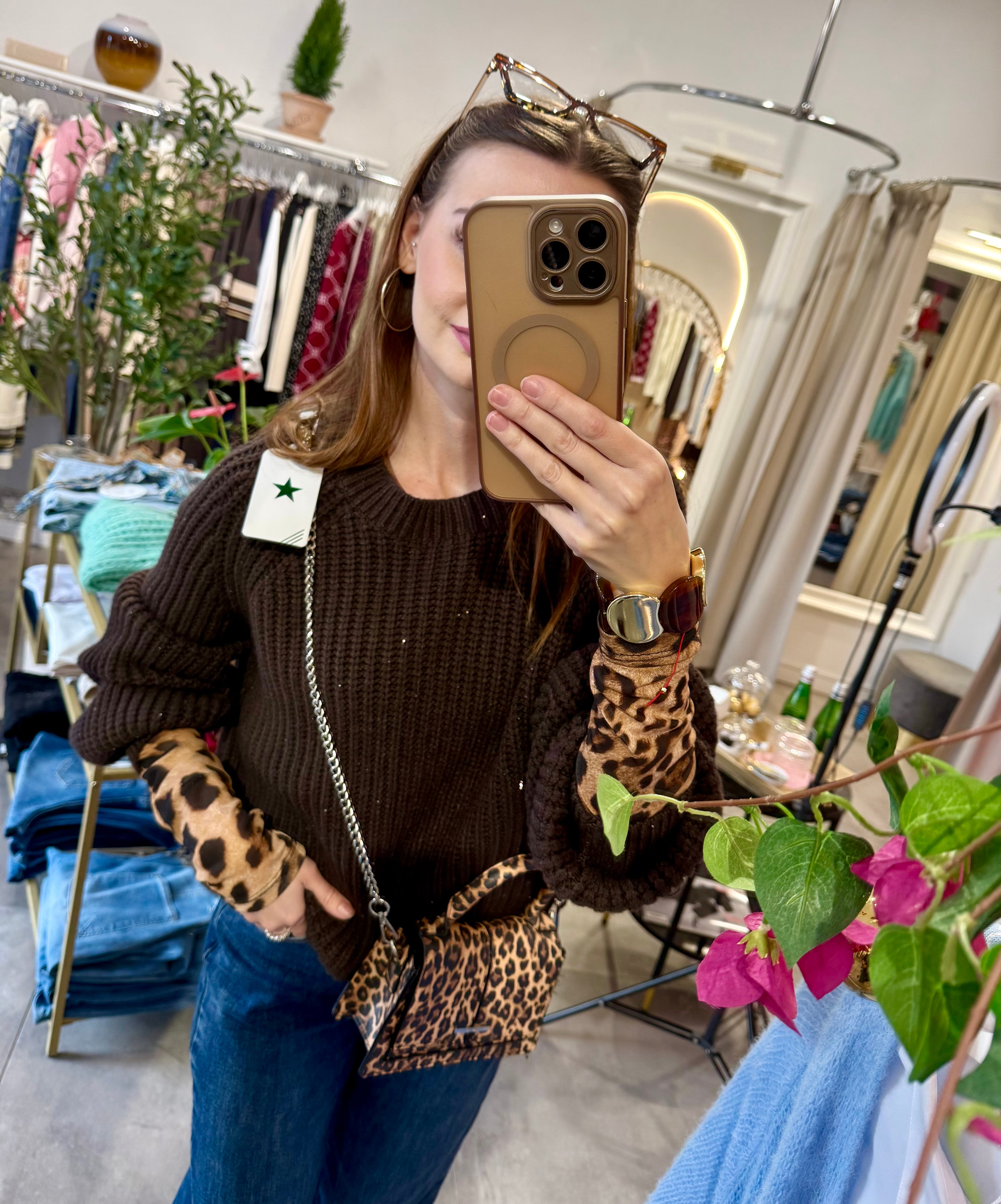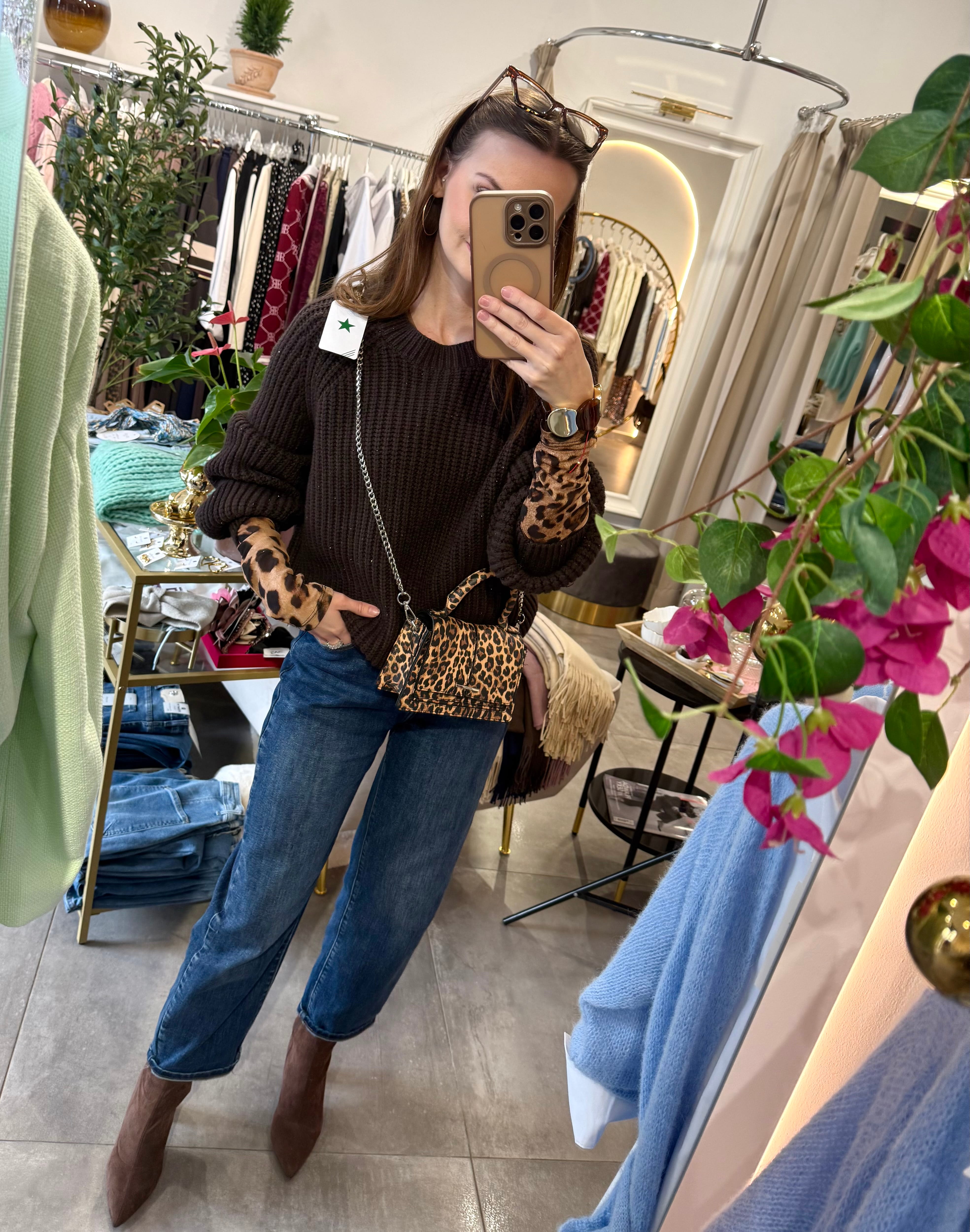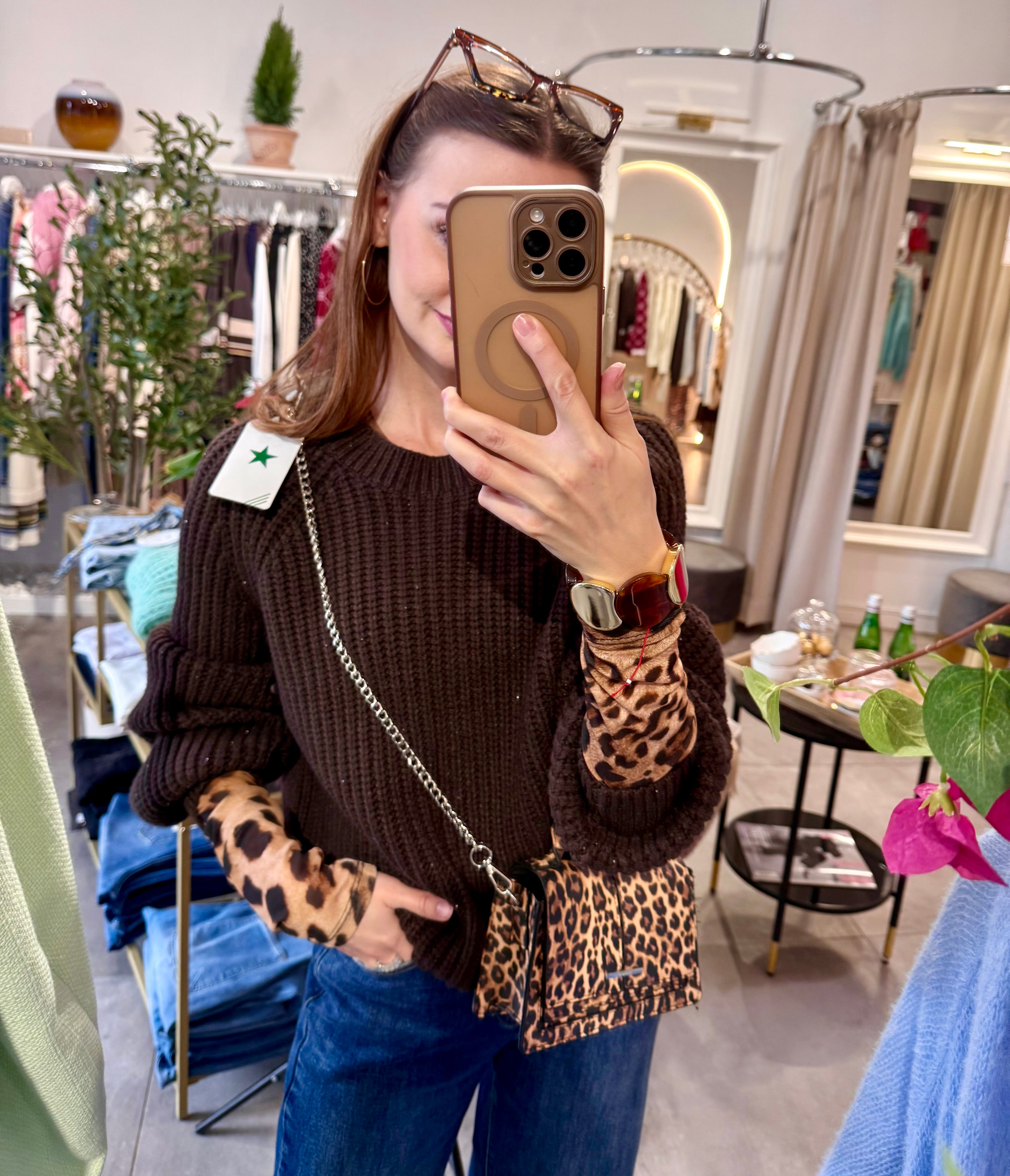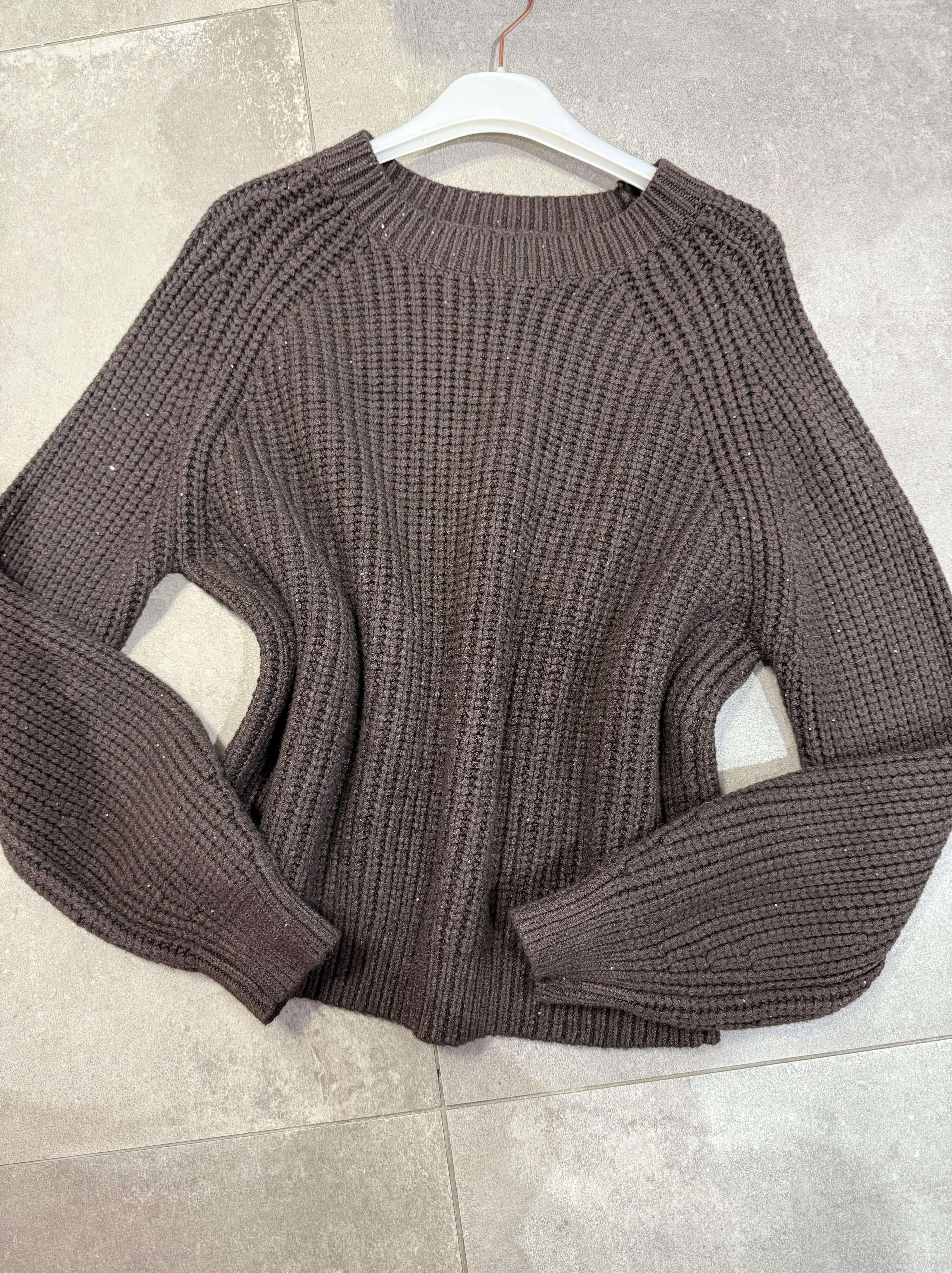 Sweter Nuvola brązowy z drobnymi cekinami, gorzka czekolada