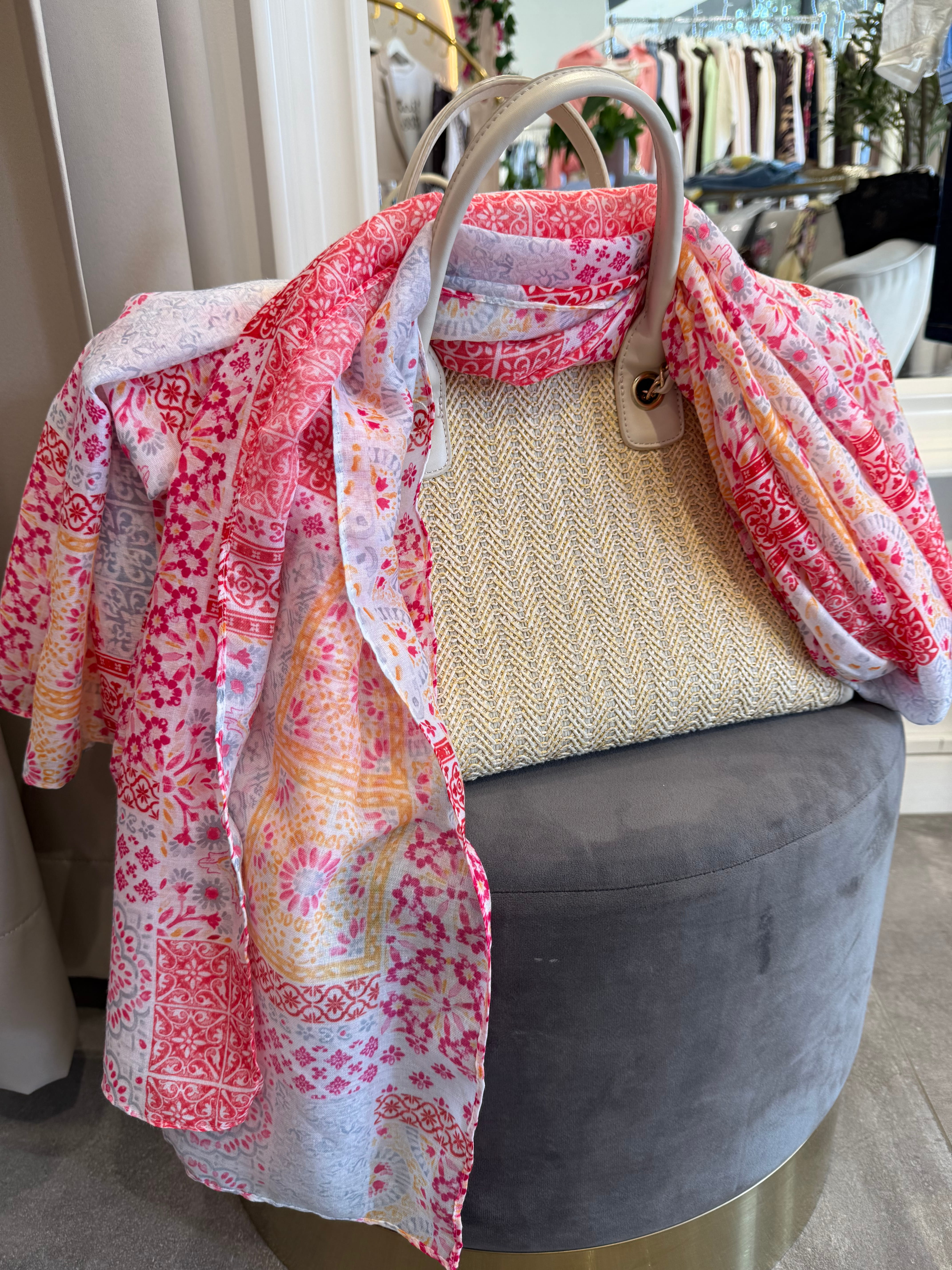 - zastosowanie: klasycznie, jako szal, ale też dekoracja torebki/kosza na wakacje, jako narzutka plażowa, a także forma 'ręcznika' w podróży, masz w torebce i w razie W wyciągasz, kiedy chcesz gdzieś 'przysiąść' :)