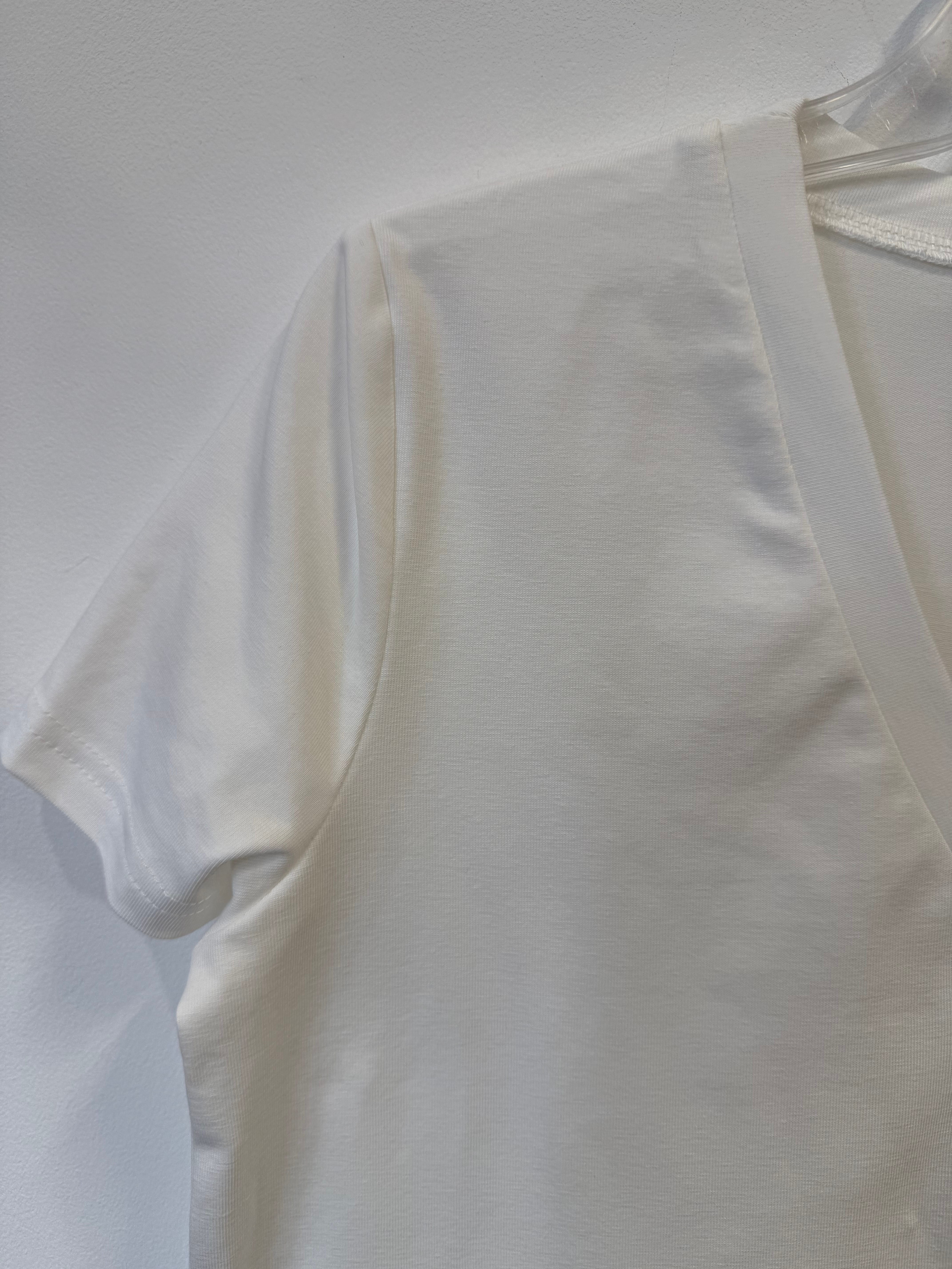T-shirt BASIC krem/kokos w szpic, klasyczny, bawełniany