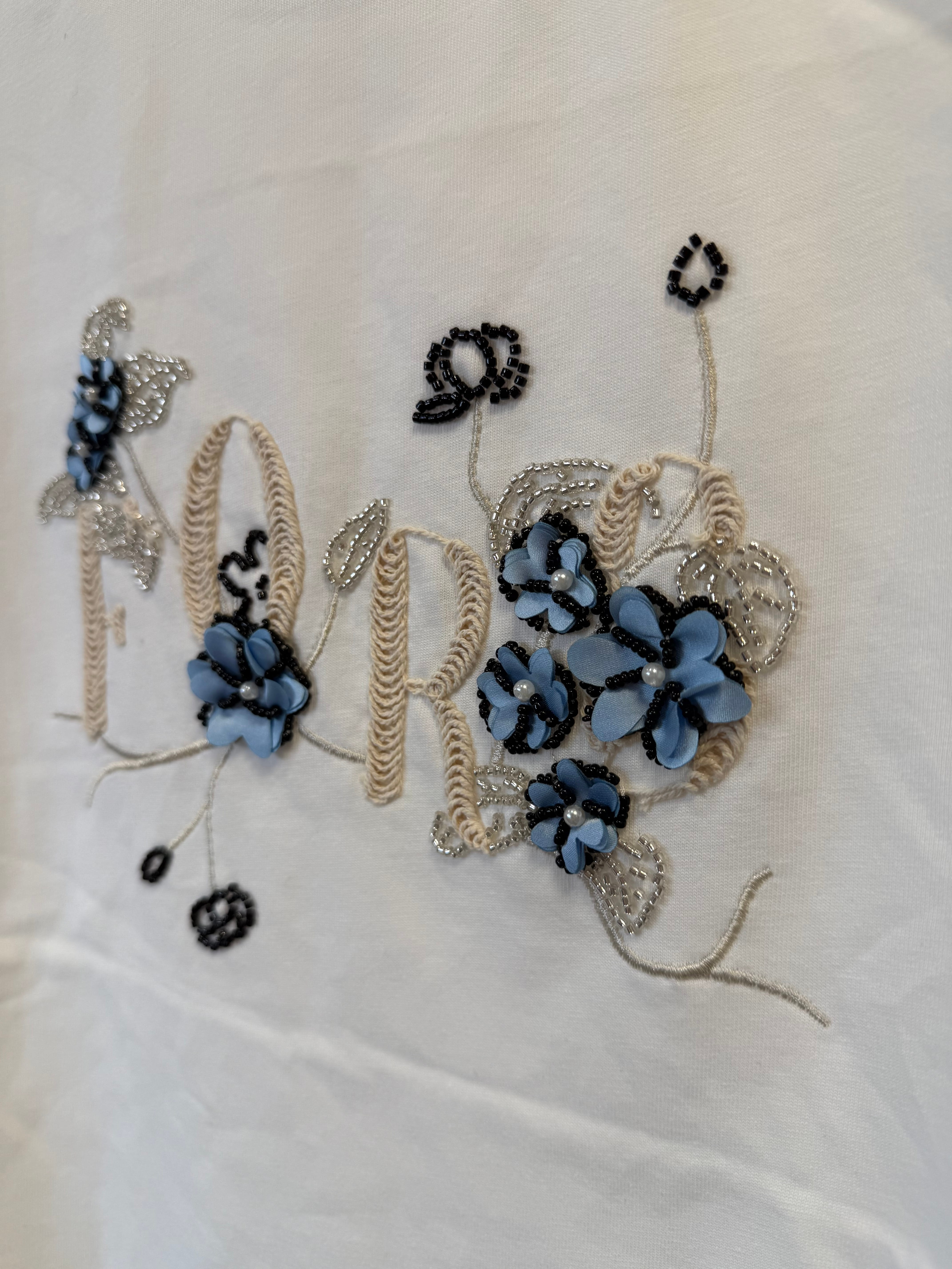T-shirt Fiori biały z wyszywaną aplikacją, kwiatkami