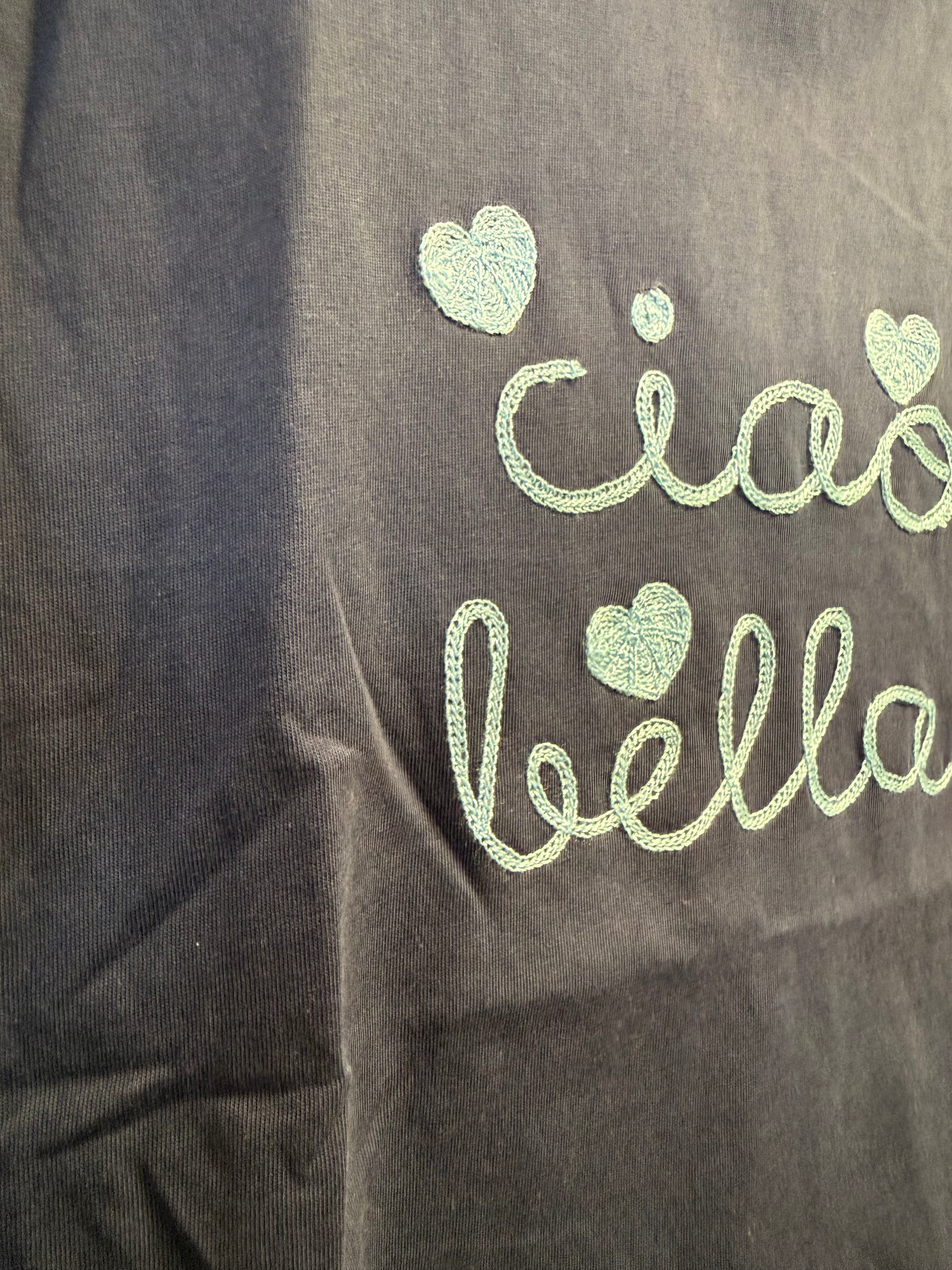 T-shirt granatowy Ciao Bella wyszywany napis, bawełniany