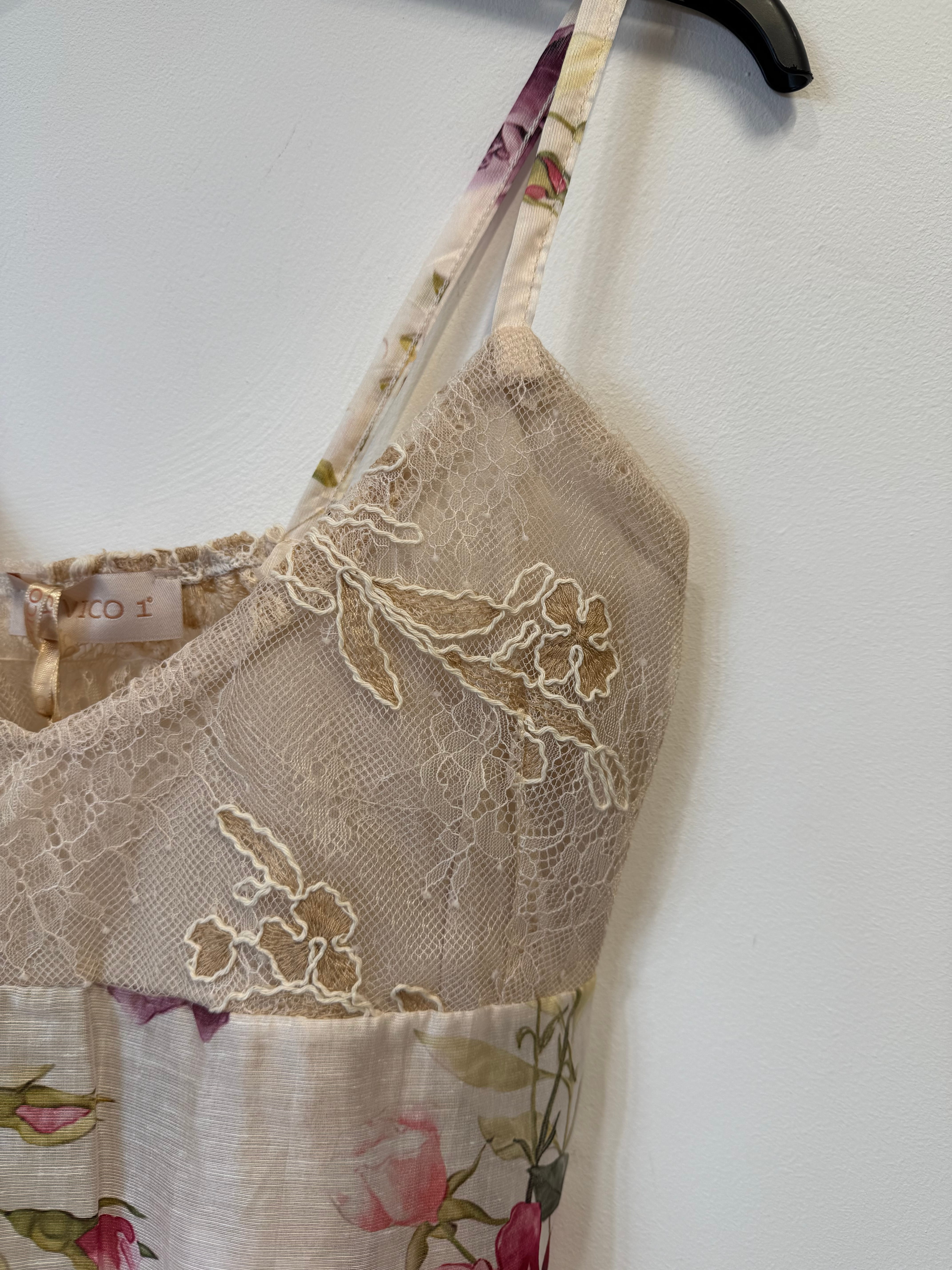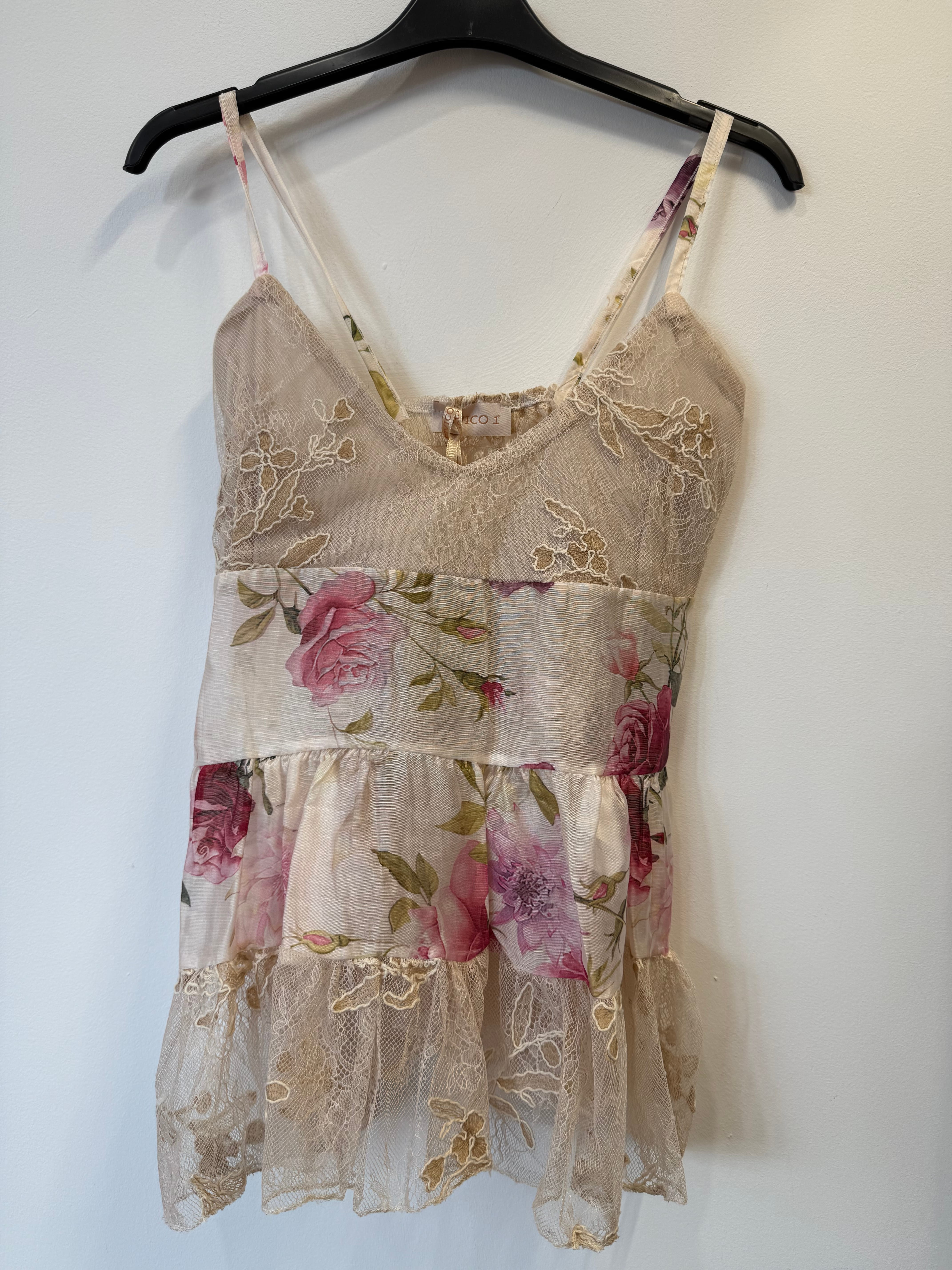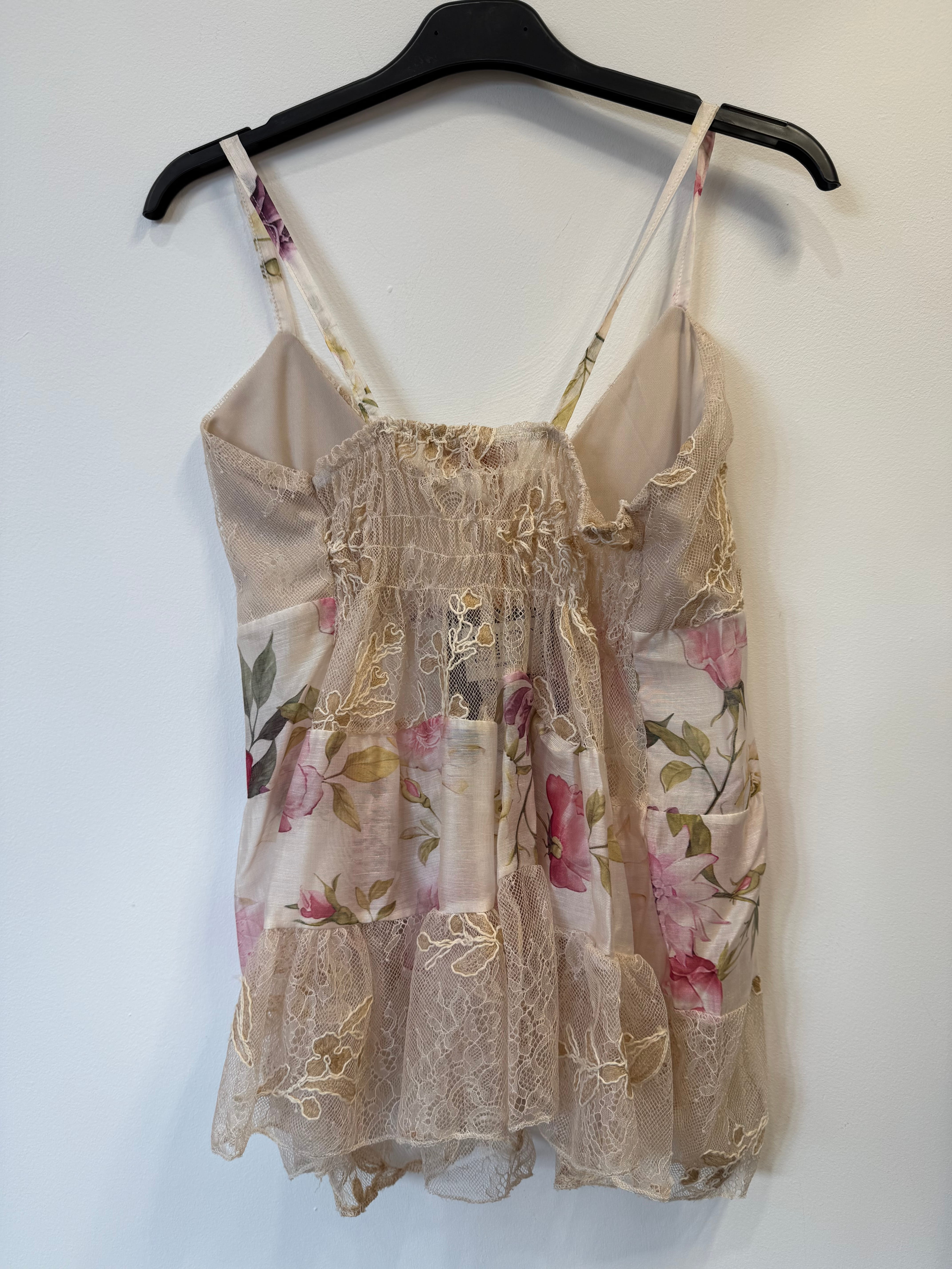 Top Fiorella z lyocellem i lnem, na ramiączkach w kwiaty z koronkowymi wstawkami