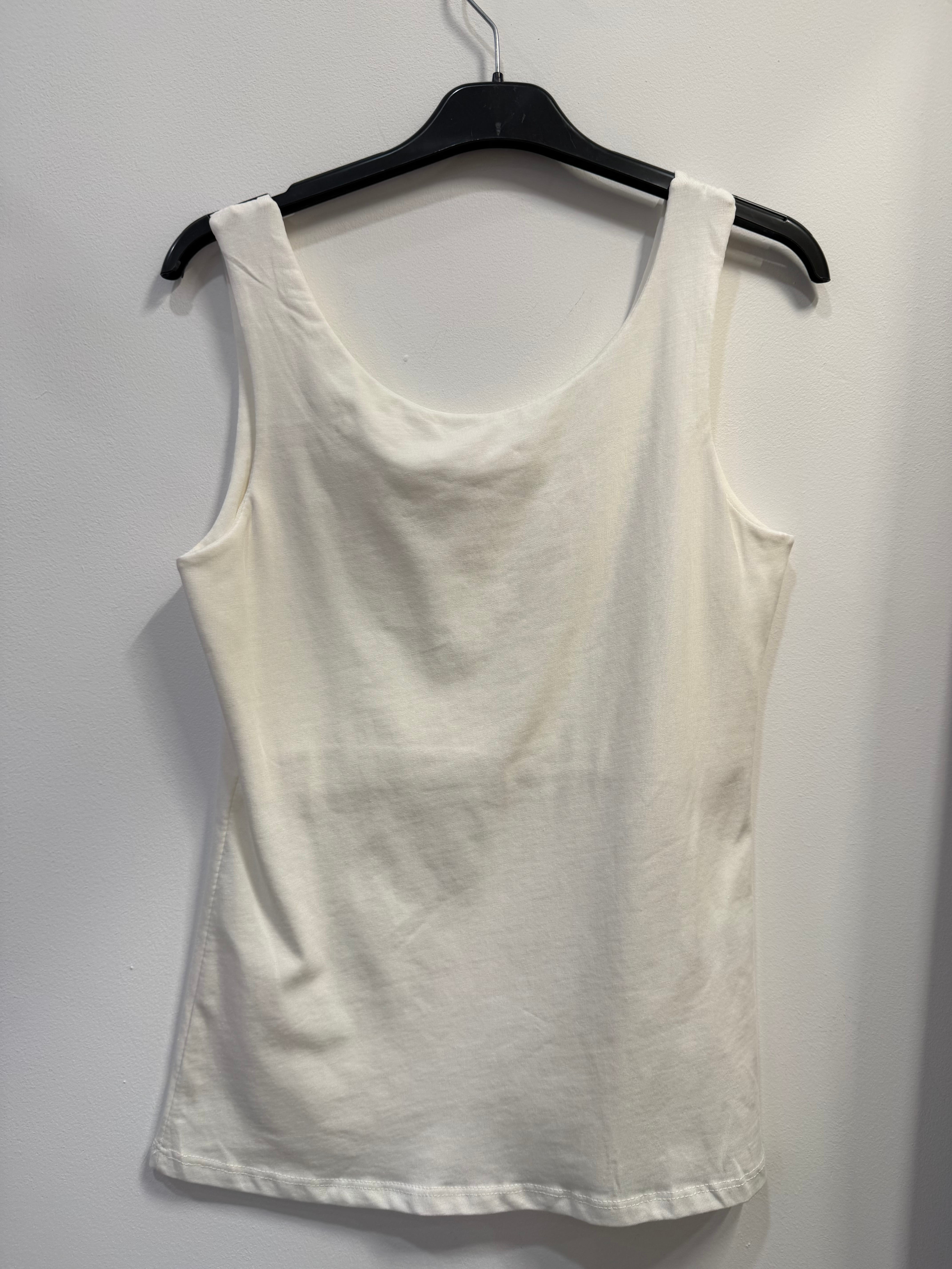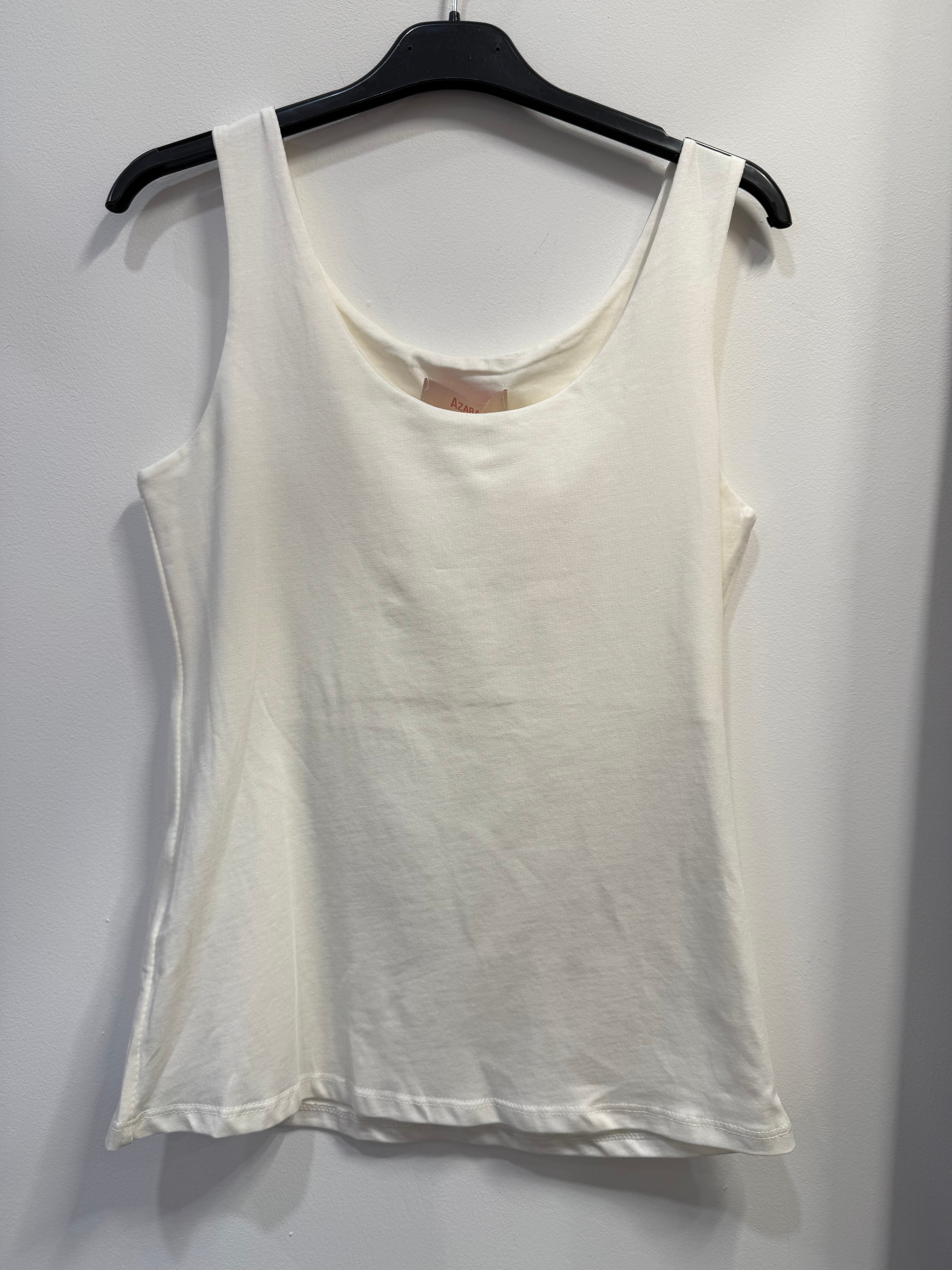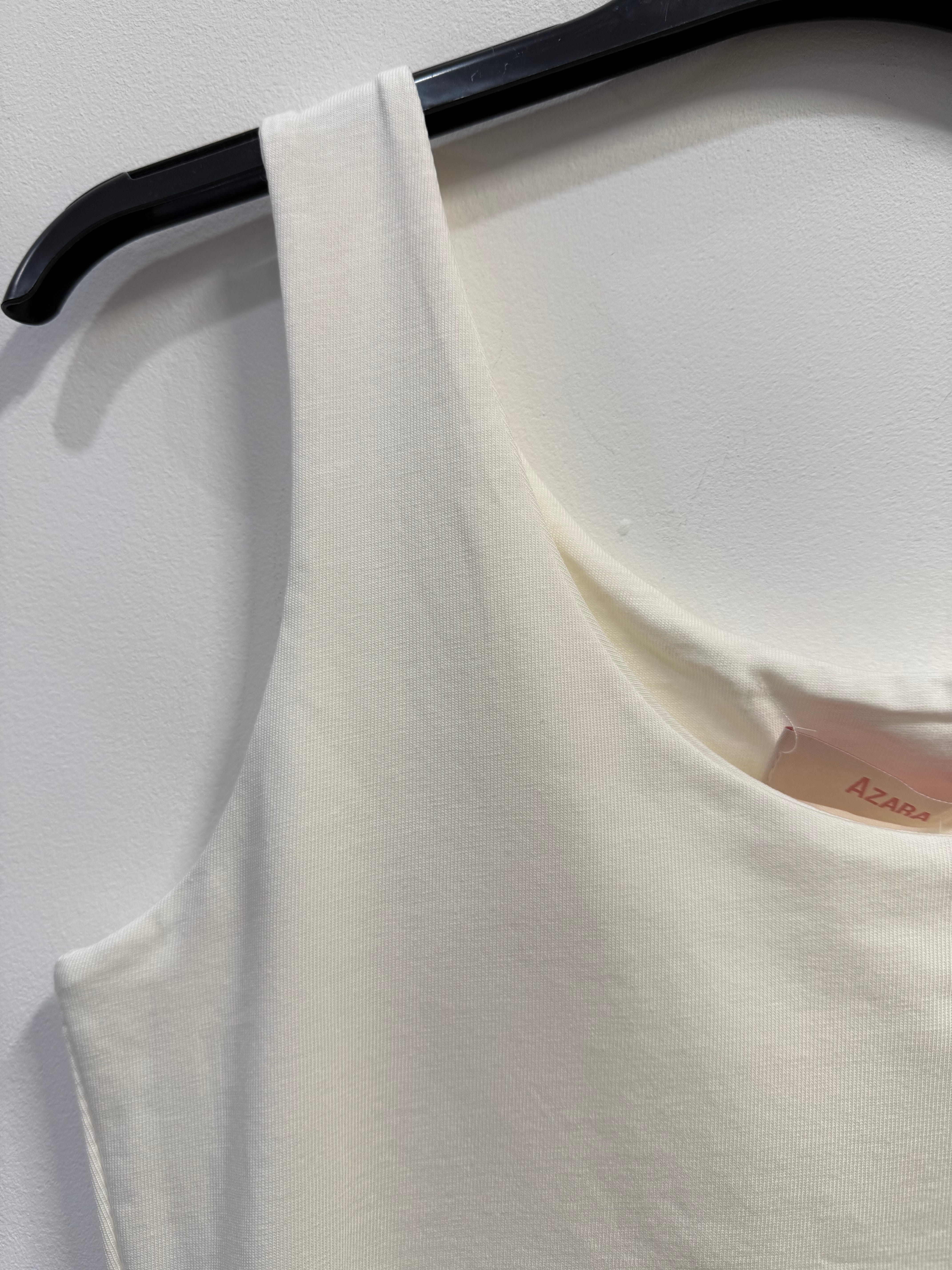 Top Gina na ramiączkach / szelkach biały/ecru bawełniany, podwójny materiał na biust, dopasowany