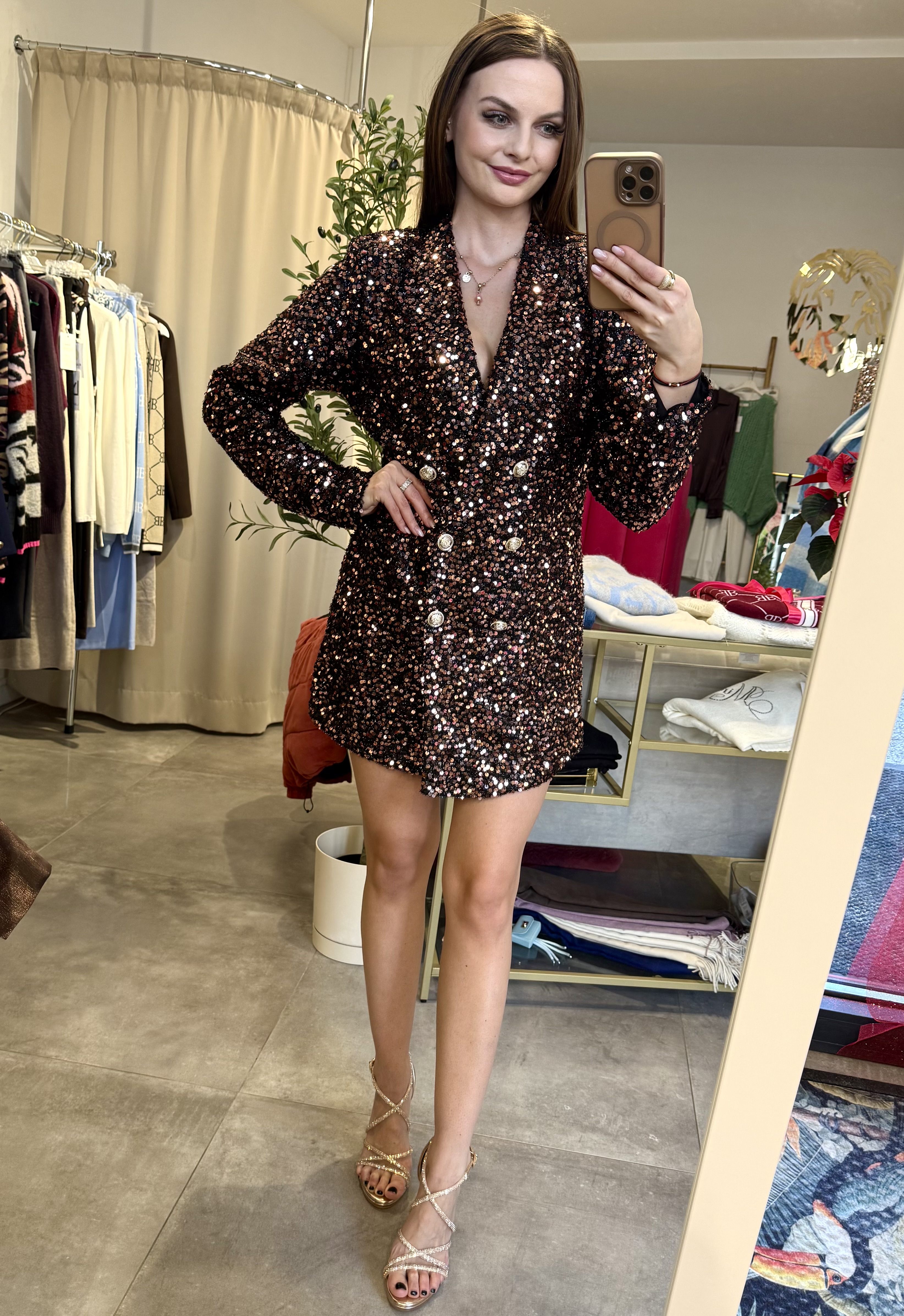 Tunika / mini sukienka Party cekinowa żakietowa / marynarka cekinowa z guzikami, różowe złoto an czarnym tle