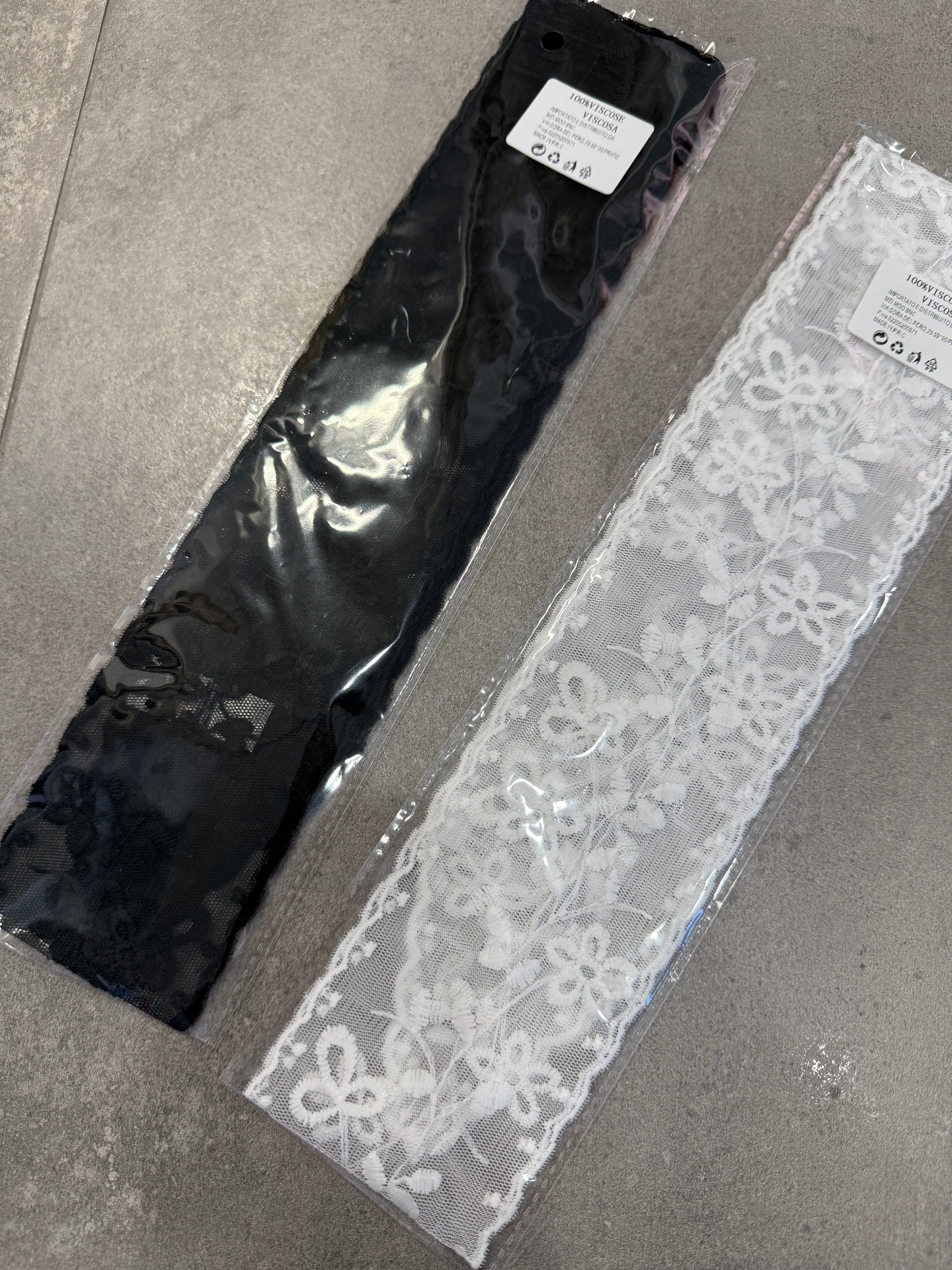 Twilly wstążka / apaszka koronkowa z wiskozy biała i czarna, krawatka