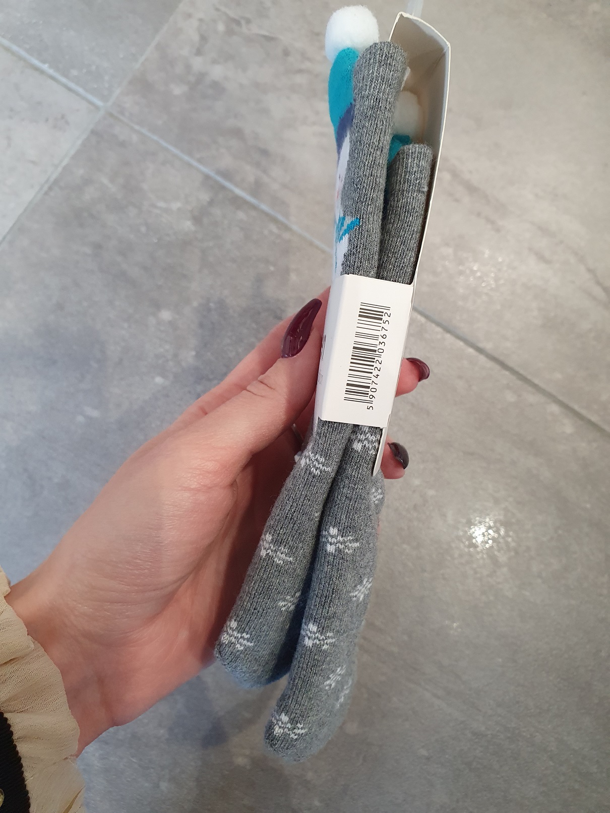 Skarpetki szare z bałwankiem - i pomponem, wystającym u góry skarpetek. Miękki, przyjemne w dotyku.