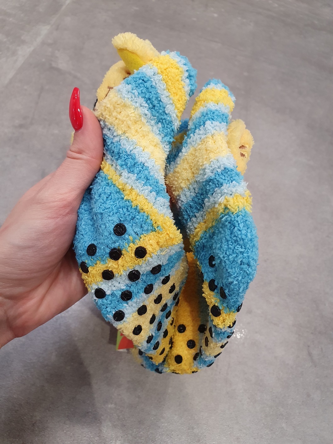 Skarpety żółto - niebieskie piesek - mięciutkie, ciepłe i wygodne, antypoślizgowe.